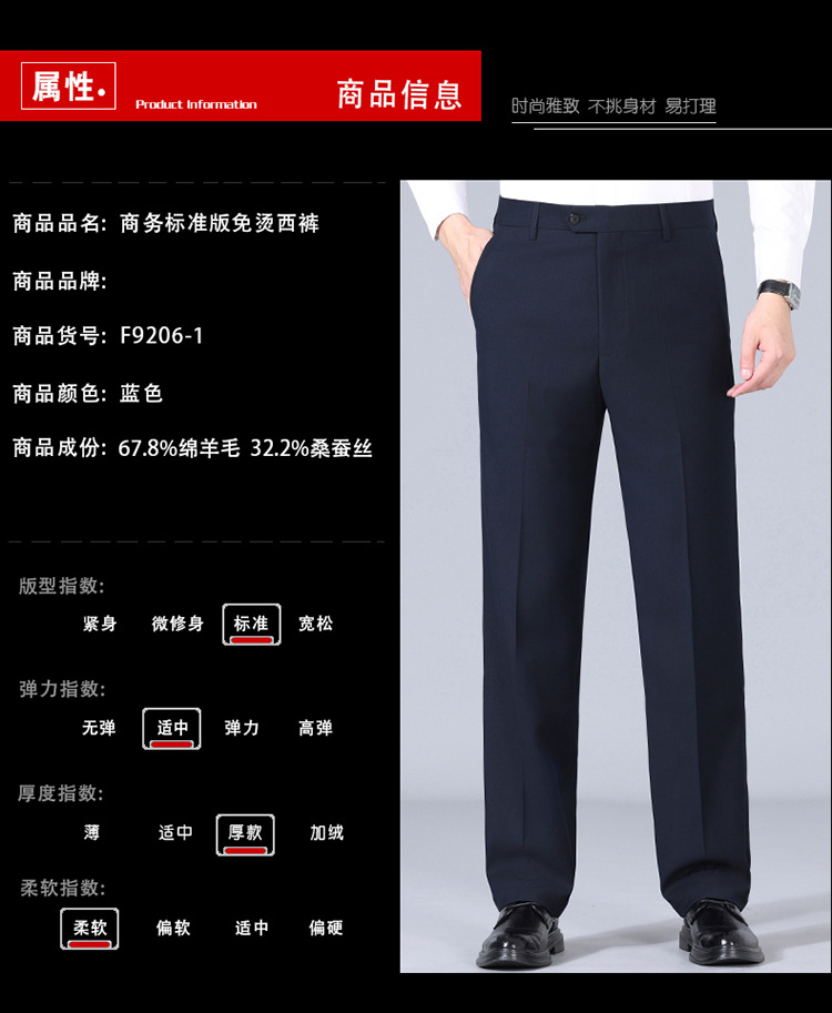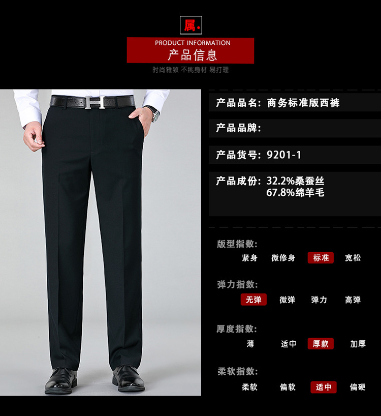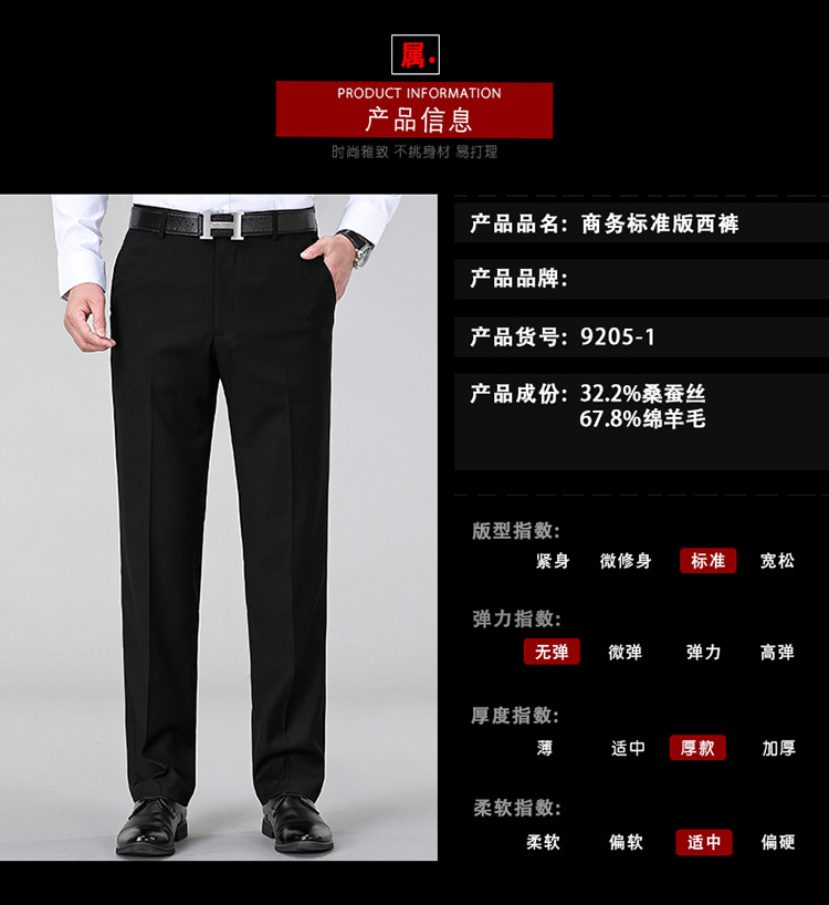 Chiếc quần tây dành cho nam, được dệt từ sợi len mềm mại, phù hợp cho tiết trời mát mẻ. Thiết kế dáng suông mang đến vẻ ngoại hình lịch sự và thoải mái cho người mặc. Sản phẩm có khả năng hạn chế tạo nếp nhăn, giữ phom dáng gần như ngay cả khi không cần ủi. Bạn có thể dễ dàng phối cùng áo sơ mi hoặc áo thun để tạo nên những bộ trang phục dùng trong nhiều dịp khác nhau. | Tên sản phẩm: Quần Nam Hàng Mùa Xuân Thu Đông Trung Niên - Thời Trang Nam | Mã sản phẩm: B5557 - Giá: 1.620.000đ | Mã nhà sản xuất: SHRYCT-G05Hình ảnh sản phẩm