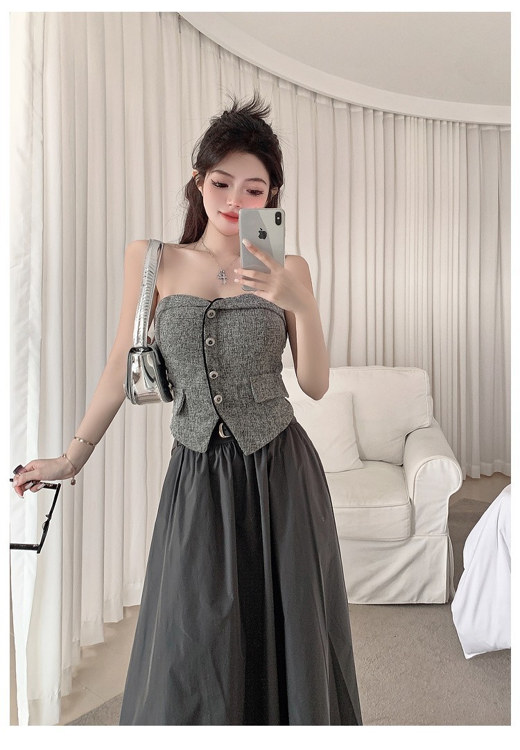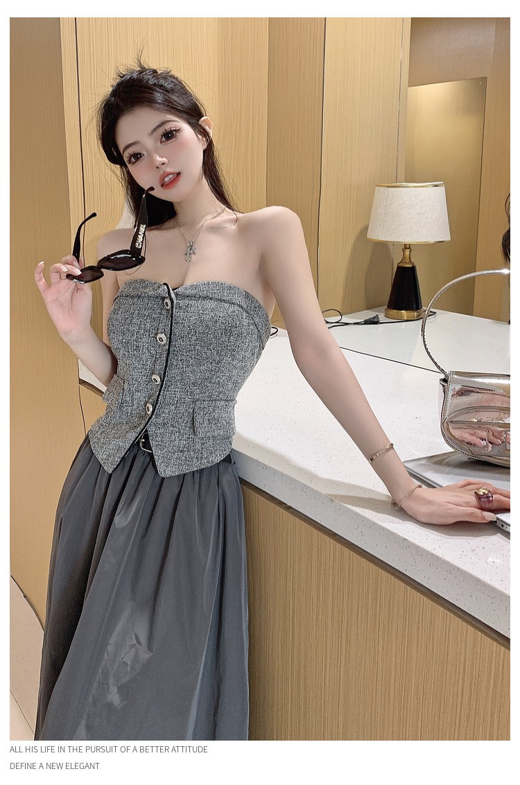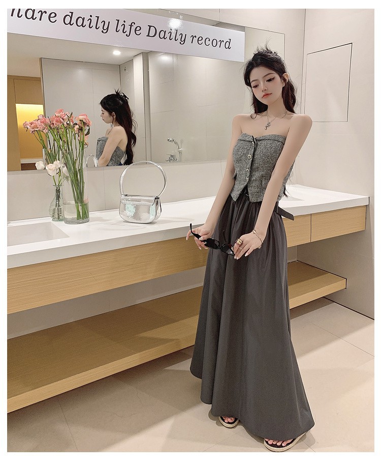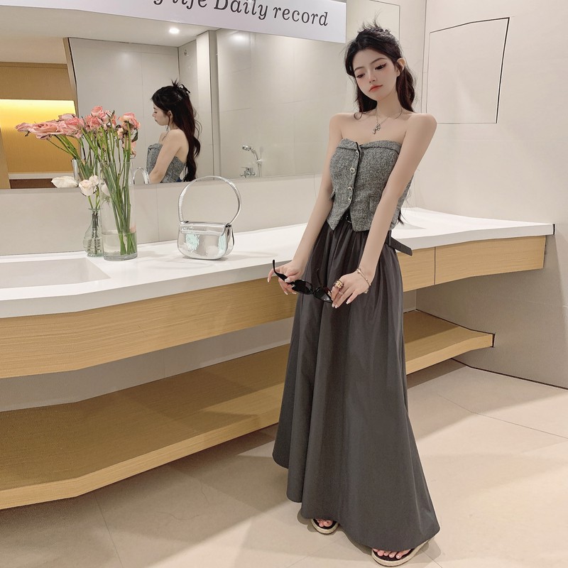 Bộ trang phục hai mảnh này mang đến vẻ đẹp nhẹ nhàng và nữ tính. Áo dáng áo lót ôm sát, tôn lên vòng eo thon gọn. Đi kèm là chiếc váy xòe dáng dài, phần cạp cao giúp tạo dáng thanh thoát. Chất vải mềm mại, thoáng mát, rất phù hợp cho những ngày hè. Bạn có thể mặc bộ này để dạo phố, gặp gỡ bạn bè hoặc tham dự các buổi tiệc nhẹ. Dễ dàng phối cùng giày sandal hoặc giày búp bê để hoàn thiện set đồ. | Tên sản phẩm: Áo Sơ Mi Nữ Cả Bộ 2 Món Hàng Mùa Hè - Thời Trang Nữ | Mã sản phẩm: B5596 - Giá: 540.000đ | Mã nhà sản xuất: JUOUTO-G01Hình ảnh sản phẩm