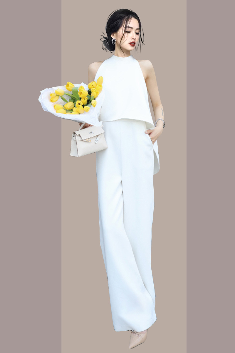 Bộ trang phục liền thân này có phần áo không tay, cổ dáng vòng cố ôm trọn vòng cổ. Thiết kế toàn thân sử dụng một màu thuần túy, tôn lên vẻ đẹp tinh tế. Phần quần rộng rãi, tạo cảm giác thoải mái và phóng khoáng khi mặc. Kiểu dáng tổng thể mang phong cách hiện đại, nhẹ nhàng. Cách phối đồ đơn giản, có thể dễ dàng kết hợp cùng giày sandal hoặc giày thể thao để tạo nên những set đồ khác nhau trong ngày. | Tên sản phẩm: Áo Sơ Mi Nữ - Thời Trang Nữ | Mã sản phẩm: B5608 - Giá: 980.000đ | Mã nhà sản xuất: JUOUTO-G03Hình ảnh sản phẩm