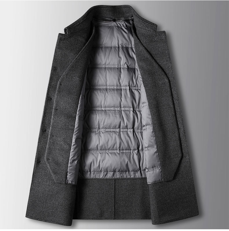 Áo khoác nam dáng dài cho tiết trời lạnh, có lớp lót lông vũ bên trong có thể tháo rời một cách linh hoạt. Thiết kế cổ bẻ, phom dáng lịch sự phù hợp cho công sở. Chất liệu dệt hai mặt ấm áp, giúp giữ nhiệt tốt mà vẫn nhẹ nhàng, thoải mái. Có thể mặc nguyên chiếc khi trời lạnh giá hoặc chỉ dùng lớp ngoài như áo khoác mỏng khi thời tiết dịu mát. | Tên sản phẩm: Áo Gió Nam Kín Cổ Hàng Mùa Xuân Thu Đông Phong Cách Trẻ Trung - Thời Trang Nam | Mã sản phẩm: B5625 - Giá: 2.960.000đ | Mã nhà sản xuất: VIDAG-G06Hình ảnh sản phẩm