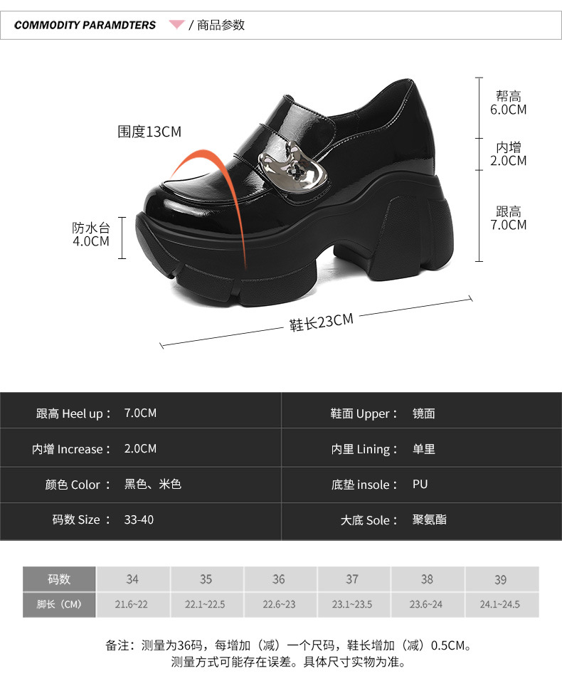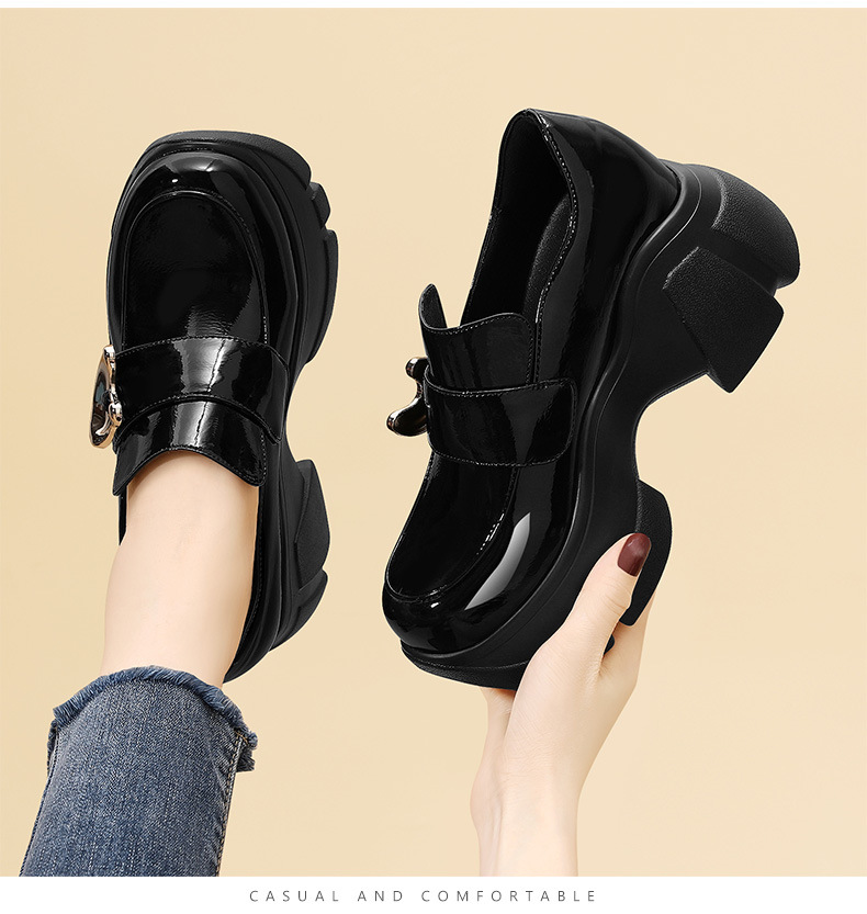 Giày da nữ phong cách cổ điển, mang đến vẻ ngoại hình thanh lịch và hiện đại. Sản phẩm có phần đế dày được thiết kế tinh tế bên trong, giúp tăng chiều cao một cách tự nhiên. Đế giày làm từ chất liệu mềm mại, ôm sát chân, tạo cảm giác dễ chịu khi di chuyển cả ngày. Kiểu dáng dễ kết hợp với nhiều loại trang phục như quần jeans, váy hay quần tây. Bạn chỉ cần xỏ chân vào và kéo khóa nhẹ nhàng là đã có ngay một set đồ hoàn chỉnh. | Tên sản phẩm: Giày Da Nữ Cao 8cm Đế Mềm Tăng Chiều Cao Đế Cao Hàng Mùa Xuân Thu Đông - Giày Dép Nữ | Mã sản phẩm: B5648 - Giá: 1.140.000đ | Mã nhà sản xuất: PUDT-G04Hình ảnh sản phẩm