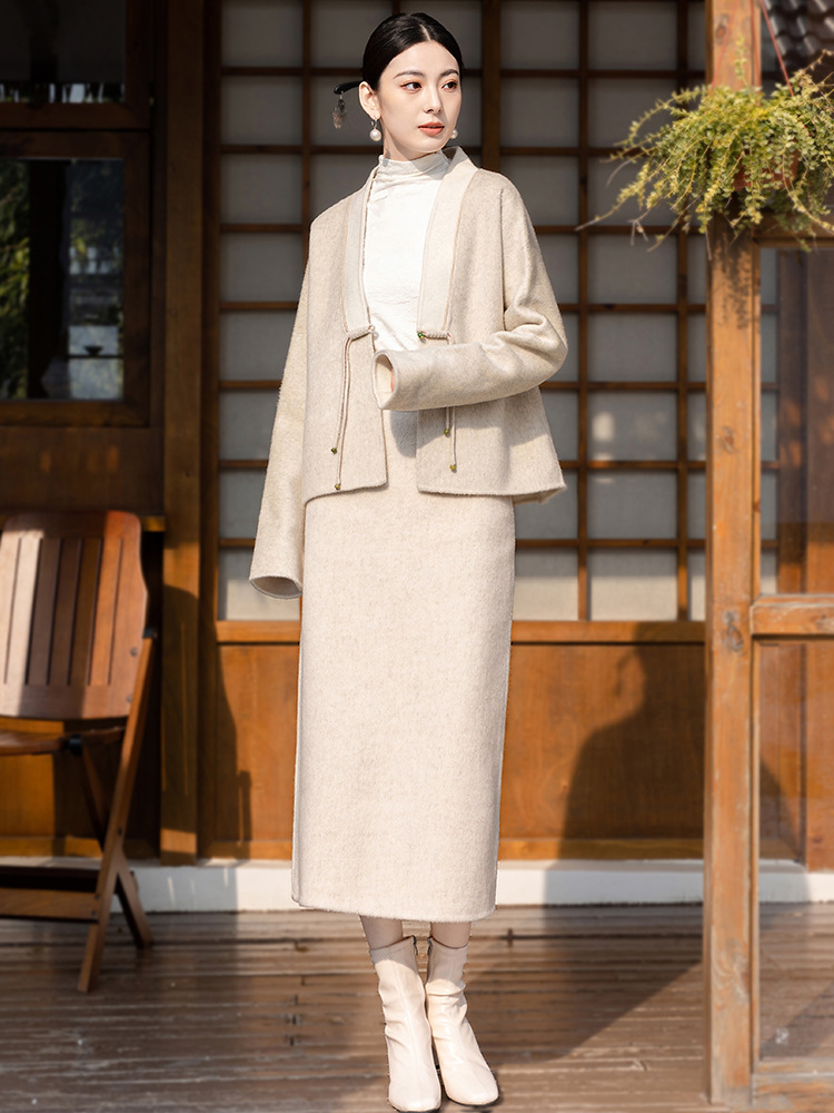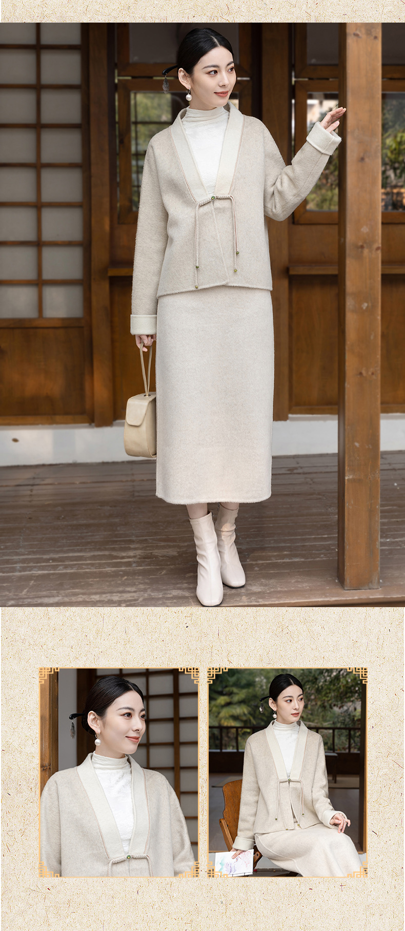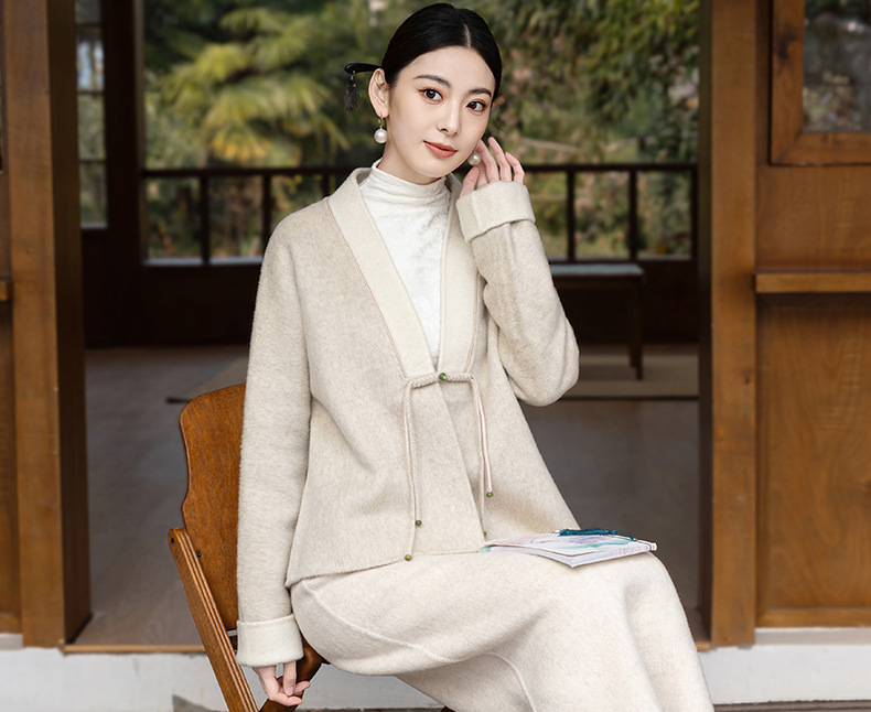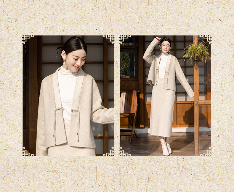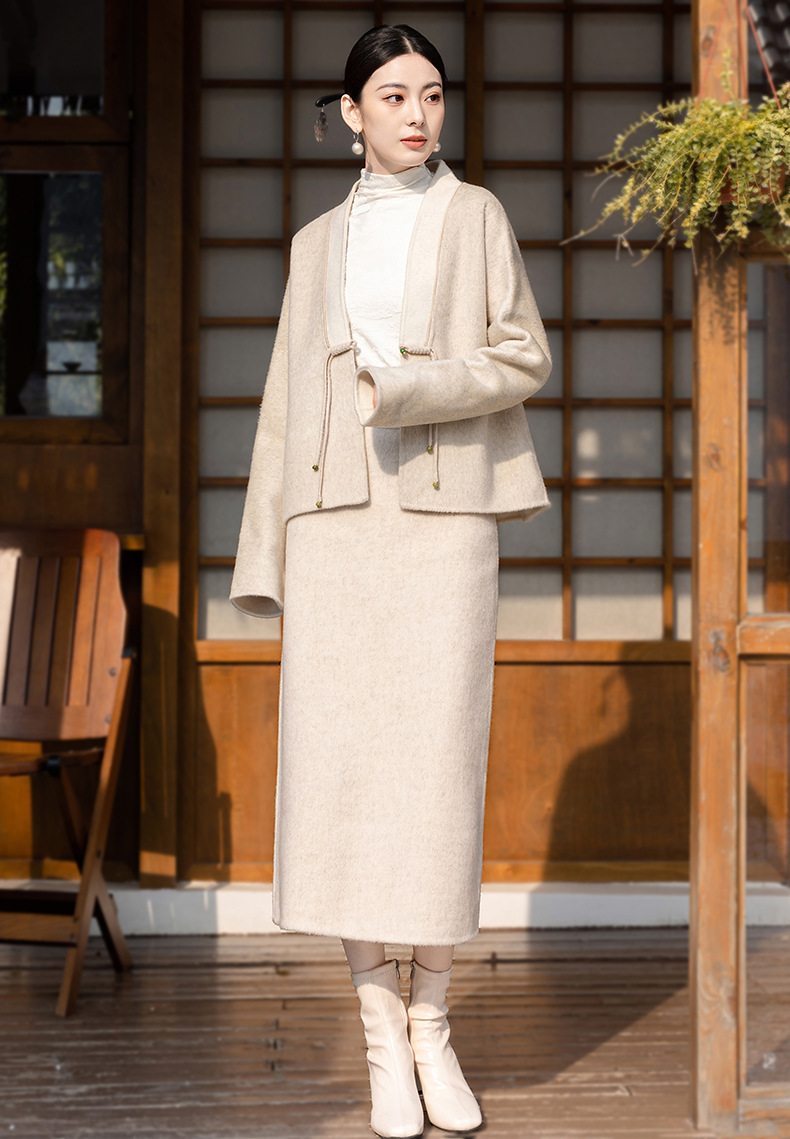 Bộ trang phục hai mảnh này thích hợp mặc vào mùa thu và mùa xuân. Thiết kế mang phong cách hoài cổ, gồm áo khoác và đầm dài phối cùng. Chất liệu chính là len dệt tự nhiên, ấm áp và thoải mái. Bạn có thể mặc nguyên bộ để tạo vẻ chỉn chu, hoặc phối với các trang phục khác. Sản phẩm dễ dàng bảo quản và giữ dáng đẹp qua nhiều lần sử dụng. | Tên sản phẩm: Áo Khoác Nữ Cả Bộ 2 Món Hàng Mùa Xuân Thu Đông Phục Cổ Cổ Điển - Thời Trang Nữ | Mã sản phẩm: B5650 - Giá: 2.090.000đ | Mã nhà sản xuất: HADG-G05Hình ảnh sản phẩm