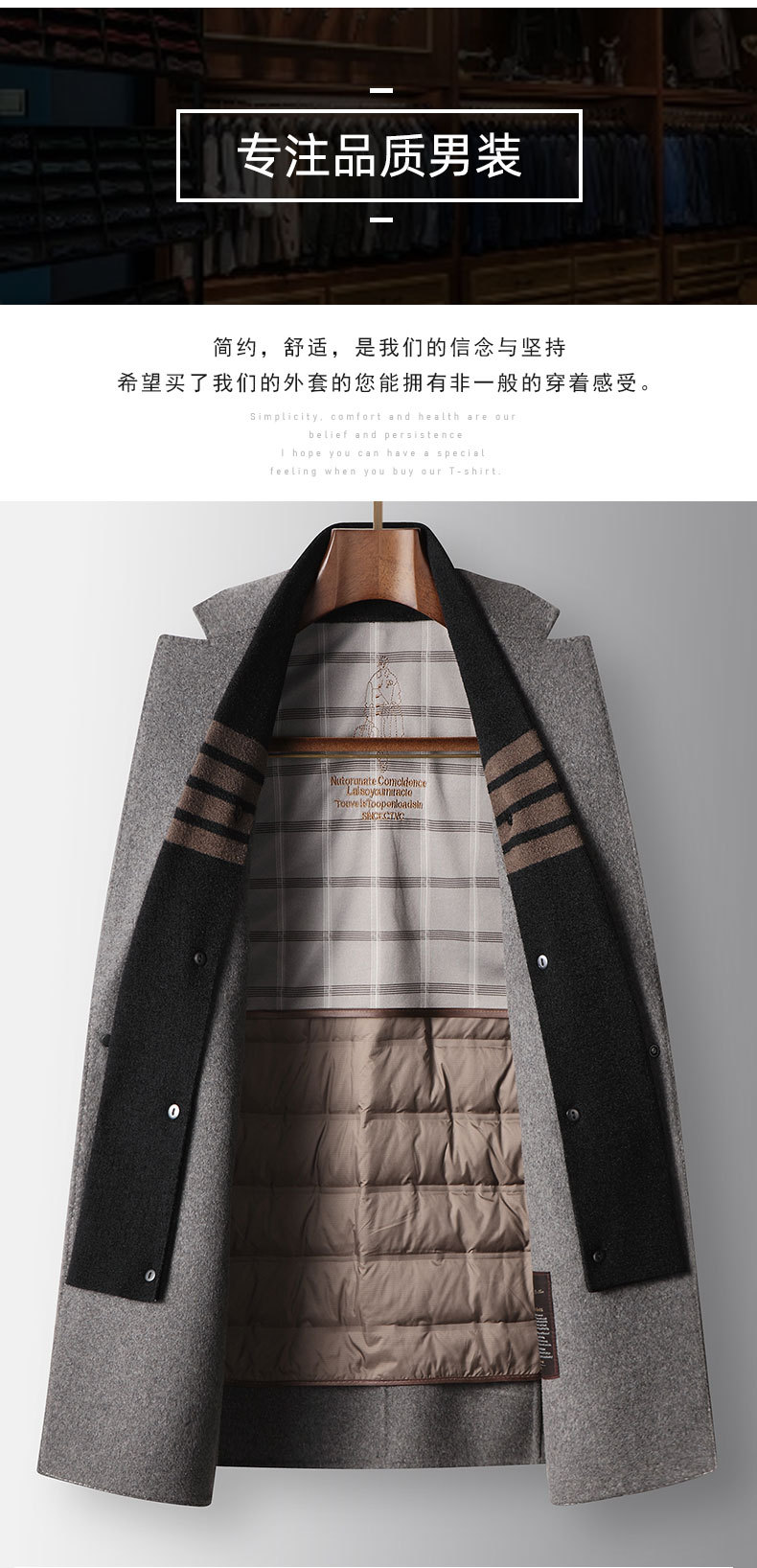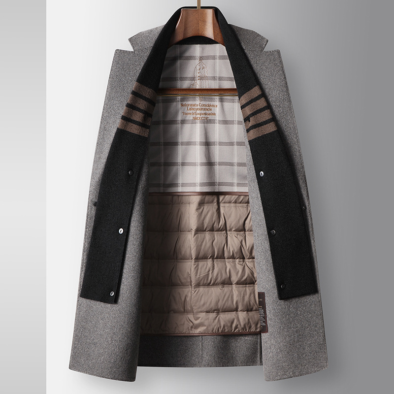 Áo khoác dành cho nam, thiết kế dáng dài phù hợp cho mùa thu đông. Sản phẩm có cổ áo kiểu khăn choàng ấm áp và có thể tháo rời. Bên trong là lớp áo lót được lấp đầy bằng lông vũ của ngỗng, giữ nhiệt tốt. Lớp ngoài làm từ chất liệu len dệt, phù hợp cho mặc khi làm việc hoặc dùng hằng ngày. Có thể mặc nguyên bộ hoặc tách rời lớp trong và ngoài để phù hợp với thời tiết và phong cách cá nhân. | Tên sản phẩm: Áo Khoác Nam Hàng Mùa Xuân Thu Đông Phong Cách Trẻ Trung - Thời Trang Nam | Mã sản phẩm: B5658 - Giá: 3.050.000đ | Mã nhà sản xuất: VIDAG-G06Hình ảnh sản phẩm