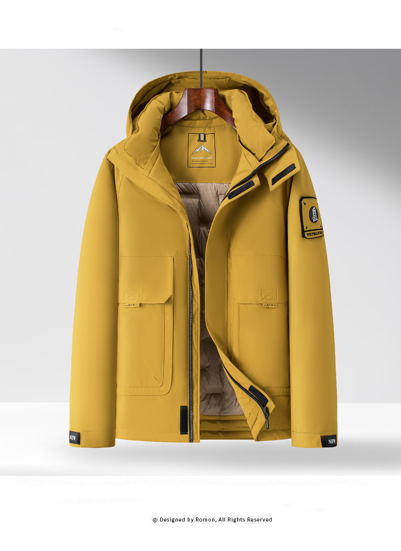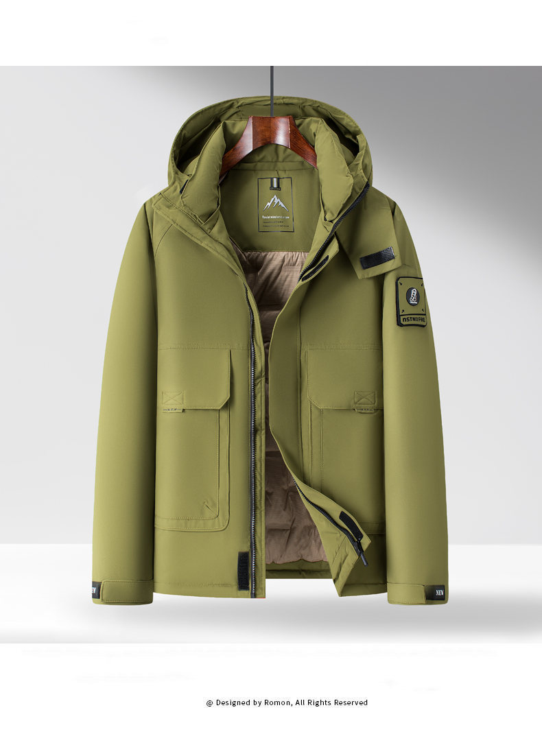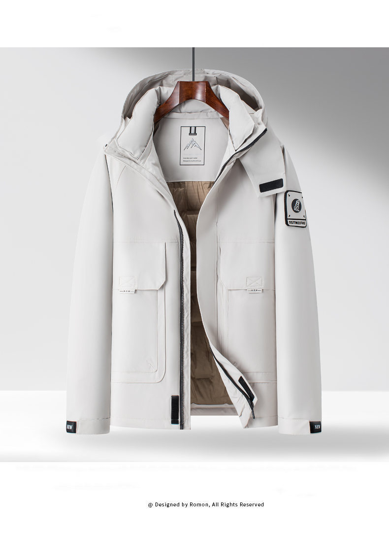 Áo khoác nam có mũ trùm có thể tháo rời, dùng để mặc vào mùa thu đông. Sản phẩm được lót bằng lớp lông vũ mềm mại, giúp giữ ấm tốt cho cơ thể. Kiểu dáng phù hợp cho nhiều hoàn cảnh như khi đi làm, dạo phố hay tham gia các hoạt động ngoài trời. Chỉ cần mặc như các loại áo khoác thông thường, tiện lợi với mũ trùm đầu che gió khi cần. | Tên sản phẩm: Áo Khoác Nam Mũ Liền Hàng Mùa Xuân Thu Đông Phong Cách Trẻ Trung - Thời Trang Nam | Mã sản phẩm: B5670 - Giá: 1.590.000đ | Mã nhà sản xuất: VIDAG-G04Hình ảnh sản phẩm