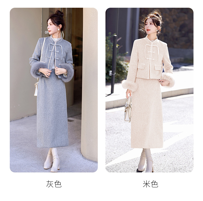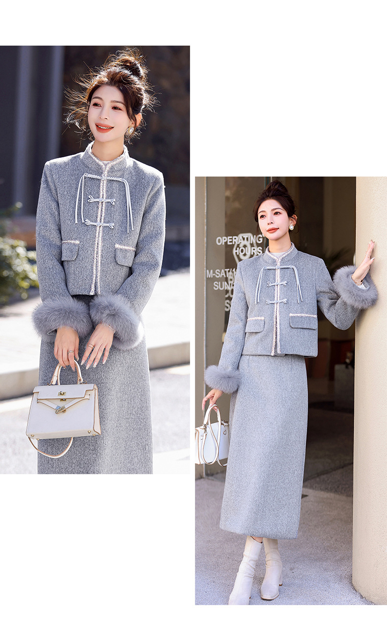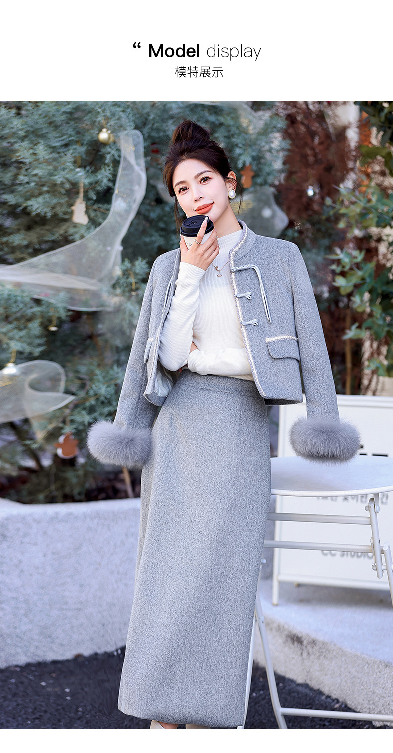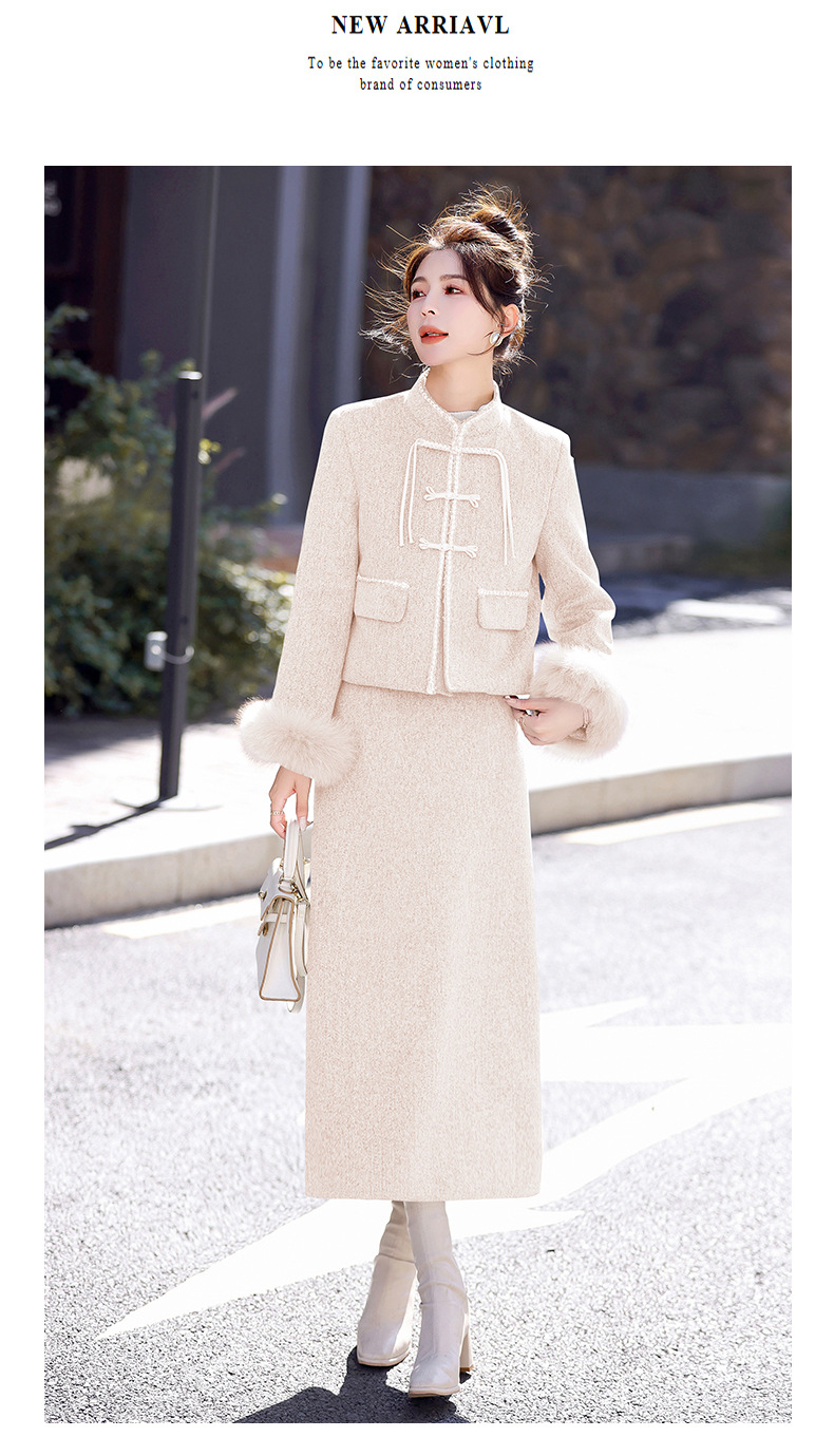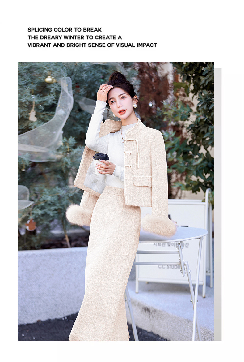 Bộ trang phục mùa đông này gồm áo khoác và chân váy, tạo phong cách nhẹ nhàng và ấm áp. Áo được điểm xuyến lớp lông mềm mại quanh cổ tay, giữ nhiệt tốt. Chân váy làm từ chất liệu dệt kim dày dặn, phối cùng lớp lông tơ mỏng bên trong giúp giữ ấm mà không gây bí. Có thể mặc nguyên bộ hoặc phối với các trang phục khác. Phù hợp cho những ngày tiết trời se lạnh. | Tên sản phẩm: Áo Khoác Nữ Cả Bộ 2 Món Hàng Mùa Xuân Thu Đông - Thời Trang Nữ | Mã sản phẩm: B5699 - Giá: 3.630.000đ | Mã nhà sản xuất: HADG-G06Hình ảnh sản phẩm