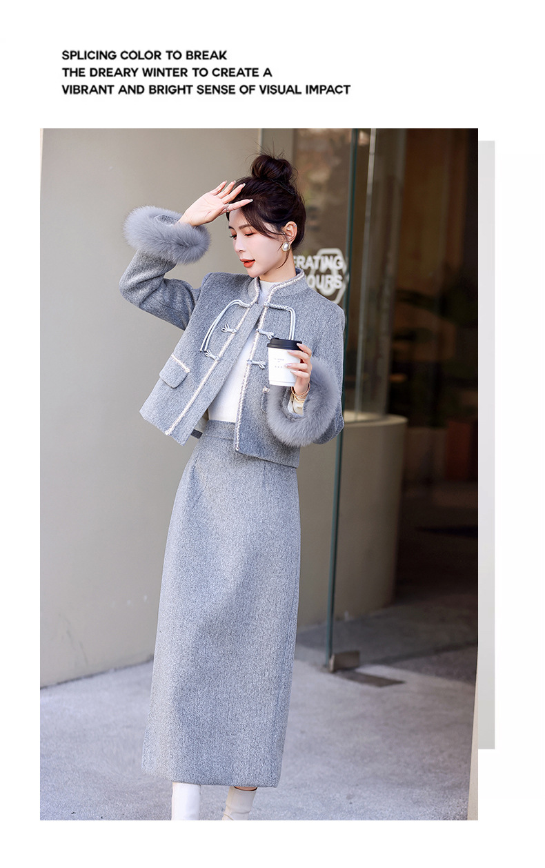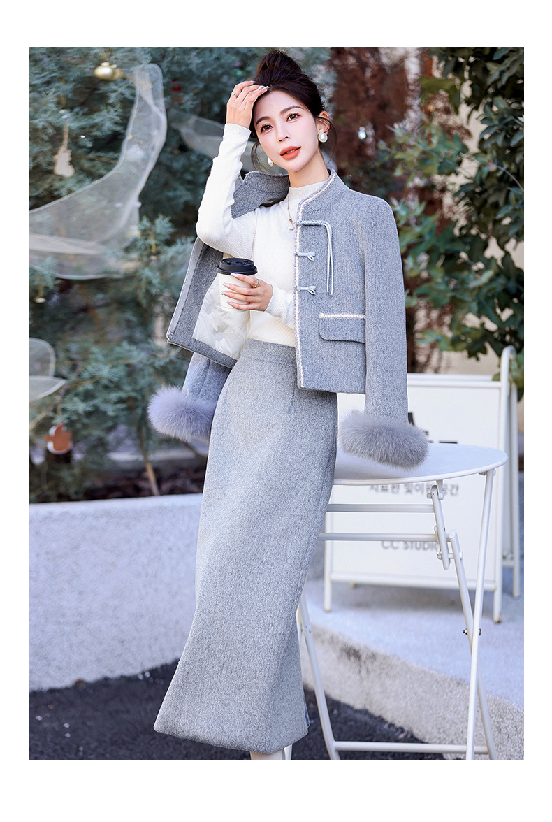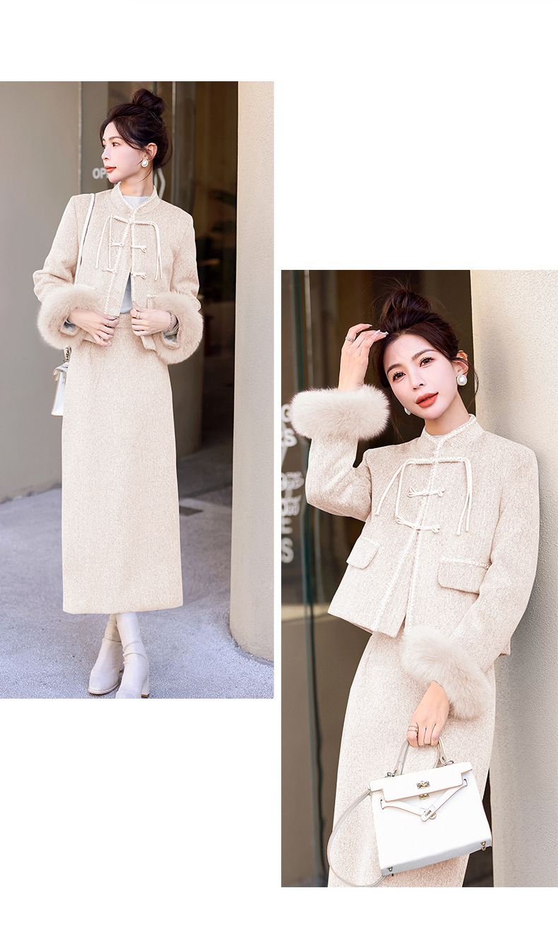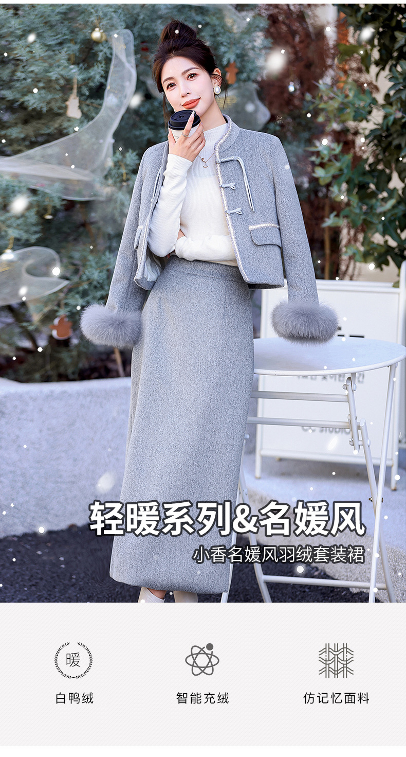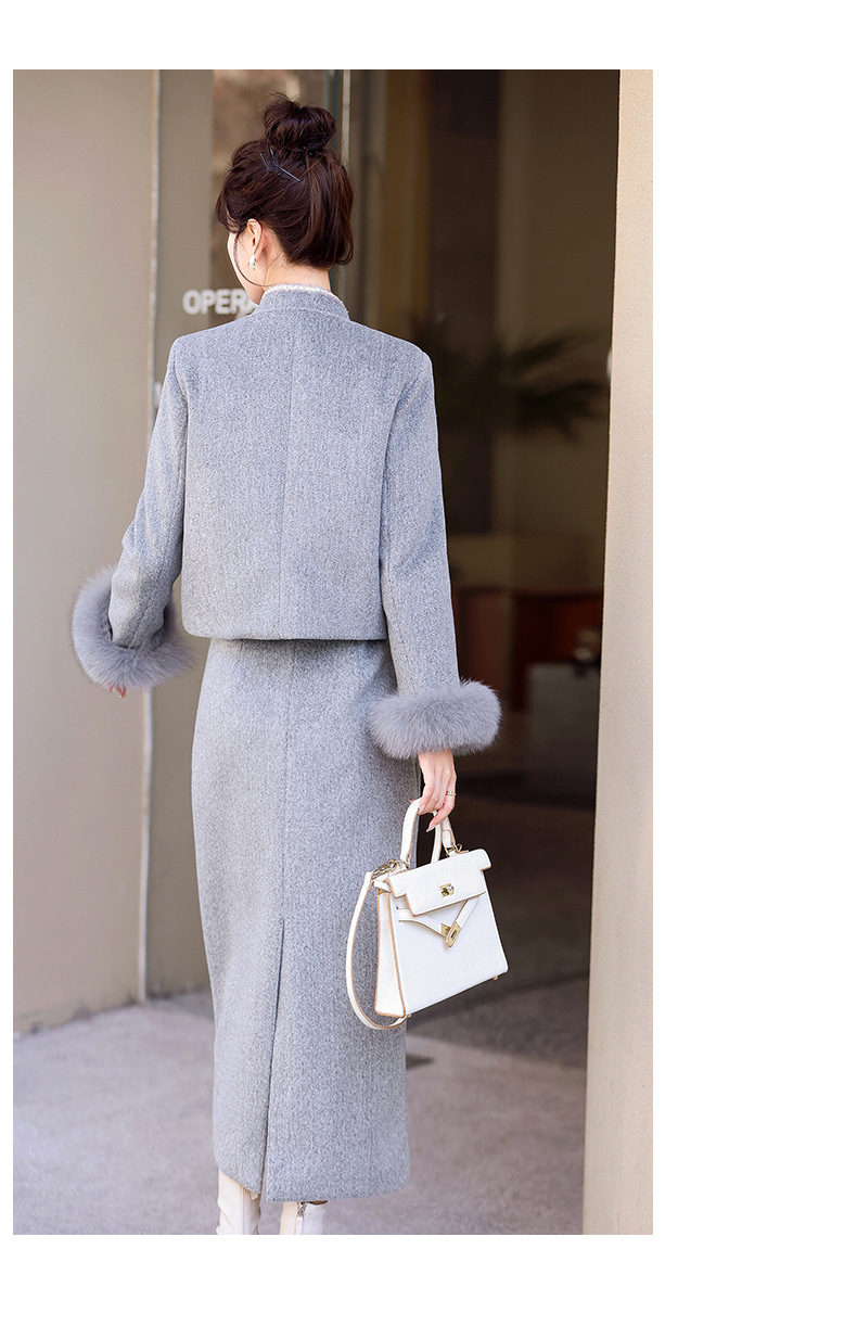 Bộ trang phục mùa đông này gồm áo khoác và chân váy, tạo phong cách nhẹ nhàng và ấm áp. Áo được điểm xuyến lớp lông mềm mại quanh cổ tay, giữ nhiệt tốt. Chân váy làm từ chất liệu dệt kim dày dặn, phối cùng lớp lông tơ mỏng bên trong giúp giữ ấm mà không gây bí. Có thể mặc nguyên bộ hoặc phối với các trang phục khác. Phù hợp cho những ngày tiết trời se lạnh. | Tên sản phẩm: Áo Khoác Nữ Cả Bộ 2 Món Hàng Mùa Xuân Thu Đông - Thời Trang Nữ | Mã sản phẩm: B5699 - Giá: 3.630.000đ | Mã nhà sản xuất: HADG-G06Hình ảnh sản phẩm