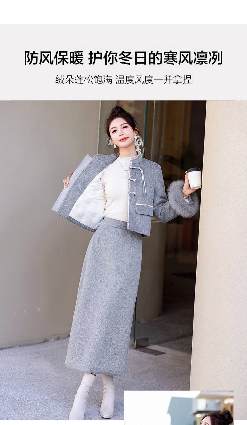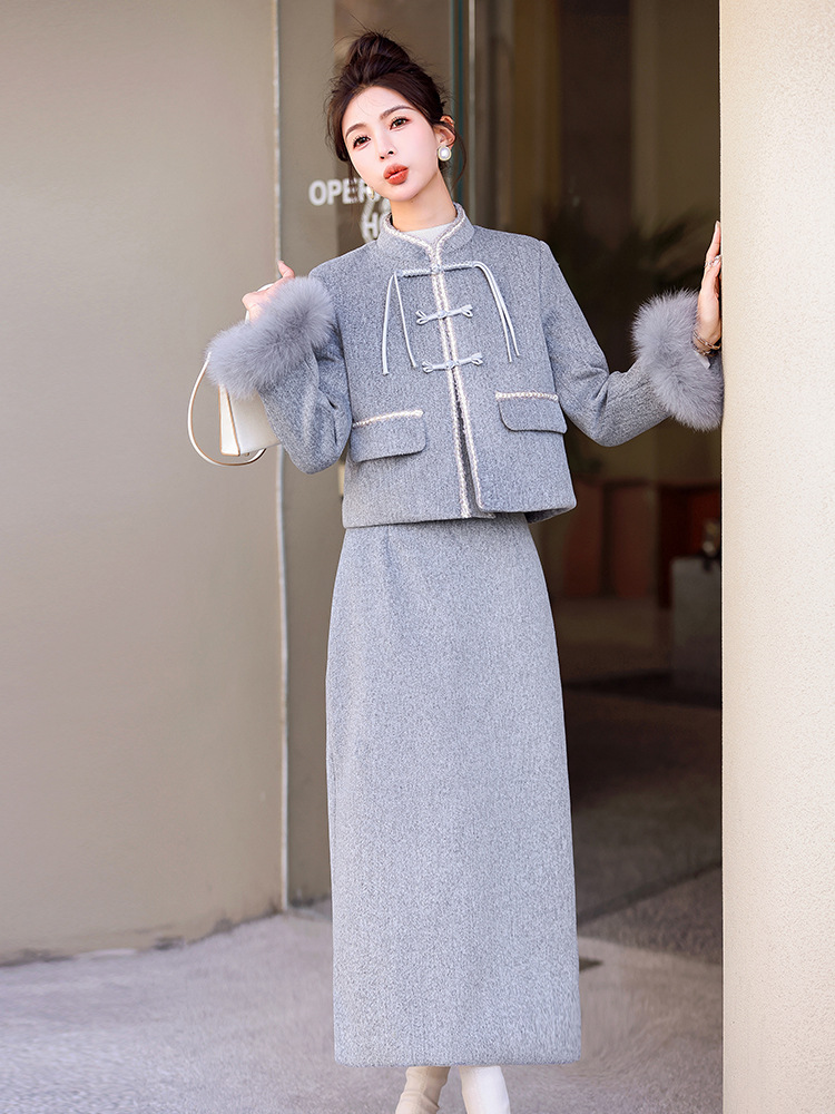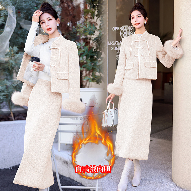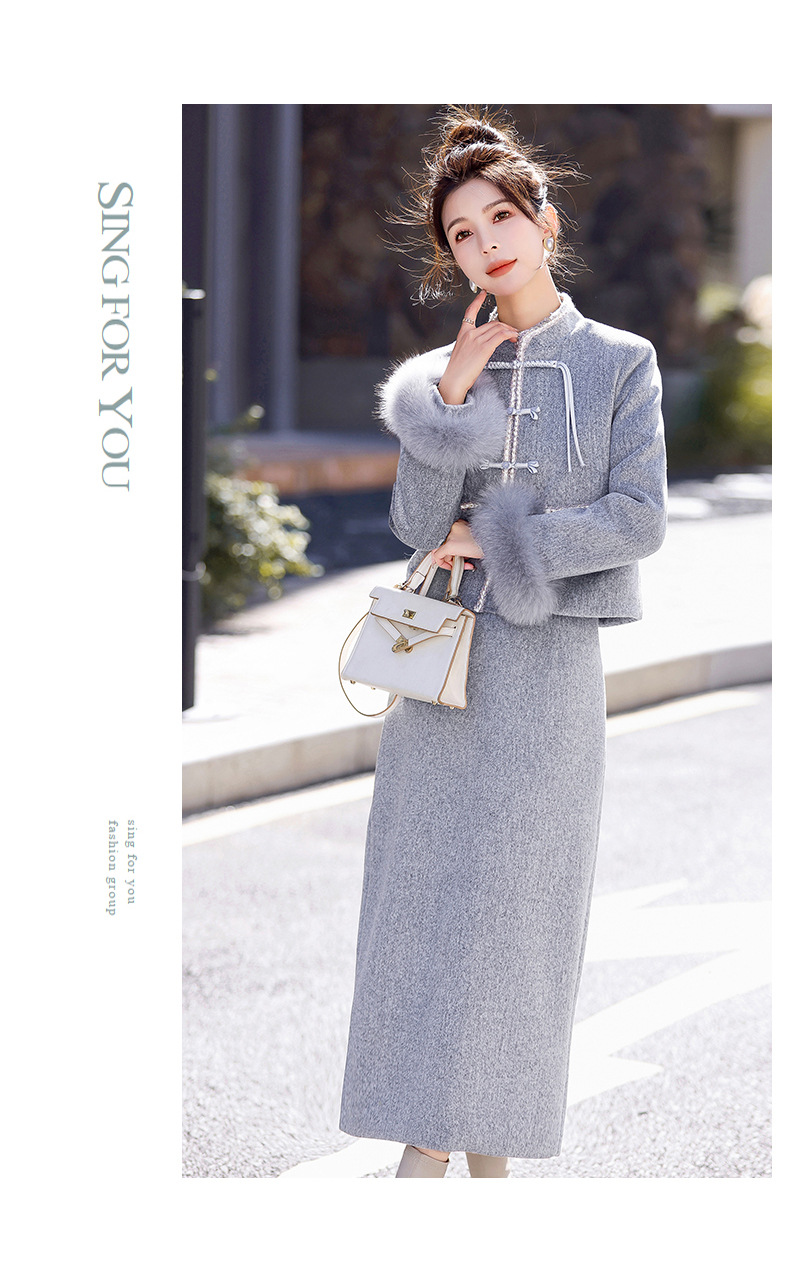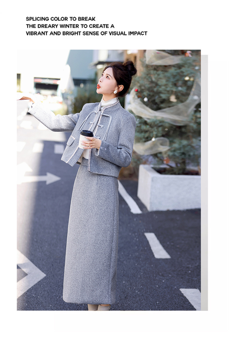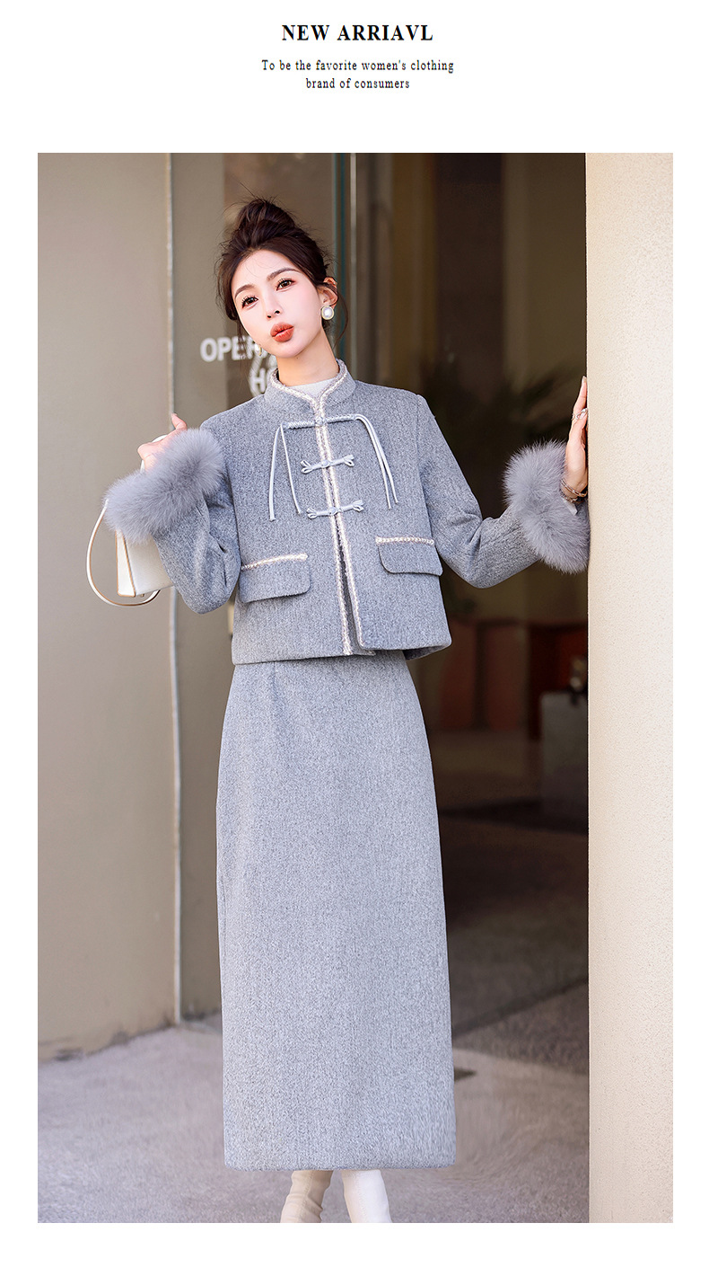 Bộ trang phục mùa đông này gồm áo khoác và chân váy, tạo phong cách nhẹ nhàng và ấm áp. Áo được điểm xuyến lớp lông mềm mại quanh cổ tay, giữ nhiệt tốt. Chân váy làm từ chất liệu dệt kim dày dặn, phối cùng lớp lông tơ mỏng bên trong giúp giữ ấm mà không gây bí. Có thể mặc nguyên bộ hoặc phối với các trang phục khác. Phù hợp cho những ngày tiết trời se lạnh. | Tên sản phẩm: Áo Khoác Nữ Cả Bộ 2 Món Hàng Mùa Xuân Thu Đông - Thời Trang Nữ | Mã sản phẩm: B5699 - Giá: 3.630.000đ | Mã nhà sản xuất: HADG-G06Hình ảnh sản phẩm
