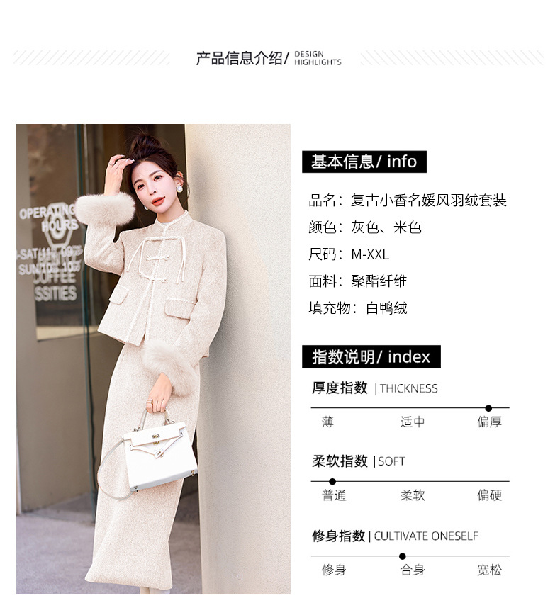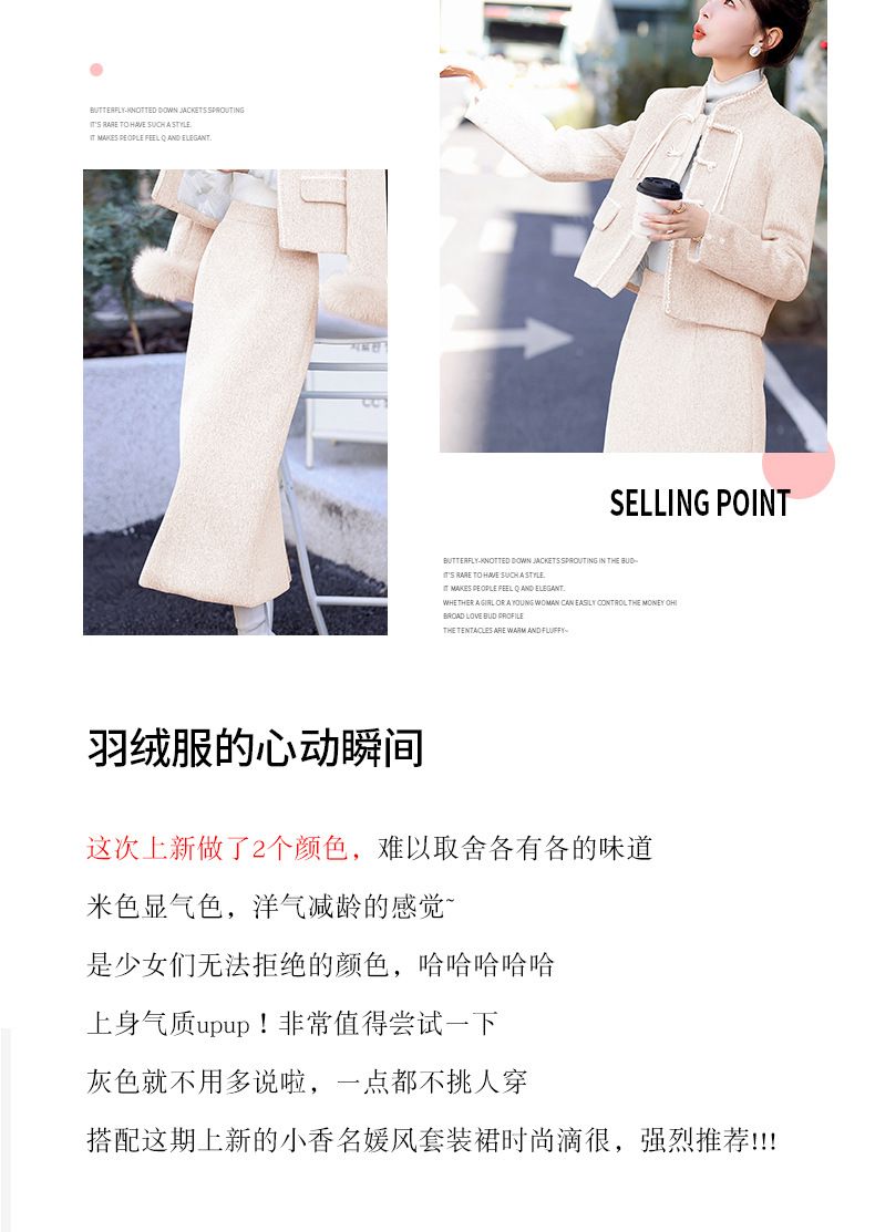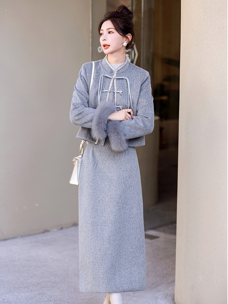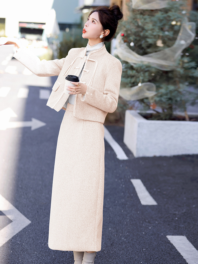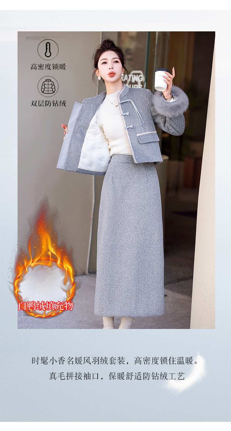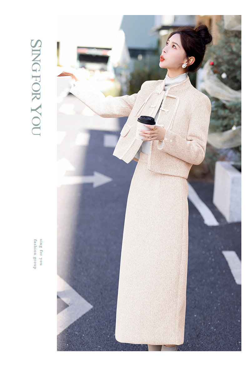 Bộ trang phục mùa đông này gồm áo khoác và chân váy, tạo phong cách nhẹ nhàng và ấm áp. Áo được điểm xuyến lớp lông mềm mại quanh cổ tay, giữ nhiệt tốt. Chân váy làm từ chất liệu dệt kim dày dặn, phối cùng lớp lông tơ mỏng bên trong giúp giữ ấm mà không gây bí. Có thể mặc nguyên bộ hoặc phối với các trang phục khác. Phù hợp cho những ngày tiết trời se lạnh. | Tên sản phẩm: Áo Khoác Nữ Cả Bộ 2 Món Hàng Mùa Xuân Thu Đông - Thời Trang Nữ | Mã sản phẩm: B5699 - Giá: 3.630.000đ | Mã nhà sản xuất: HADG-G06Hình ảnh sản phẩm