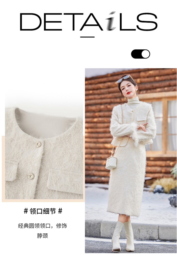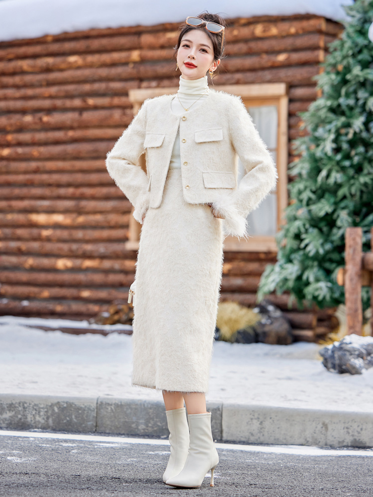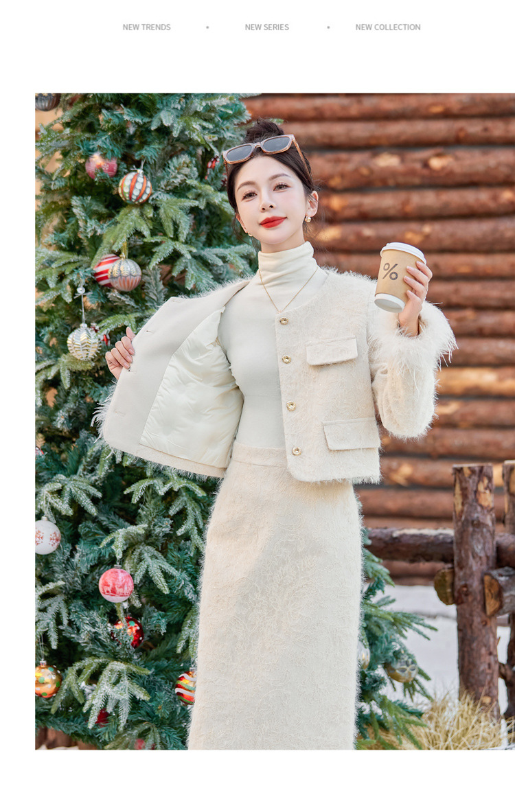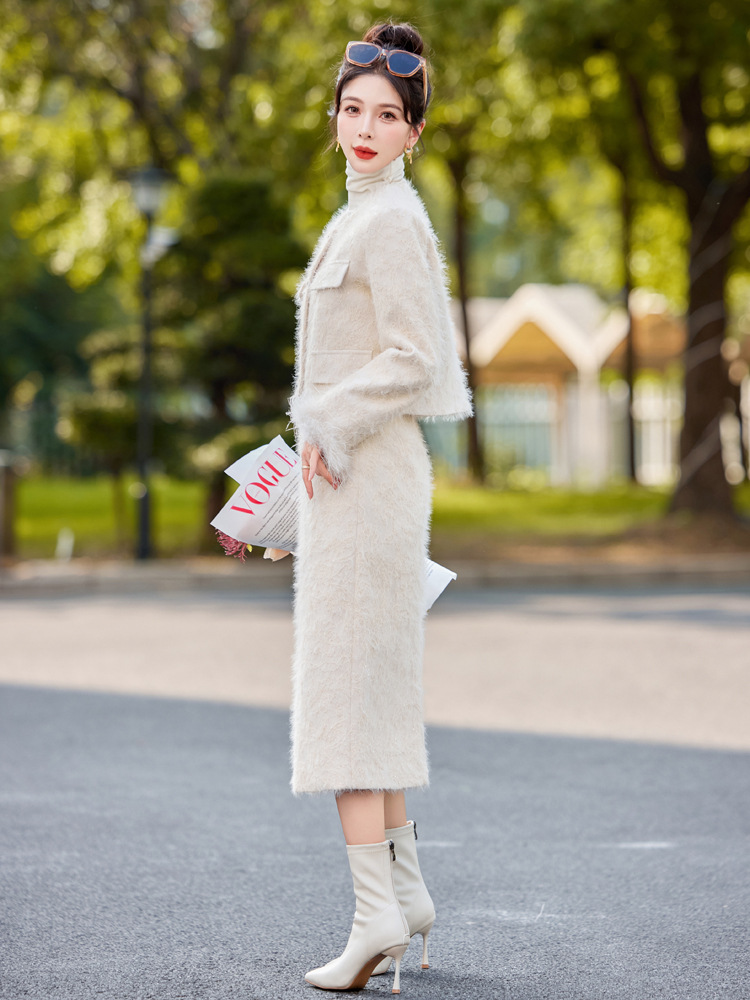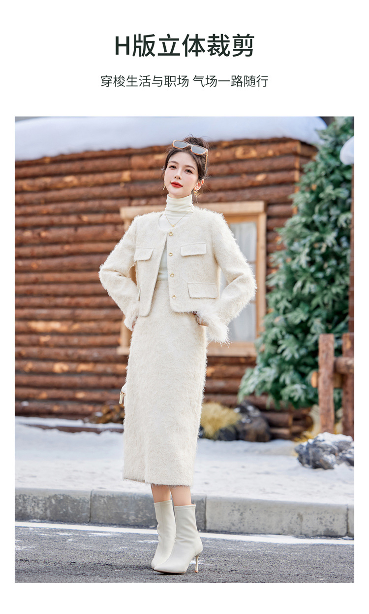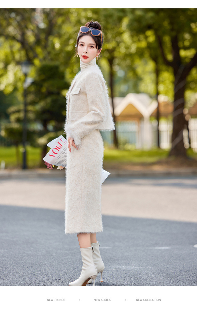 Bộ trang phục hai mảnh này gồm áo khoác dạng dáng cổ điển và chân váy xếp ly eo cao. Áo khoác được lót lớp bông mềm mại, ấm áp, kết hợp điểm nhấn là lớp phụ kiện lông vũ mềm mại ở cổ áo. Chân váy dáng ngắn giúp tôn dáng người mặc. Mặc áo khoác cùng chân váy có sẵn để có bộ trang phục đồng bộ, hoặc kết hợp riêng với các trang phục khác nhau. | Tên sản phẩm: Áo Khoác Nữ Cả Bộ 2 Món Hàng Mùa Xuân Thu Đông - Thời Trang Nữ | Mã sản phẩm: B5729 - Giá: 3.400.000đ | Mã nhà sản xuất: HADG-G06Hình ảnh sản phẩm