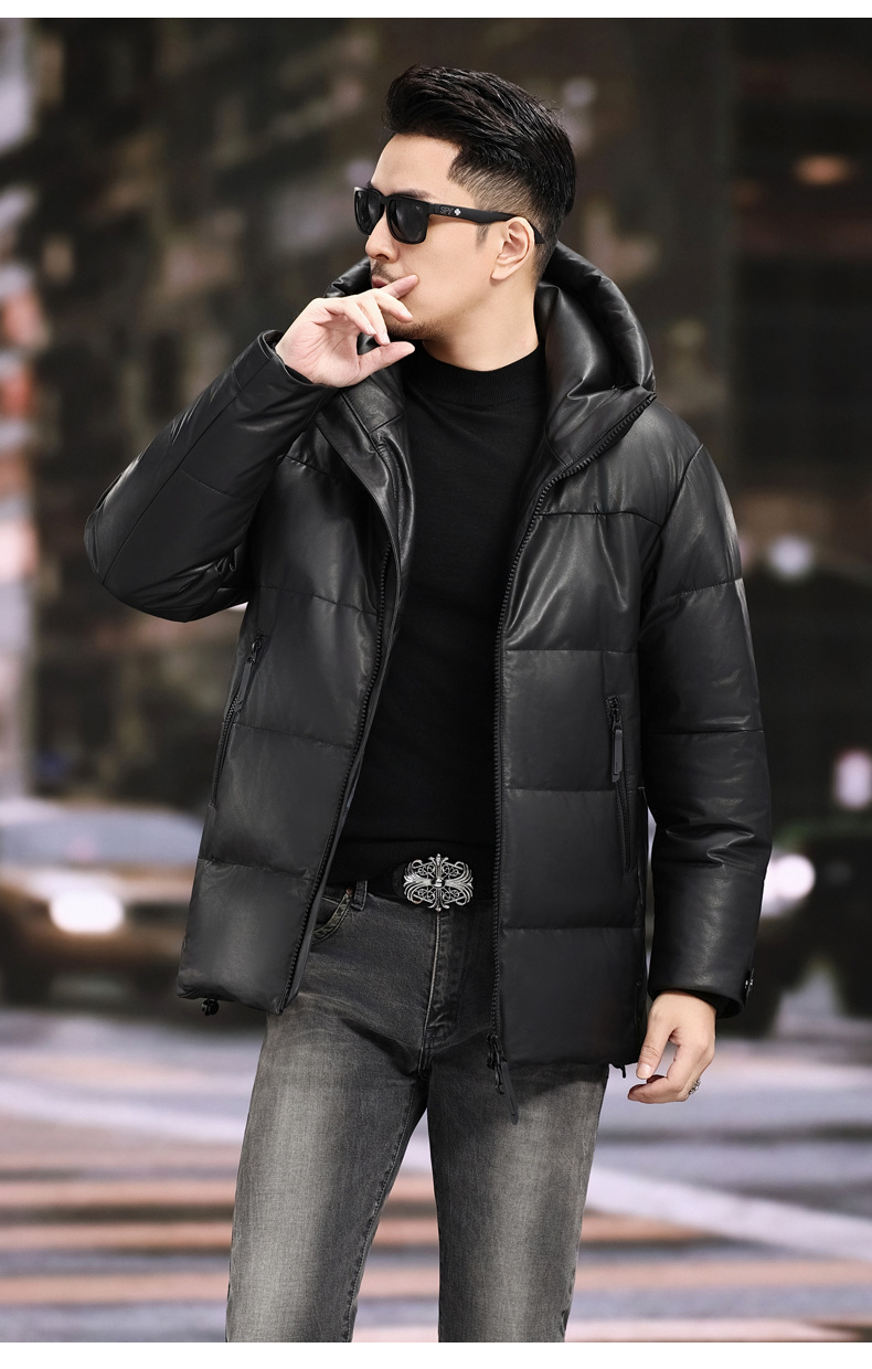 Áo khoác dành cho nam, thiết kế dáng dài vừa phải với mũ trùm đi kèm. Sản phẩm được làm từ da thuộc tự nhiên mềm mại, bên trong có lớp lông vũ giúp giữ ấm hiệu quả cho những ngày trời lạnh. Kiểu dáng kết hợp giữa chất liệu da và lông vũ mang đến vẻ ngoài khỏe khoắn. Mặc kèm áo thun hoặc áo len bên trong để tạo sự thoải mái và ấm áp. | Tên sản phẩm: Áo Da Nam Chất Liệu Da Bò Mũ Liền - Thời Trang Nam | Mã sản phẩm: B5749 - Giá: 8.140.000đ | Mã nhà sản xuất: HADG-G06Hình ảnh sản phẩm