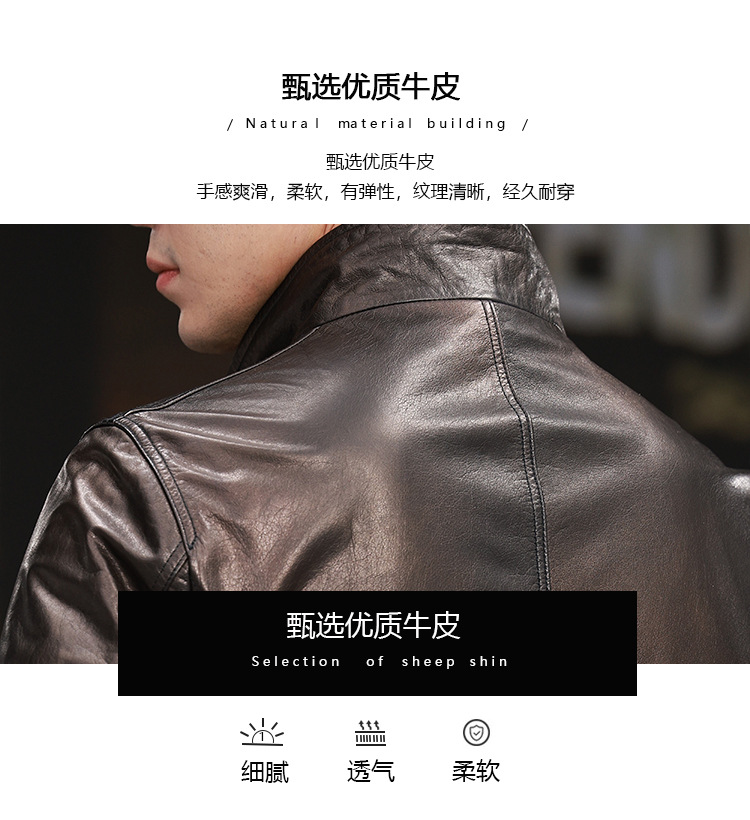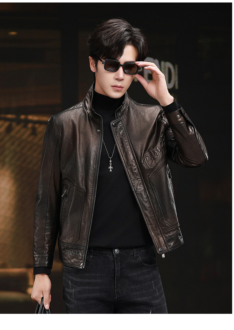 Áo khoác da nam này được làm từ lớp da bò mềm mại, có bề mặt phủ lớp dầu sáp tạo vẻ cổ điển. Áo có hai màu dễ phối đồ, kiểu dáng cổ đứng phối cổ bẻ mang phong cách trẻ trung. Chất da dày dặn nhưng vẫn ôm vừa vặn cơ thể, phù hợp mặc trong tiết trời se lạnh. Khi dùng, tránh để nơi ẩm ướt và lau nhẹ bằng vải mềm nếu bị bám bụi. | Tên sản phẩm: Áo Da Nam Chất Liệu Da Bò Kín Cổ Phong Cách Trẻ Trung - Thời Trang Nam | Mã sản phẩm: B5751 - Giá: 4.440.000đ | Mã nhà sản xuất: HADG-G06Hình ảnh sản phẩm