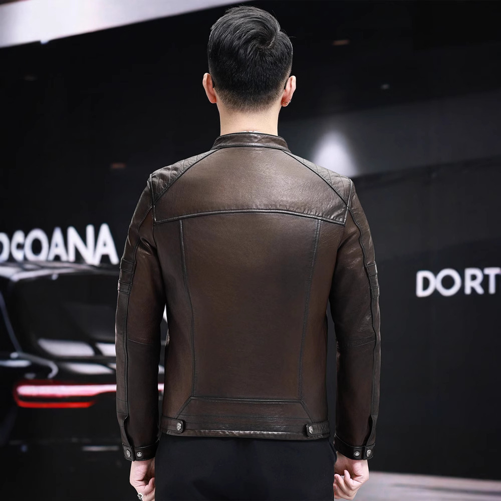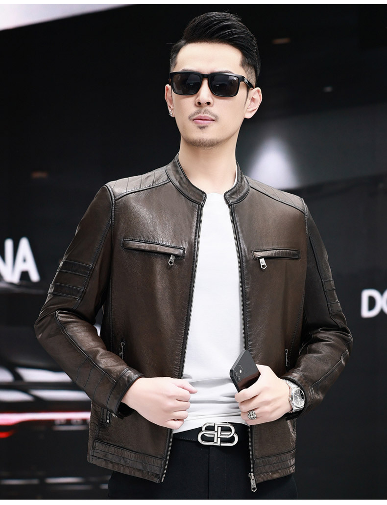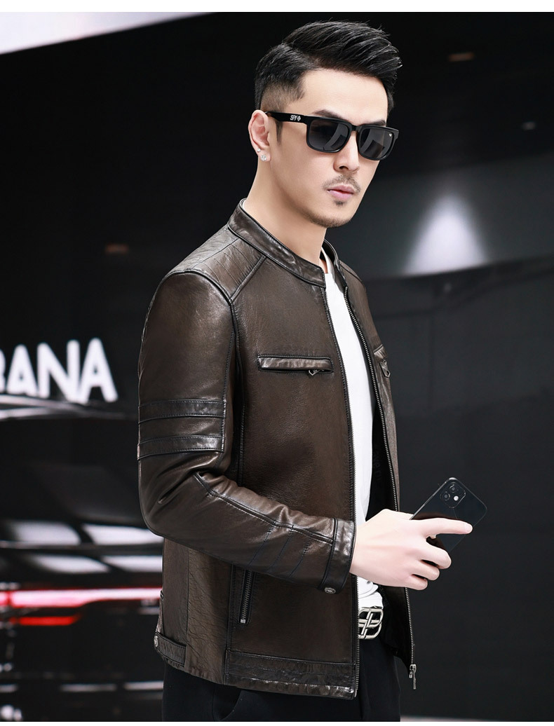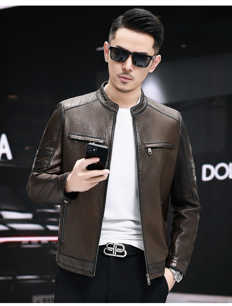 Áo khoác kiểu dáng ngắn gọn, phù hợp cho nam giới. Chất liệu từ da cừu mềm mại, mang lại cảm giác dễ chịu khi mặc. Thiết kế cổ đứng nhỏ gọn, kết hợp với phong cách mạnh mẽ như áo khoác lái xe, tạo nên vẻ ngoài trẻ trung và năng động. Sản phẩm có độ dày vừa phải, dễ dàng phối hợp với nhiều trang phục khác nhau trong các dịp thường ngày. Mặc kèm với áo thun hoặc áo sơ mi đều phù hợp. | Tên sản phẩm: Áo Da Nam Chất Liệu Da Bò - Thời Trang Nam | Mã sản phẩm: B5757 - Giá: 7.220.000đ | Mã nhà sản xuất: HADG-G06Hình ảnh sản phẩm