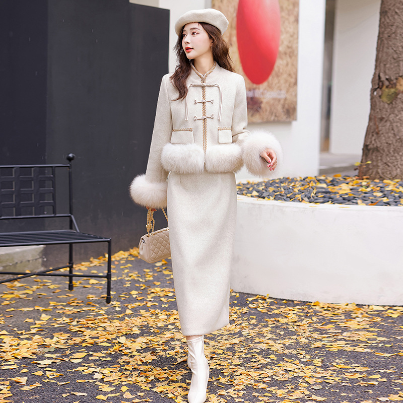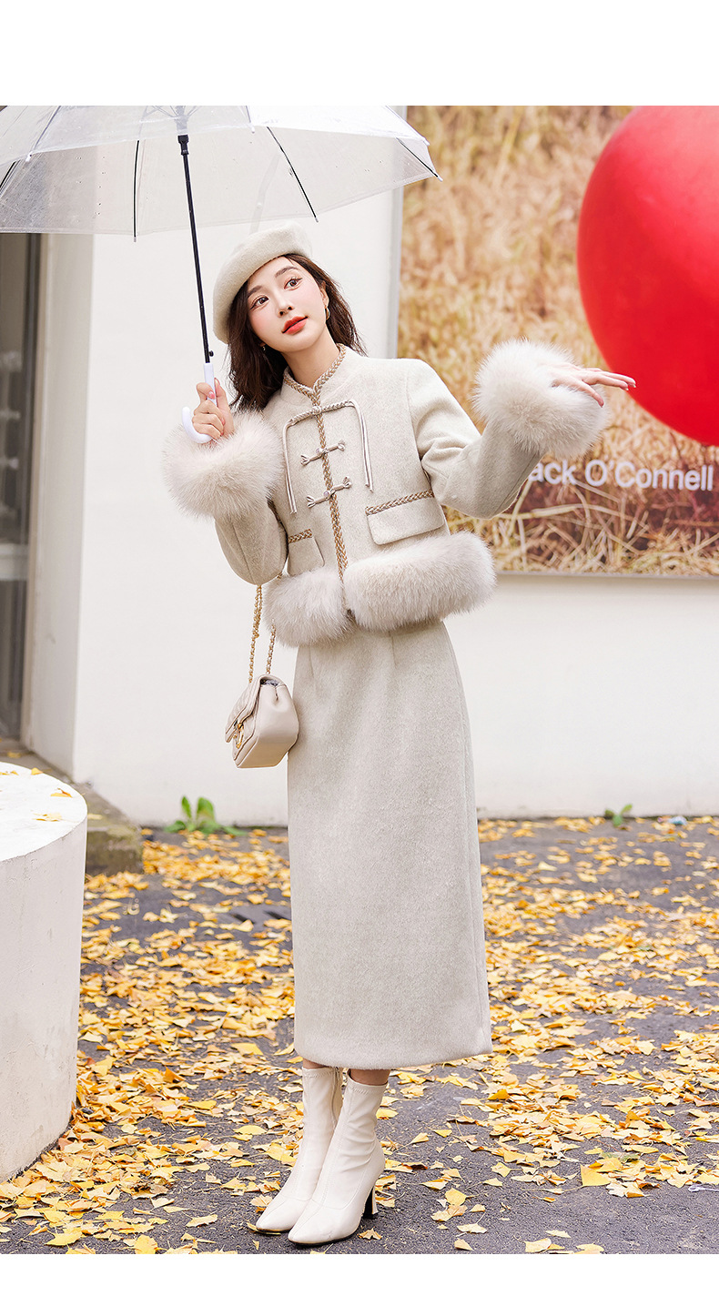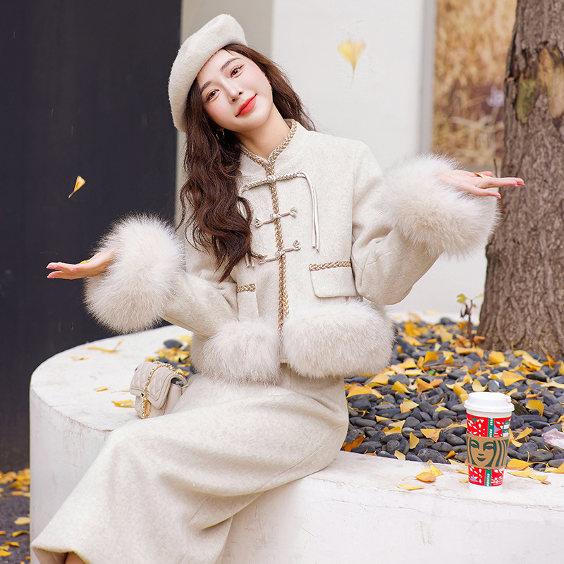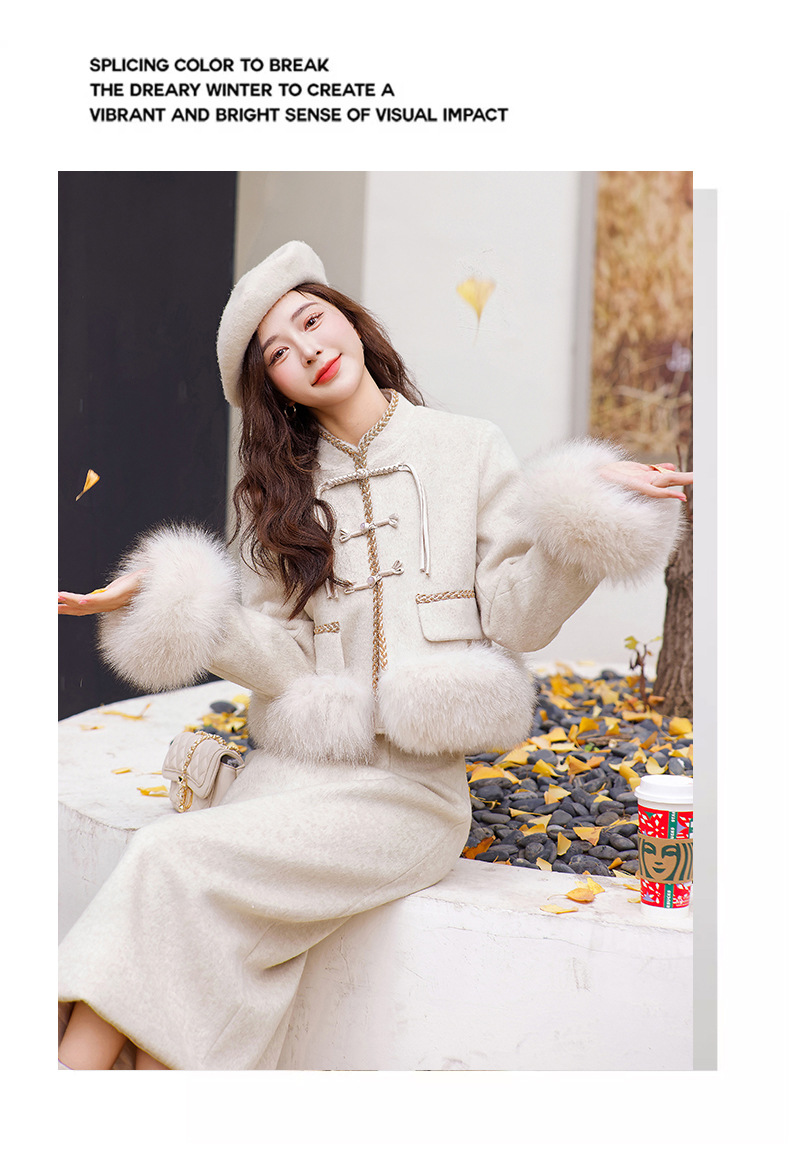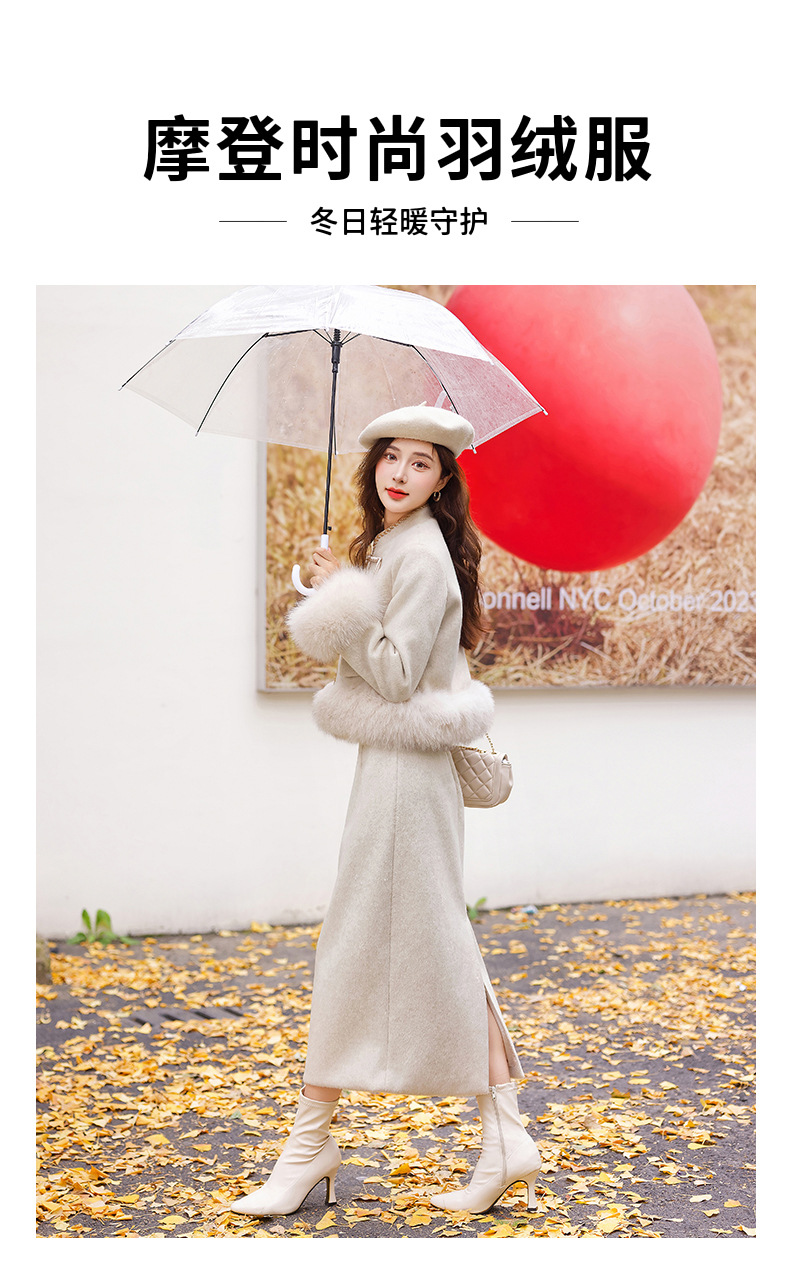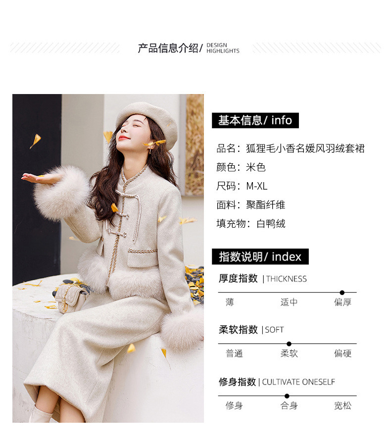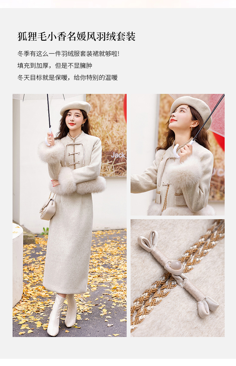 Bộ trang phục này có áo khoác và quần, được làm từ chất liệu lông vũ trắng của vịt, giữ ấm rất tốt. Điểm nhấn là hàng nút thắt truyền thống và phần cổ áo được điểm xuyến bằng lông của loài cáo, tạo nên vẻ đẹp vừa cổ điển vừa hiện đại. Kiểu dáng thanh lịch, phù hợp mặc trong nhiều dịp khác nhau. Bạn có thể mặc nguyên bộ hoặc phối cùng các trang phục khác để tạo nên phong cách riêng cho mình. | Tên sản phẩm: Đồ Bộ Nữ - Thời Trang Nữ | Mã sản phẩm: B5758 - Giá: 4.610.000đ | Mã nhà sản xuất: HADG-G06Hình ảnh sản phẩm