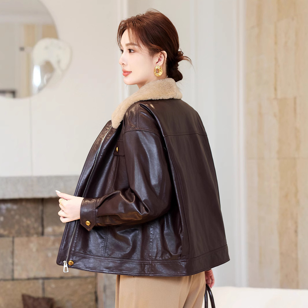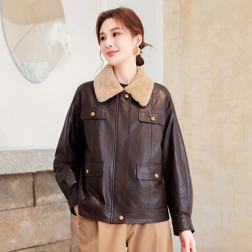 Áo khoác nữ ngắn, kiểu dáng trẻ trung và năng động. Chất liệu da cừu mềm mại kết hợp với lớp lông vũ ấm áp bên trong, giữ nhiệt tốt cho những ngày trời lạnh. Phần cổ áo được làm từ lông cừu non, tạo điểm nhấn và giúp bảo vệ vùng cổ. Mặc cùng quần jeans hoặc chân váy đều phù hợp. Dùng để mặc giữ ấm trong tiết trời se lạnh hoặc những ngày đông. | Tên sản phẩm: Áo Khoác Nữ Chất Liệu Da Bò Hàng Mùa Xuân Thu Đông - Thời Trang Nữ | Mã sản phẩm: B5761 - Giá: 7.860.000đ | Mã nhà sản xuất: HADG-G06Hình ảnh sản phẩm