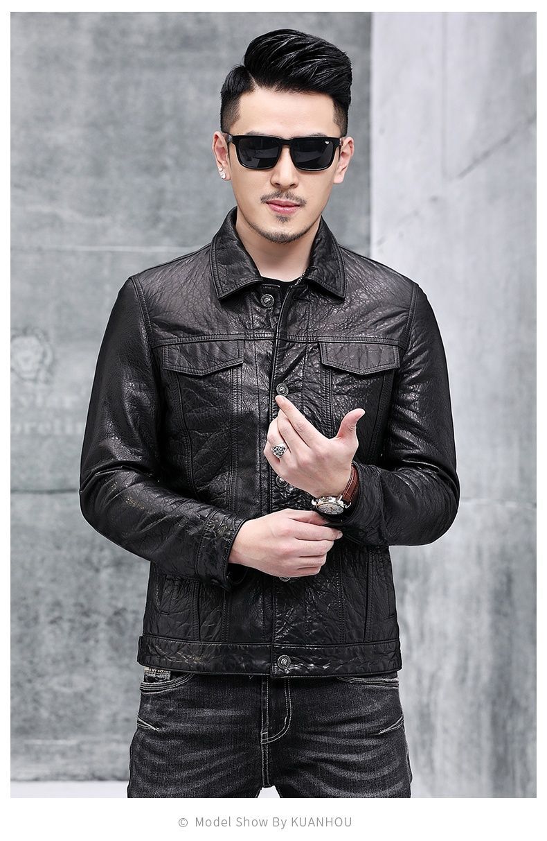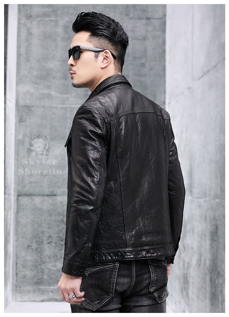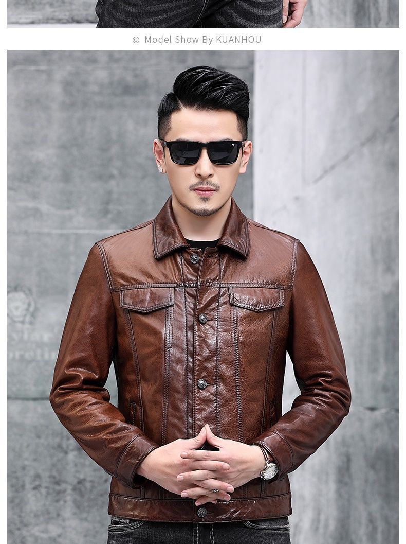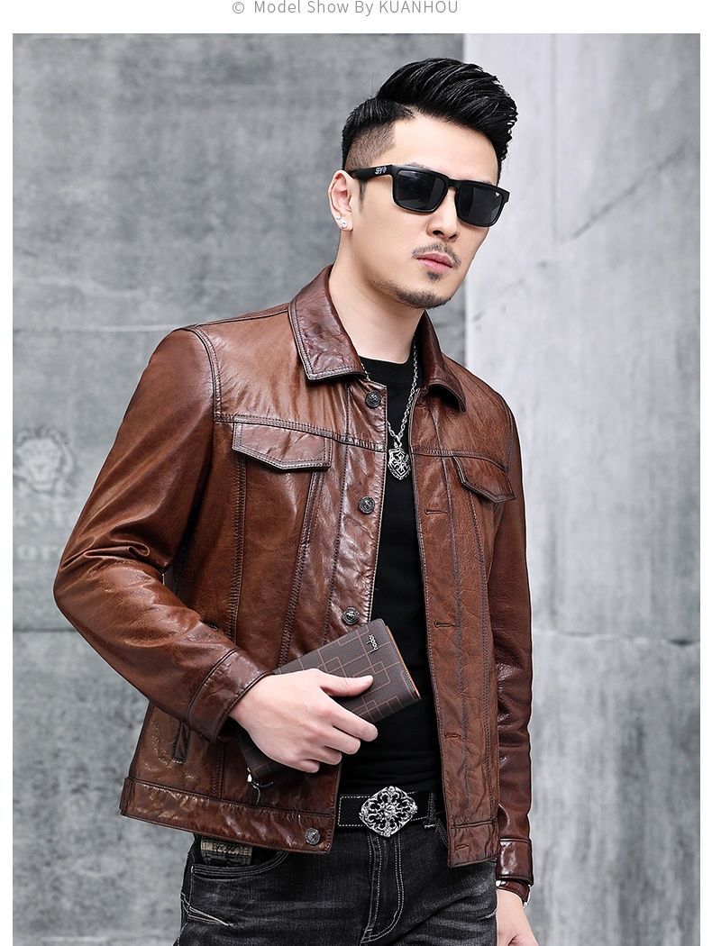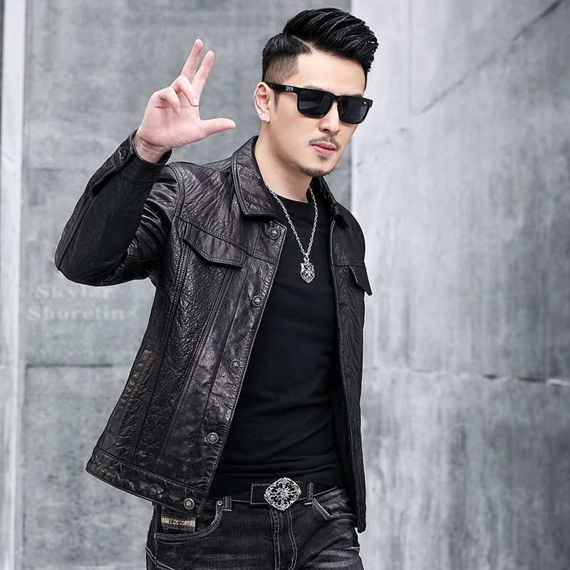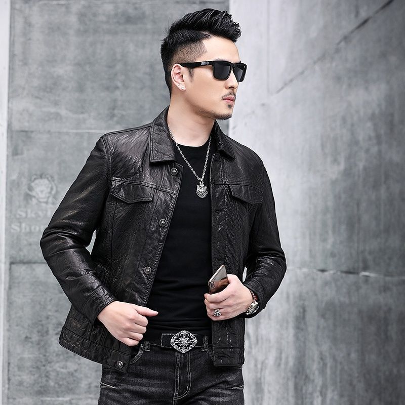 Áo khoác da nam thiết kế kiểu mặc xe máy, có cổ bẻ. Sản phẩm thuộc bộ sưu tập mới cho mùa thu đông, làm từ chất liệu da bò tự nhiên lớp đầu tiên, bền chắc và có độ mềm mại vừa phải. Kiểu dáng nam tính, phù hợp khi điều khiển xe máy hoặc phối cùng quần jeans trong các dịp giao lưu. Mặc kèm áo thun bên trong, giữ sản phẩm nơi khô ráo và tránh ánh nắng trực tiếp. | Tên sản phẩm: Áo Da Nam Chất Liệu Da Bò Kín Cổ Hàng Mùa Xuân Thu Đông - Thời Trang Nam | Mã sản phẩm: B5768 - Giá: 5.540.000đ | Mã nhà sản xuất: HADG-G06Hình ảnh sản phẩm