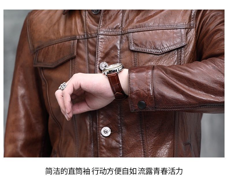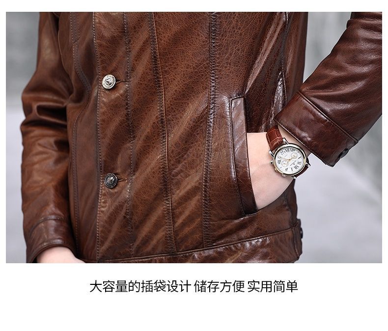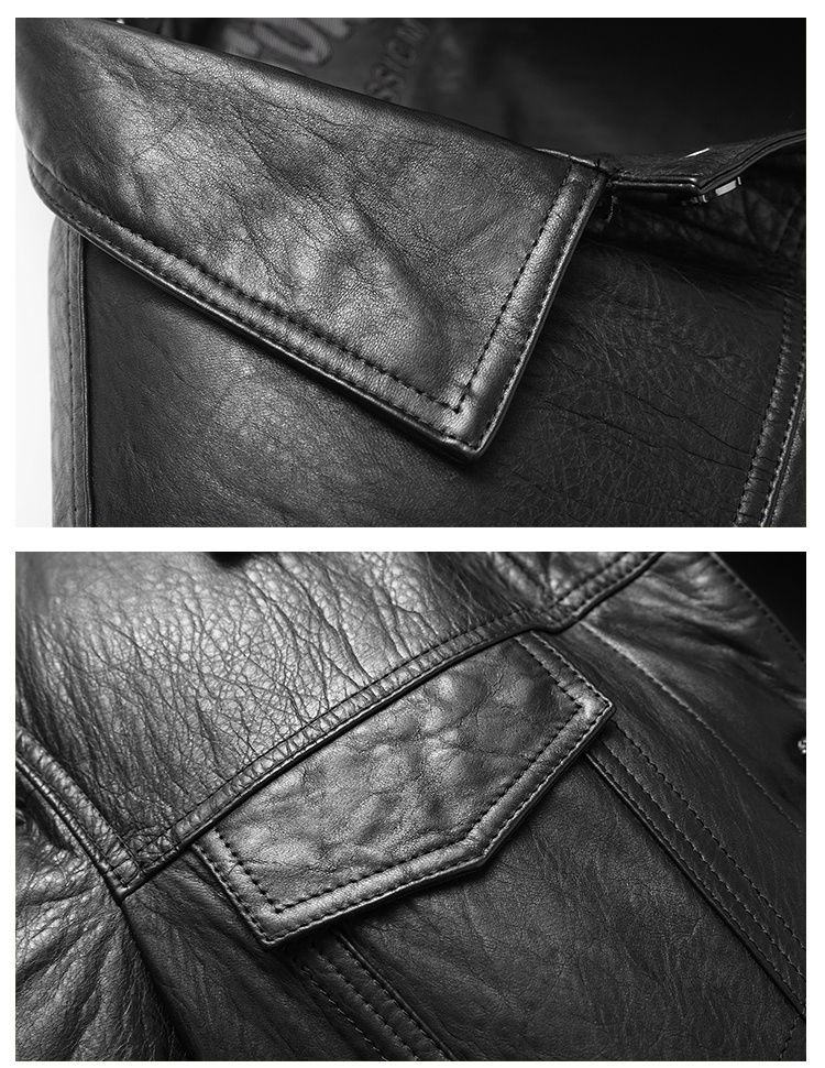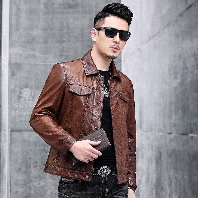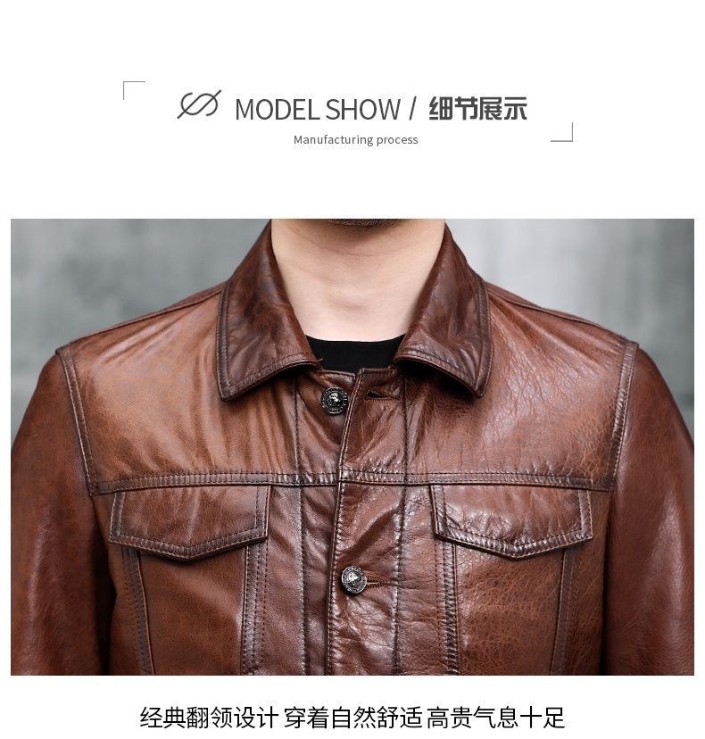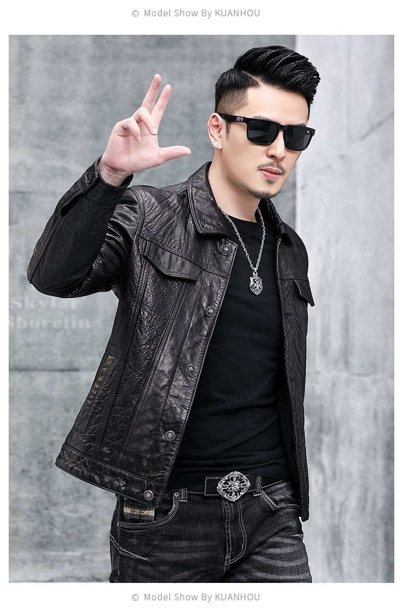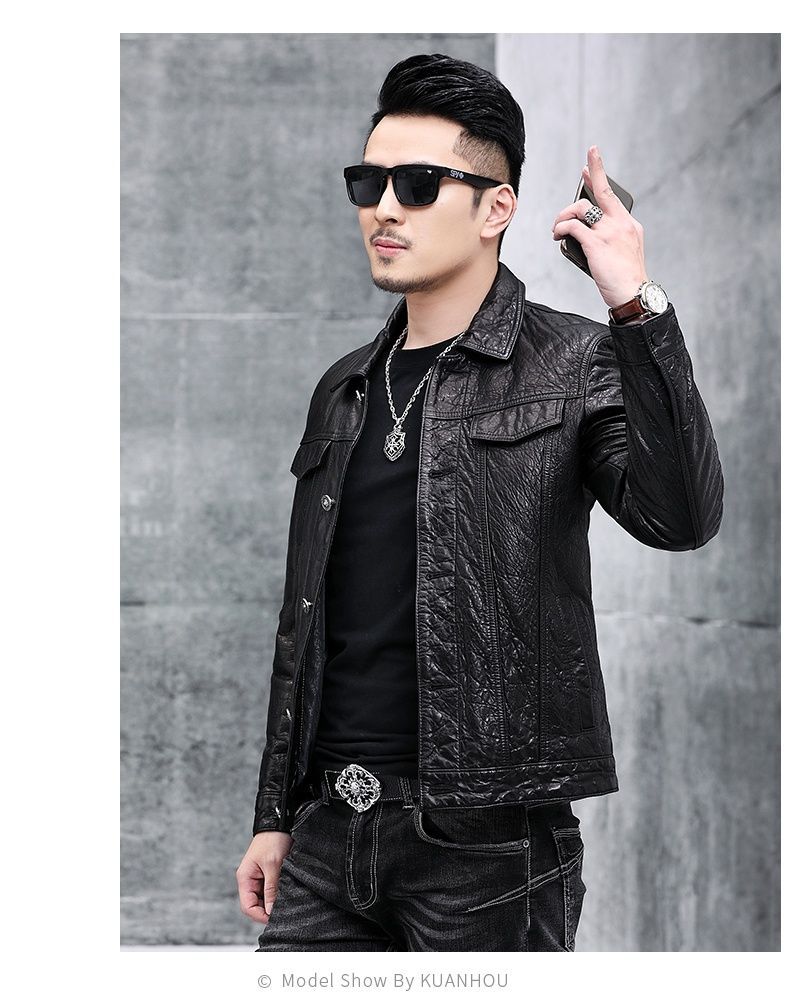 Áo khoác da nam thiết kế kiểu mặc xe máy, có cổ bẻ. Sản phẩm thuộc bộ sưu tập mới cho mùa thu đông, làm từ chất liệu da bò tự nhiên lớp đầu tiên, bền chắc và có độ mềm mại vừa phải. Kiểu dáng nam tính, phù hợp khi điều khiển xe máy hoặc phối cùng quần jeans trong các dịp giao lưu. Mặc kèm áo thun bên trong, giữ sản phẩm nơi khô ráo và tránh ánh nắng trực tiếp. | Tên sản phẩm: Áo Da Nam Chất Liệu Da Bò Kín Cổ Hàng Mùa Xuân Thu Đông - Thời Trang Nam | Mã sản phẩm: B5768 - Giá: 5.540.000đ | Mã nhà sản xuất: HADG-G06Hình ảnh sản phẩm