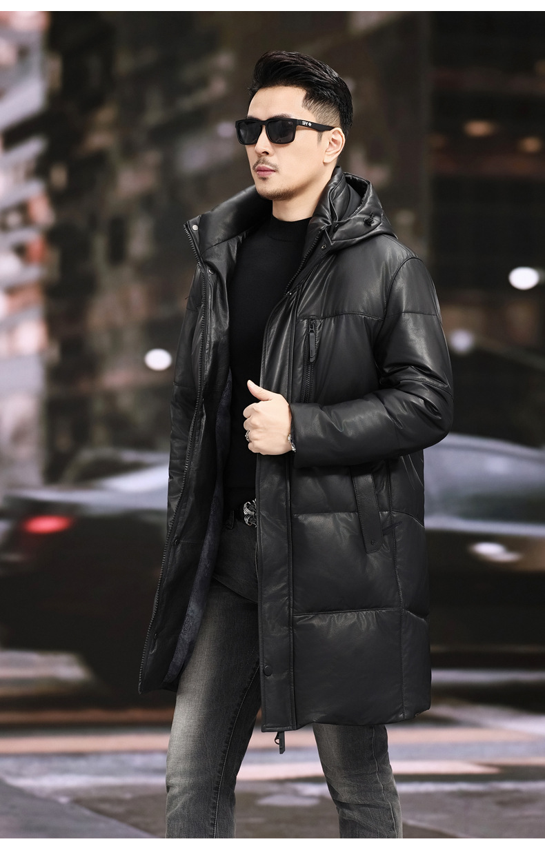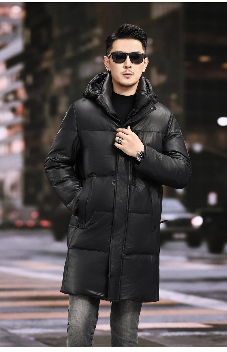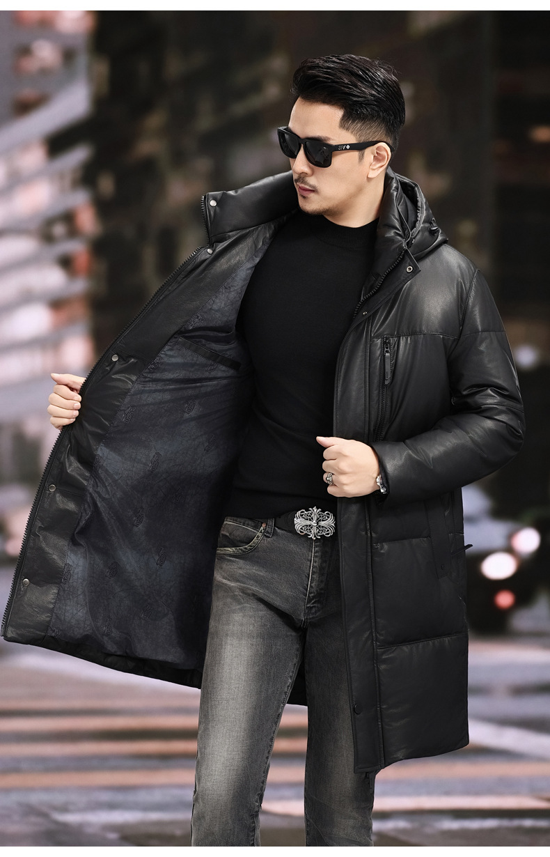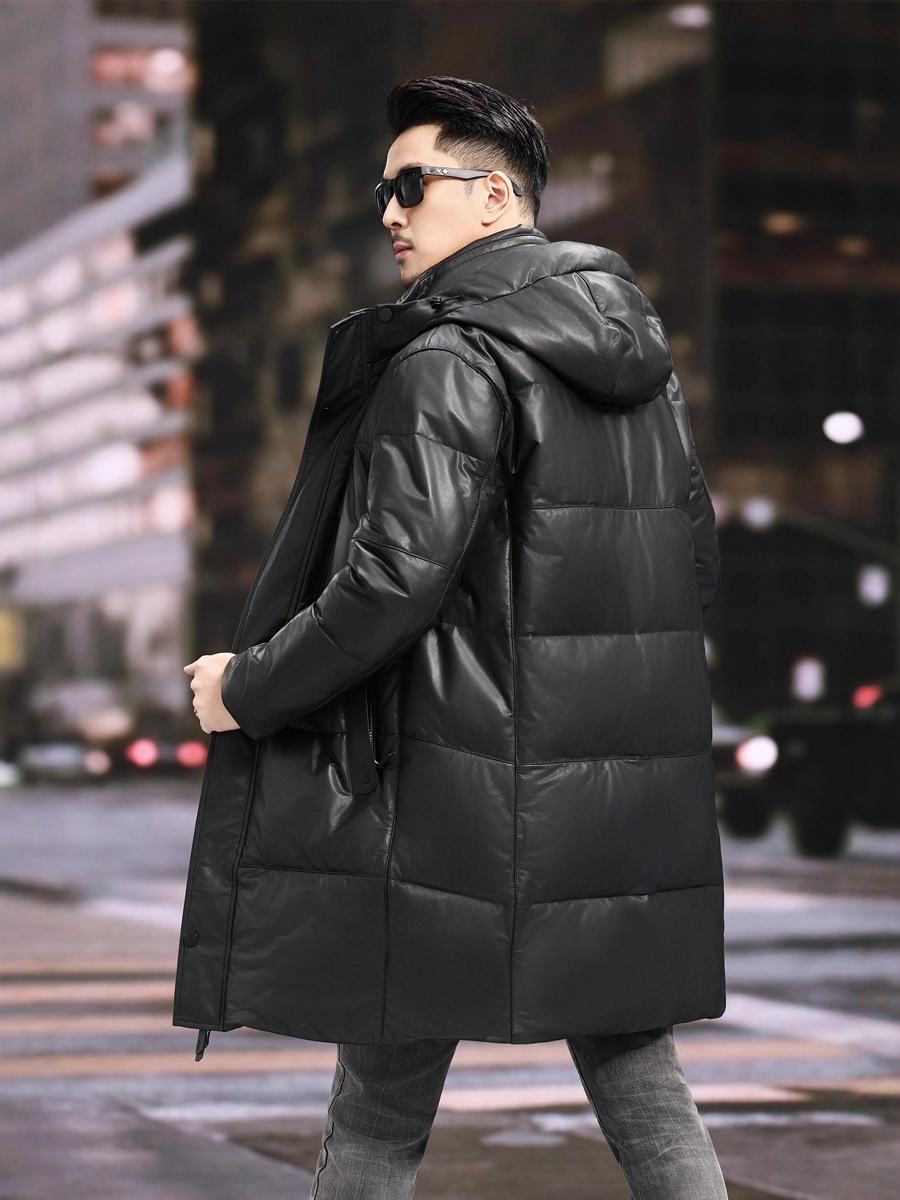 Áo khoác dáng dài dành cho nam, thiết kế cho thời tiết lạnh. Sản phẩm được làm từ chất liệu da thật bên ngoài, kết hợp cùng lớp áo lông vũ bên trong giữ ấm hiệu quả. Phần mũ trùm đầu có thể dễ dàng tháo rời để phù hợp với nhiều hoàn cảnh sử dụng khác nhau. Mặc kèm áo thun hoặc áo len bên trong để giữ ấm tốt hơn trong ngày đông giá rét. | Tên sản phẩm: Áo Da Nam Chất Liệu Da Bò Hàng Mùa Xuân Thu Đông - Thời Trang Nam | Mã sản phẩm: B5790 - Giá: 8.880.000đ | Mã nhà sản xuất: HADG-G06Hình ảnh sản phẩm