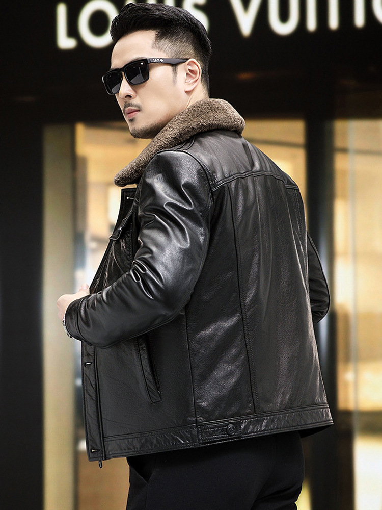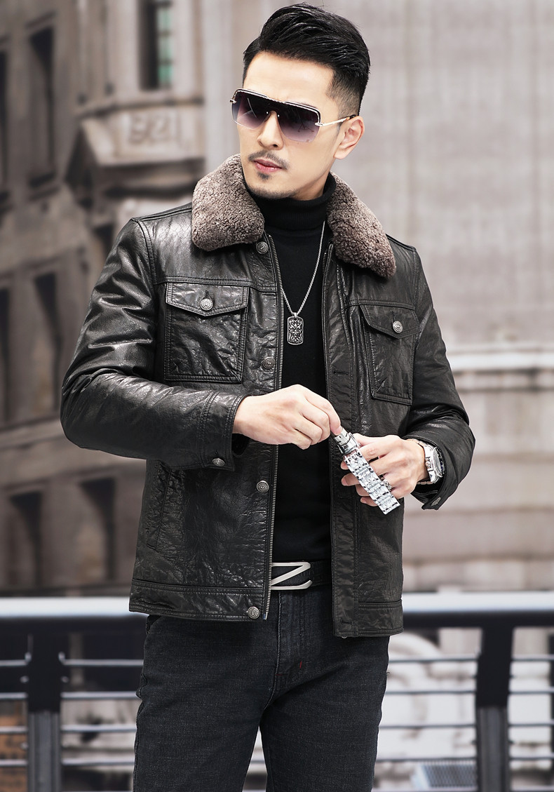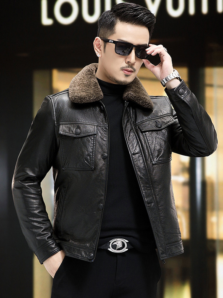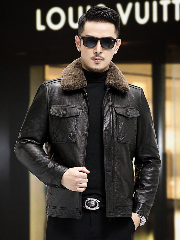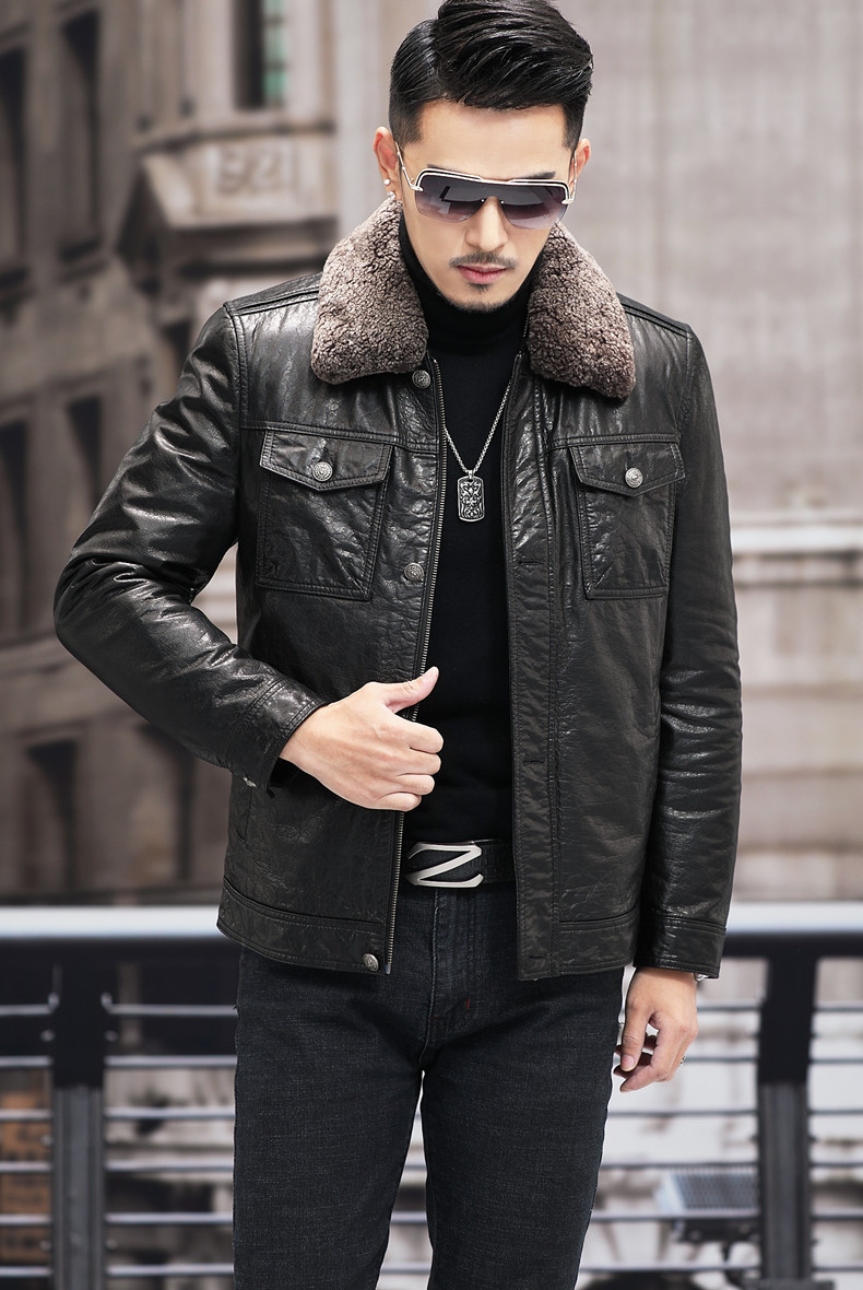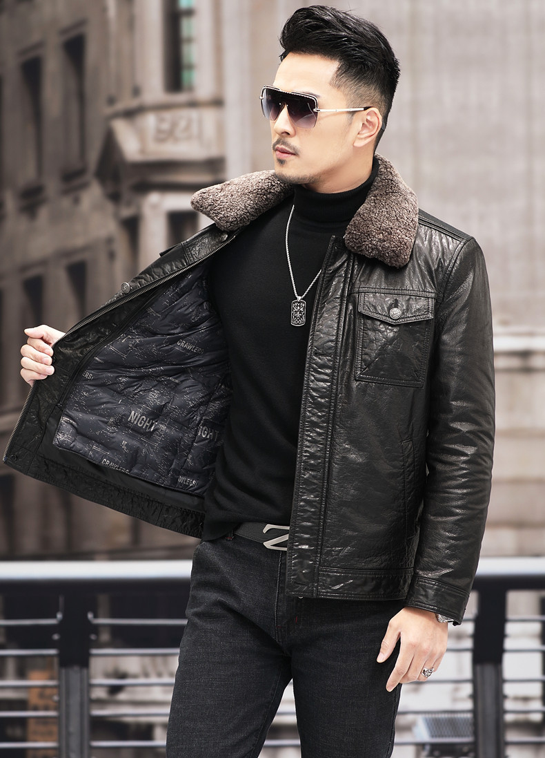 Áo khoác mùa lạnh dành cho nam, được kết hợp từ hai lớp ấm áp: bên trong là lớp lông vũ cách nhiệt và bên ngoài là chất liệu da bò mềm mại có phủ lớp dầu sáp. Cổ áo may bằng lông cừu non có thể dễ dàng tháo rời hoặc gắn vào tùy ý. Kiểu dáng cổ bẻ cùng thiết kế khóa kéo tiện lợi, giúp giữ ấm tốt và phù hợp cho nhiều dịp sử dụng. Mặc trực tiếp bên ngoài áo thun hoặc áo len để giữ cơ thể ấm áp trong tiết trời lạnh giá. | Tên sản phẩm: Áo Da Nam Chất Liệu Da Bò Kín Cổ Hàng Mùa Xuân Thu Đông - Thời Trang Nam | Mã sản phẩm: B5794 - Giá: 5.460.000đ | Mã nhà sản xuất: HADG-G06Hình ảnh sản phẩm