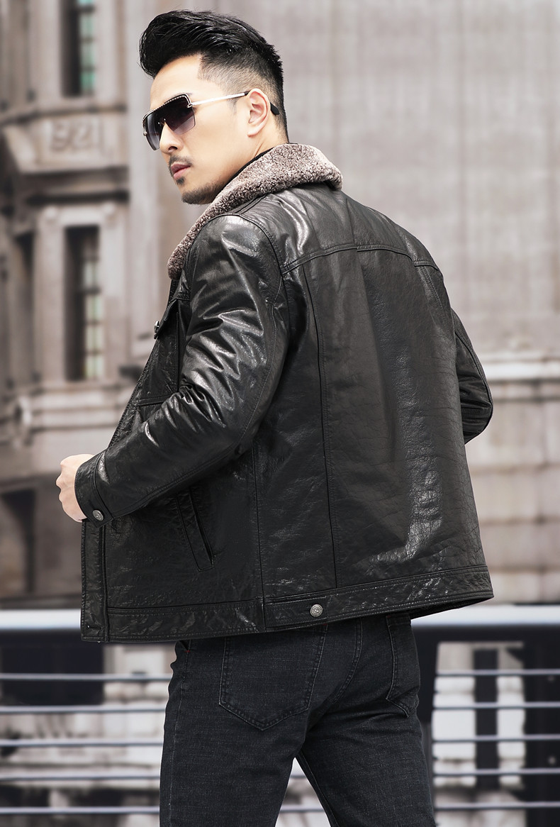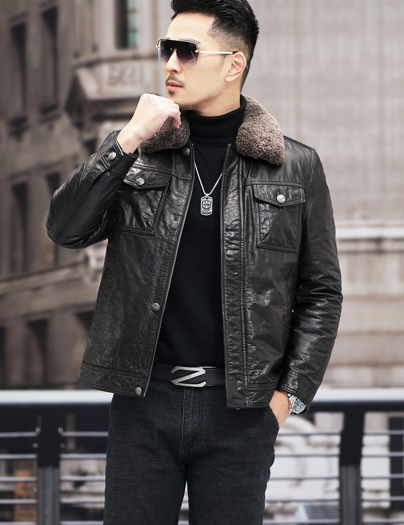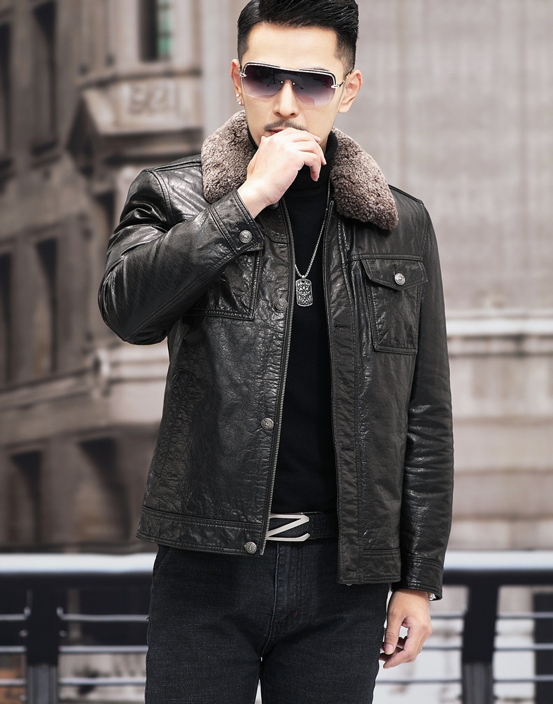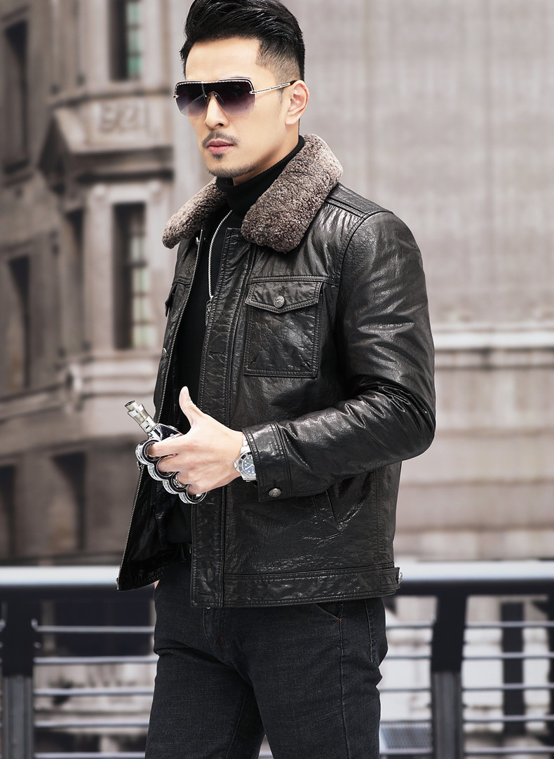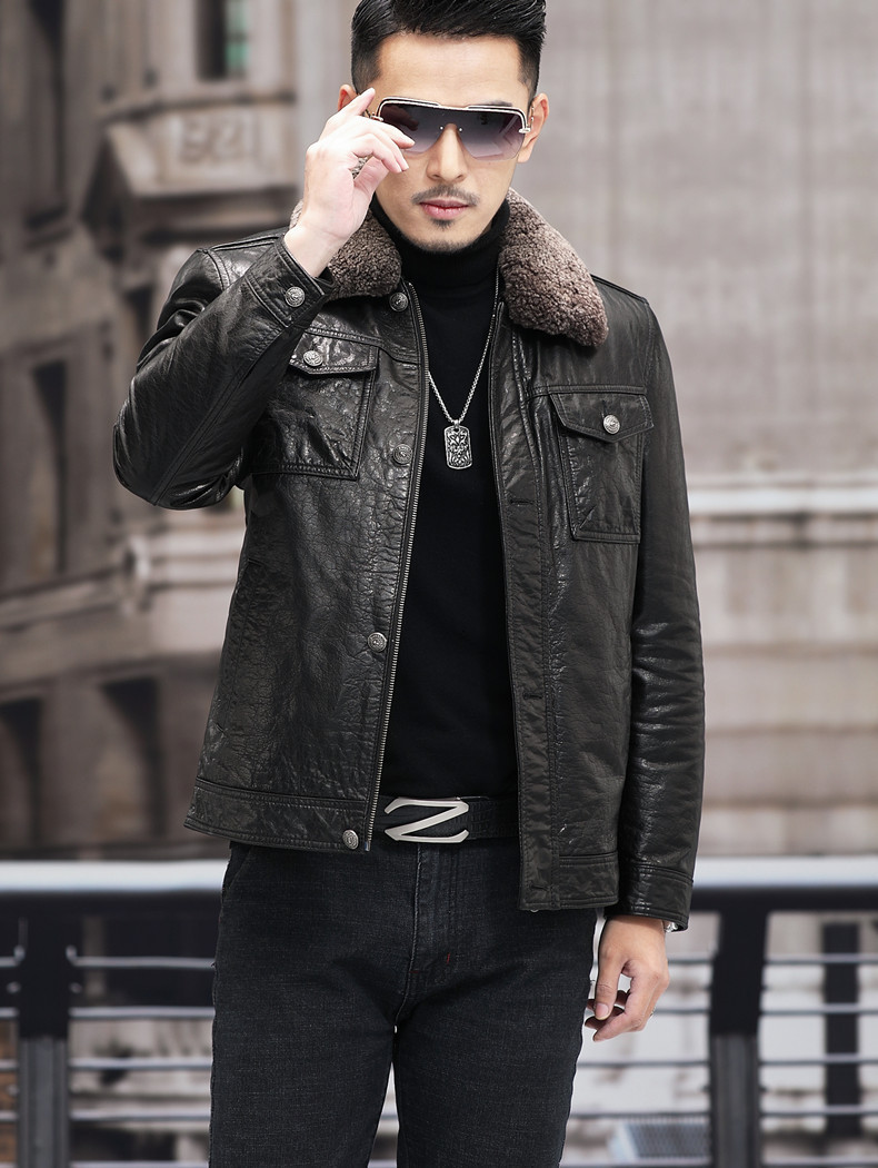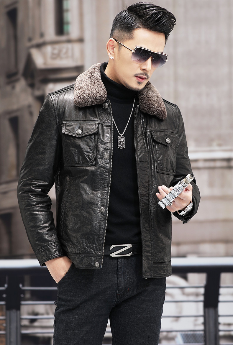 Áo khoác mùa lạnh dành cho nam, được kết hợp từ hai lớp ấm áp: bên trong là lớp lông vũ cách nhiệt và bên ngoài là chất liệu da bò mềm mại có phủ lớp dầu sáp. Cổ áo may bằng lông cừu non có thể dễ dàng tháo rời hoặc gắn vào tùy ý. Kiểu dáng cổ bẻ cùng thiết kế khóa kéo tiện lợi, giúp giữ ấm tốt và phù hợp cho nhiều dịp sử dụng. Mặc trực tiếp bên ngoài áo thun hoặc áo len để giữ cơ thể ấm áp trong tiết trời lạnh giá. | Tên sản phẩm: Áo Da Nam Chất Liệu Da Bò Kín Cổ Hàng Mùa Xuân Thu Đông - Thời Trang Nam | Mã sản phẩm: B5794 - Giá: 5.460.000đ | Mã nhà sản xuất: HADG-G06Hình ảnh sản phẩm