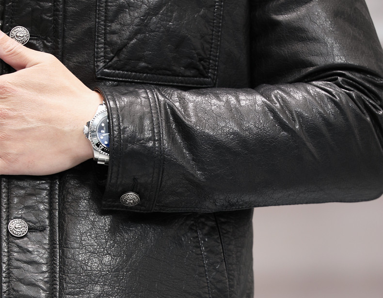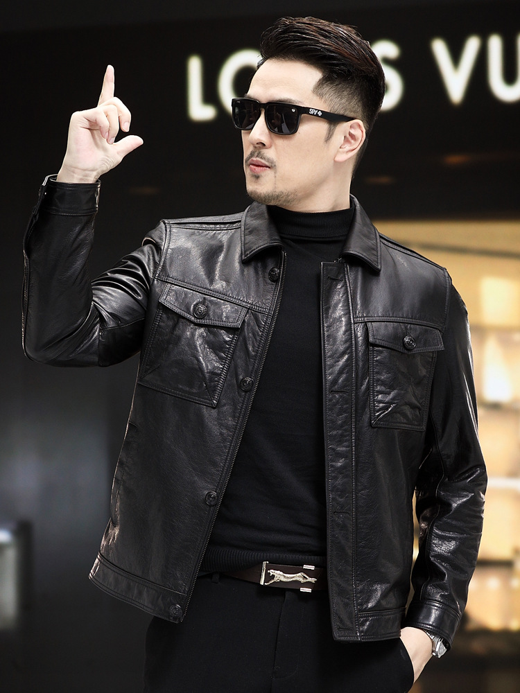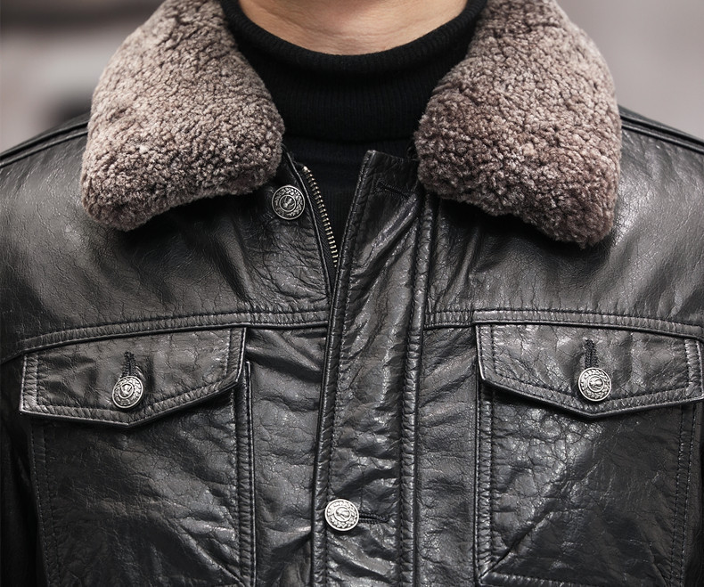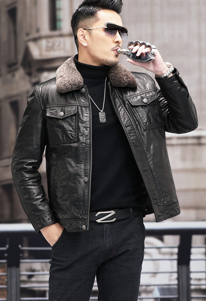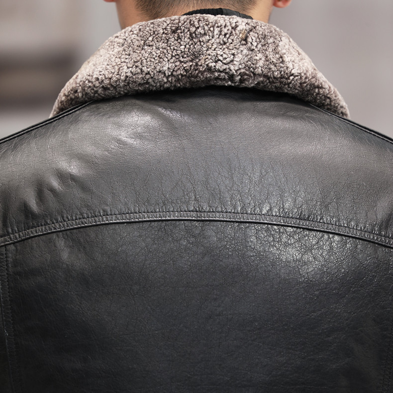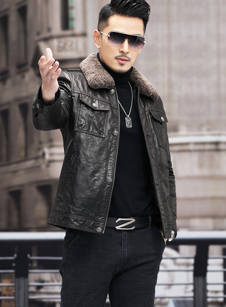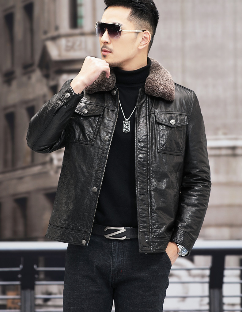 Áo khoác mùa lạnh dành cho nam, được kết hợp từ hai lớp ấm áp: bên trong là lớp lông vũ cách nhiệt và bên ngoài là chất liệu da bò mềm mại có phủ lớp dầu sáp. Cổ áo may bằng lông cừu non có thể dễ dàng tháo rời hoặc gắn vào tùy ý. Kiểu dáng cổ bẻ cùng thiết kế khóa kéo tiện lợi, giúp giữ ấm tốt và phù hợp cho nhiều dịp sử dụng. Mặc trực tiếp bên ngoài áo thun hoặc áo len để giữ cơ thể ấm áp trong tiết trời lạnh giá. | Tên sản phẩm: Áo Da Nam Chất Liệu Da Bò Kín Cổ Hàng Mùa Xuân Thu Đông - Thời Trang Nam | Mã sản phẩm: B5794 - Giá: 5.460.000đ | Mã nhà sản xuất: HADG-G06Hình ảnh sản phẩm