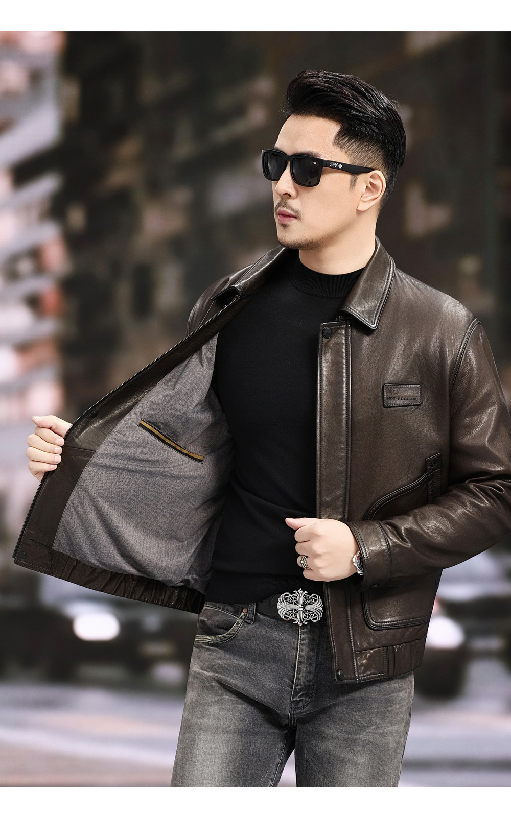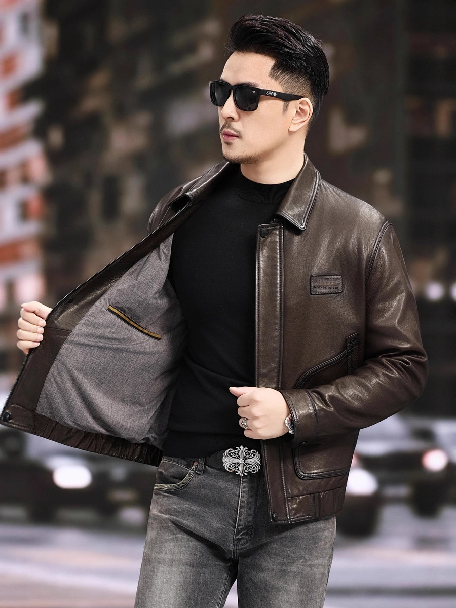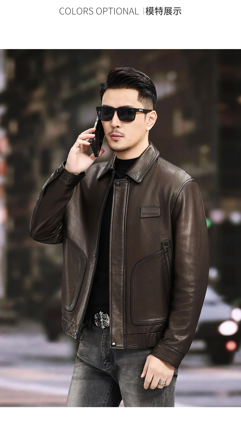 Áo khoác da dành cho nam, được làm từ chất liệu da cừu non mềm mại có phủ lớp dầu sáp, mang đến vẻ ngoại hình lịch sự và thời trang. Kiểu dáng có cổ bẻ, thiết kế ôm vừa vặn tạo cảm giác thoải mái khi mặc. Sản phẩm phù hợp cho những dịp đi chơi, gặp gỡ bạn bè hay trong sinh hoạt hằng ngày. Chỉ cần kết hợp với quần tây hoặc quần jean là bạn đã có một phong cách chỉn chu. | Tên sản phẩm: Áo Da Nam Chất Liệu Da Bò Kín Cổ Hàng Mùa Xuân Thu Đông Trung Niên - Thời Trang Nam | Mã sản phẩm: B5805 - Giá: 7.220.000đ | Mã nhà sản xuất: HADG-G06Hình ảnh sản phẩm