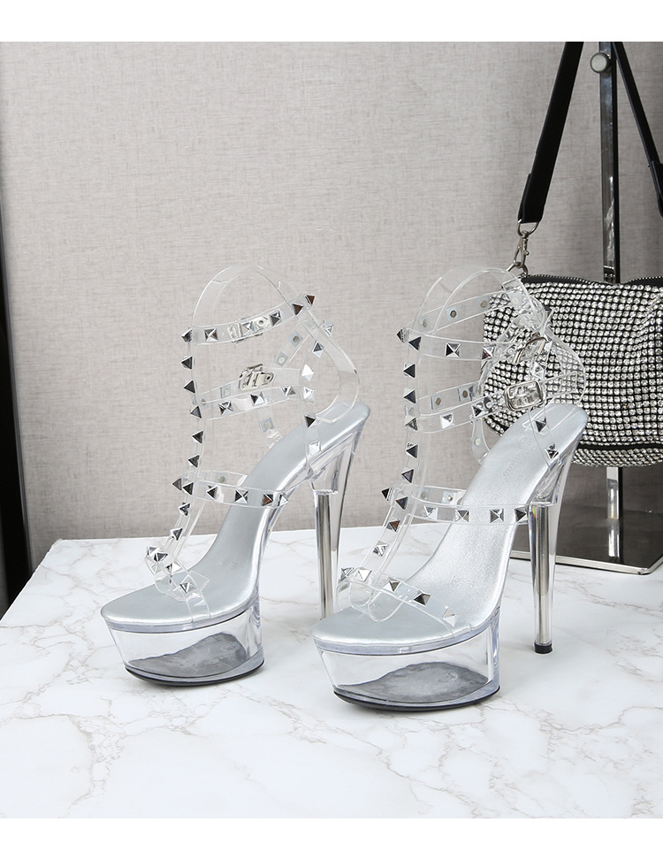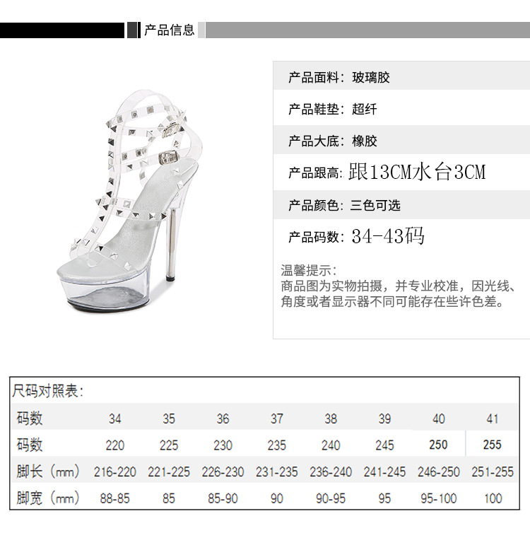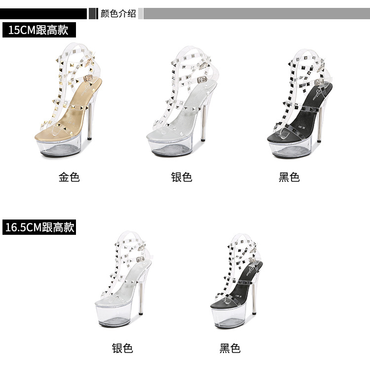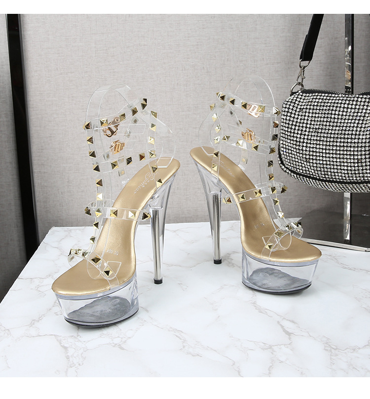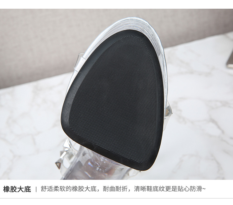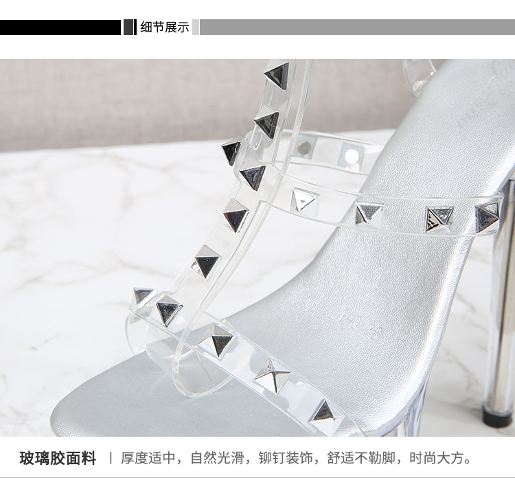 Đôi giày cao gót này có phần gót thanhai mảnh cao từ 13 đến 15 cm, kèm theo đế trước giúp nâng đỡ và tạo dáng bước đi thoải mái. Kiểu dáng sandal với chất liệu trong suốt như pha lê, điểm xuyết các chi tiết đinh tán cá tính. Sản phẩm phù hợp để phối cùng nhiều trang phục khác nhau. Khi sử dụng, nên đi lại cẩn thận trên các bề mặt bằng phẳng để giữ thăng bằng tốt hơn. | Tên sản phẩm: Giày Cao Gót Nữ Gót Nhọn Trong Suốt - Giày Dép Nữ | Mã sản phẩm: B5814 - Giá: 870.000đ | Mã nhà sản xuất: JIENNG-G03Hình ảnh sản phẩm