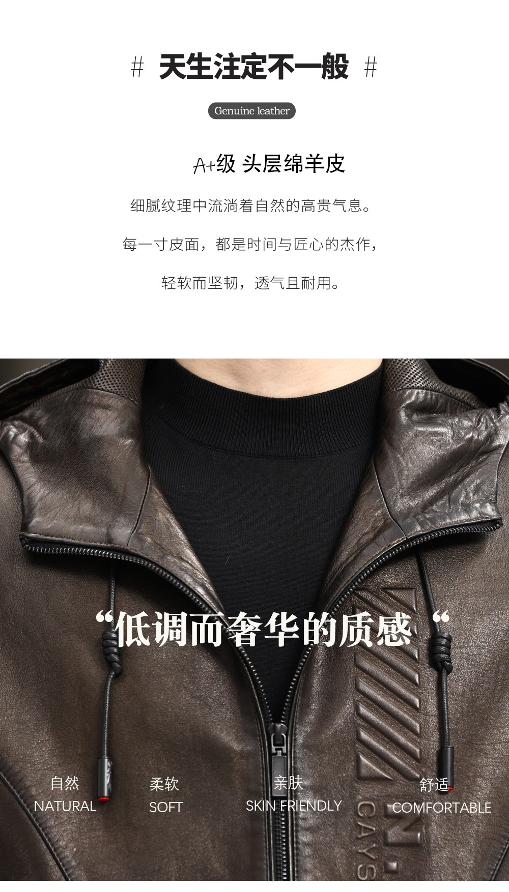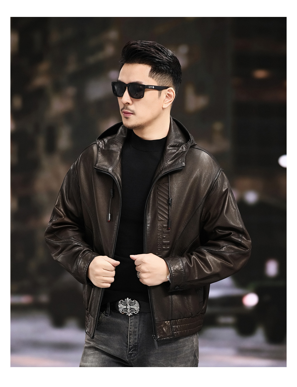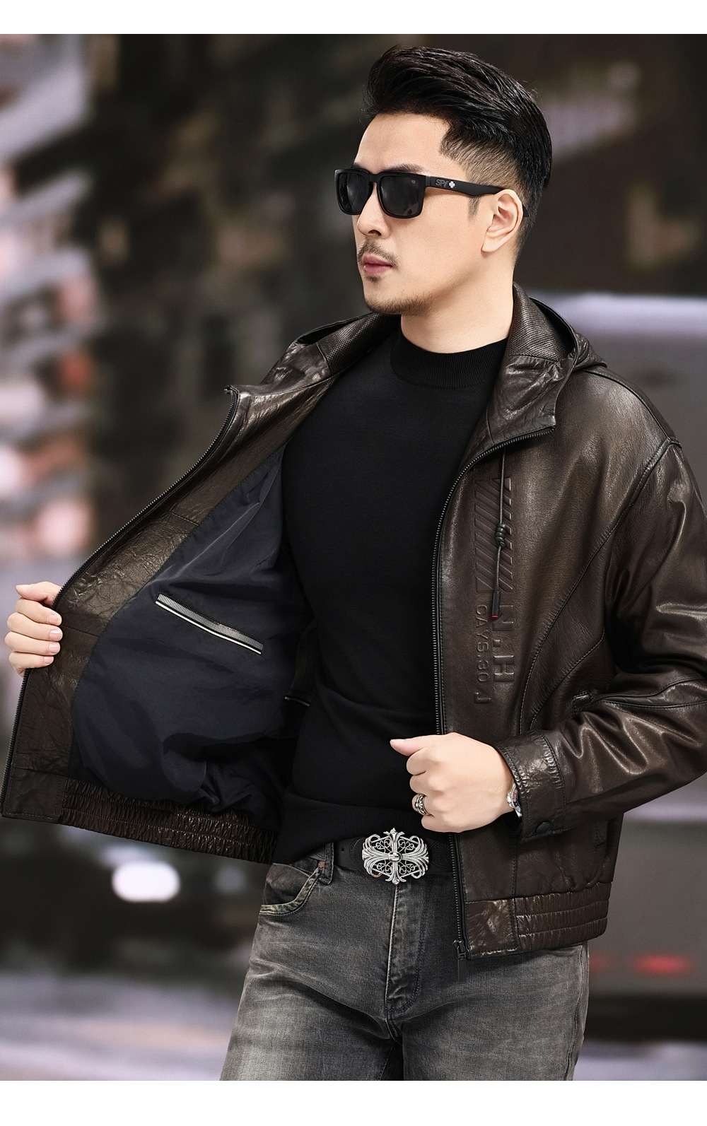 Áo khoác mùa thu được làm từ chất liệu da cừu non mềm mại, có độ bóng nhẹ tự nhiên. Kiểu dáng ngắn gọn kèm mũ trùm tiện lợi, form rộng tạo cảm giác thoải mái khi mặc. Sản phẩm có lớp lót dày dặn giữ ấm tốt trong tiết trời se lạnh. Phù hợp mặc trong nhiều dịp như dạo phố, gặp gỡ bạn bè. Bạn chỉ cần kéo khóa và điều chỉnh nút gài là đã có ngay phong cách trẻ trung, năng động. | Tên sản phẩm: Áo Khoác Nam Chất Liệu Da Bò Mũ Liền Dày Ấm Hàng Mùa Xuân Thu Đông - Thời Trang Nam | Mã sản phẩm: B5815 - Giá: 8.140.000đ | Mã nhà sản xuất: HADG-G06Hình ảnh sản phẩm
