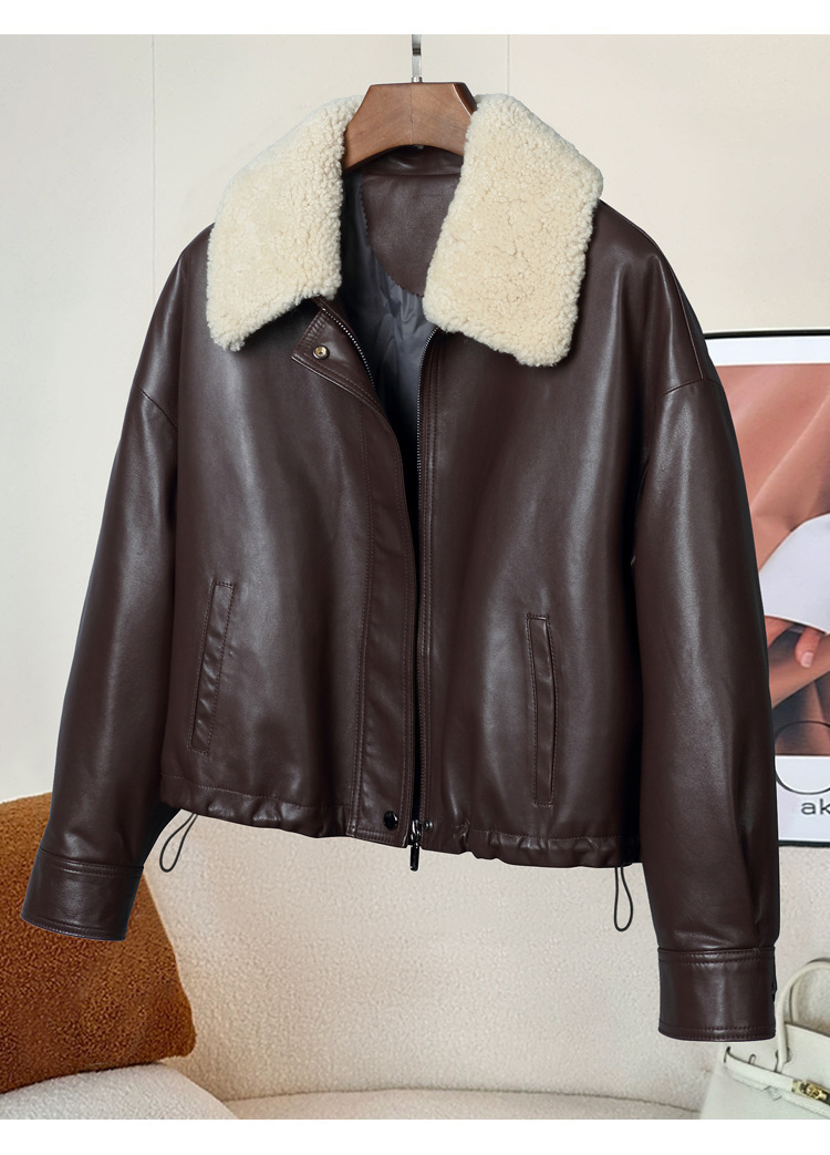 Áo khoác da cổ lông này là lựa chọn ấm áp cho những ngày trời lạnh. Chất liệu da mềm mại kết hợp cùng lớp áo bên trong có tơ mỏng nhẹ, giúp giữ nhiệt tốt. Kiểu dáng rộng rãi tạo cảm giác thoải mái, dễ dàng phối cùng nhiều trang phục khác nhau. Bạn có thể mặc trực tiếp như một chiếc áo khoác ngoài để gió lạnh không thể xuyên qua. | Tên sản phẩm: Áo Da Nữ Chất Liệu Da Bò Dày Ấm Hàng Mùa Xuân Thu Đông - Thời Trang Nữ | Mã sản phẩm: B5818 - Giá: 7.310.000đ | Mã nhà sản xuất: HADG-G06Hình ảnh sản phẩm