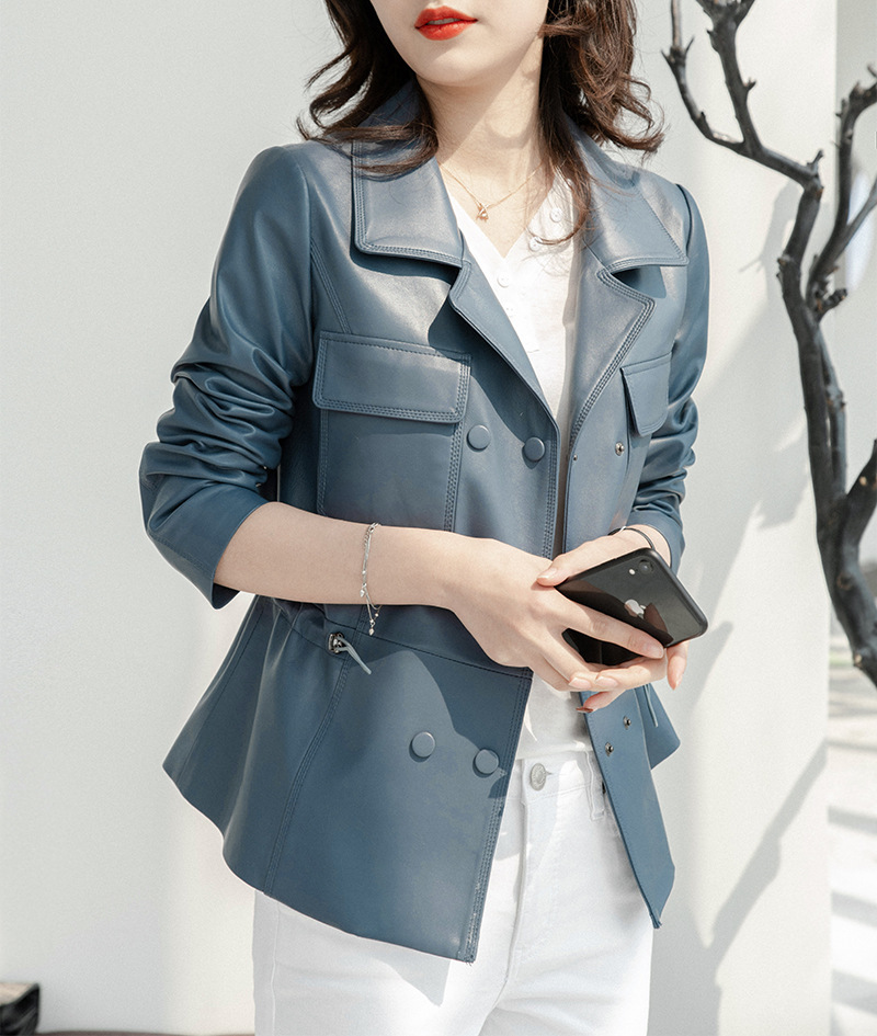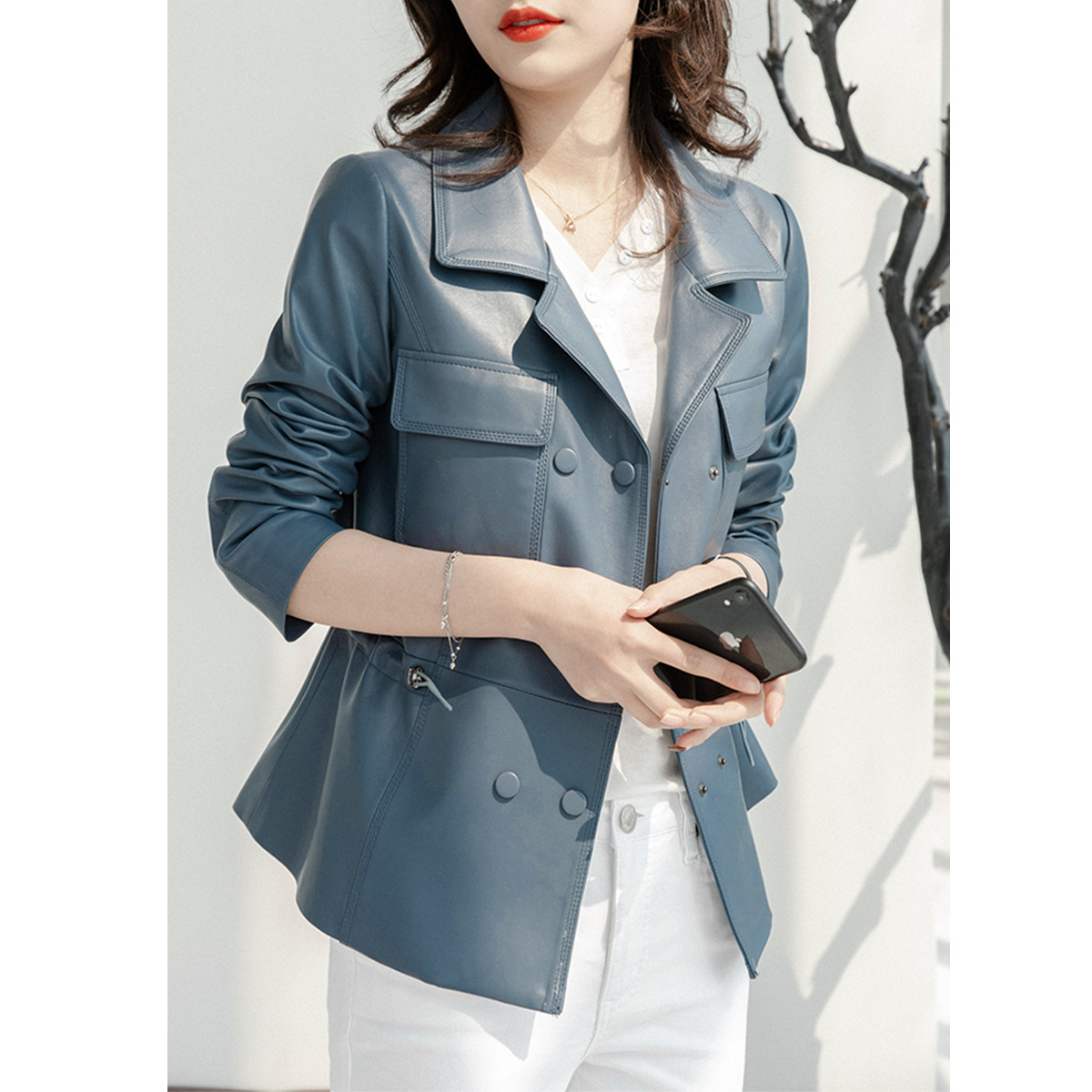 Áo khoác da cừu non dành cho nữ, kiểu dáng ngắn thích hợp mặc trong mùa xuân. Thiết kế có phần cổ dạng áo vest, tạo điểm nhấn thanh lịch. Điểm nổi bật là eo được may dây rút, giúp người mặc có thể điều chỉnh độ ôm theo ý thích. Chất liệu làm từ da thật, mang lại cảm giác mềm mại và thoải mái khi mặc. Dễ dàng phối cùng quần jeans hoặc chân váy để tạo nên những bộ trang phục đẹp. | Tên sản phẩm: Áo Da Nữ Chất Liệu Da Bò Vest Hàng Mùa Xuân Thu Đông - Thời Trang Nữ | Mã sản phẩm: B5819 - Giá: 5.640.000đ | Mã nhà sản xuất: HADG-G06Hình ảnh sản phẩm