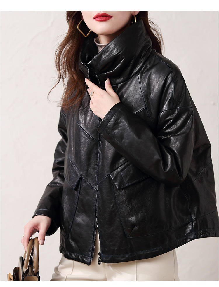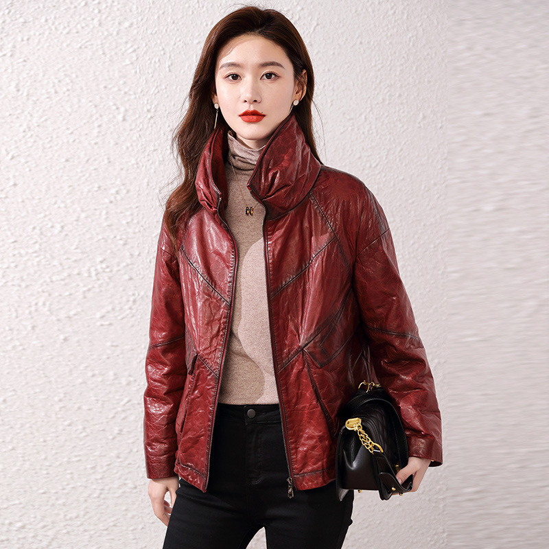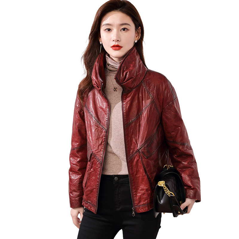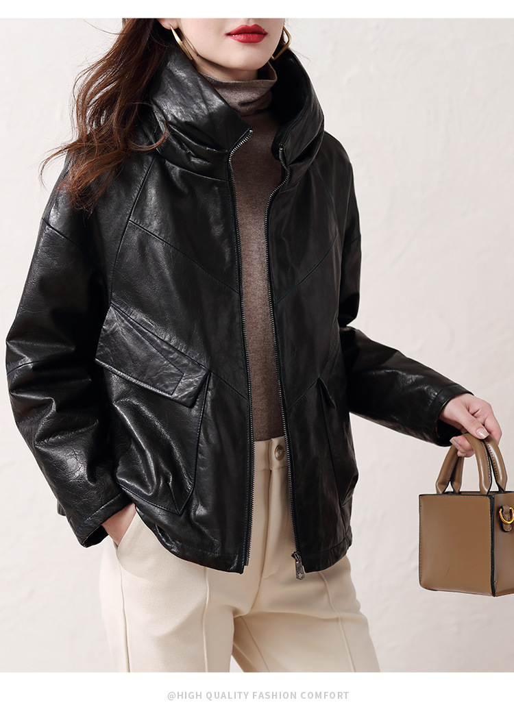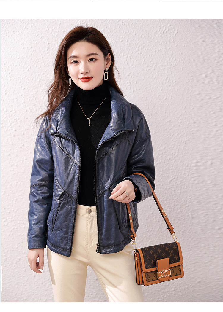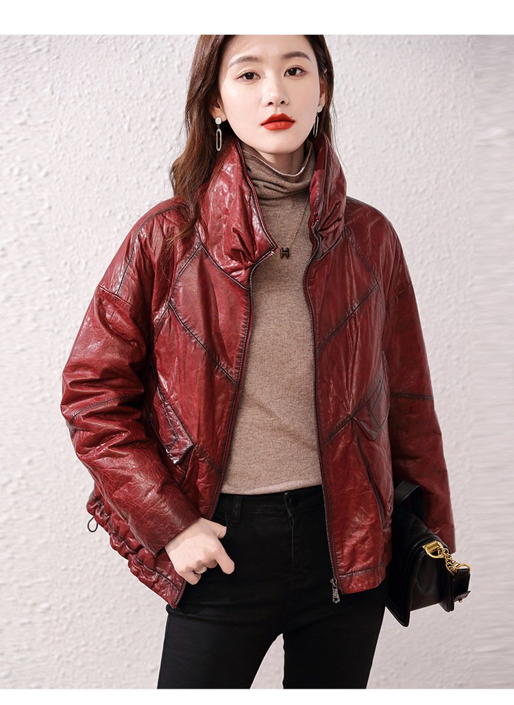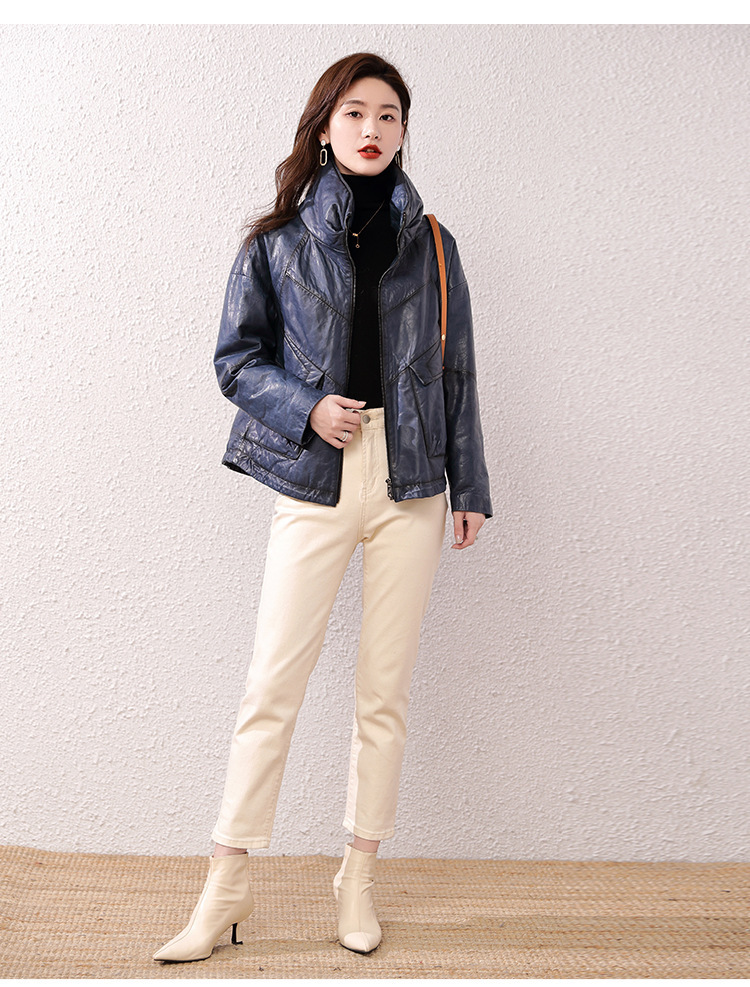 Áo khoác nữ dáng ngắn, rộng rãi, có lớp lông vũ giữ ấm bên trong, phù hợp cho mùa lạnh. Chất liệu da thật bền đẹp, cổ áo thiết kế dựng đứng giúp giữ ấm cổ và tạo phong cách trẻ trung. Sản phẩm dễ dàng phối với nhiều loại trang phục như quần jeans hay váy. Khi sử dụng, lau nhẹ bằng khăn mềm nếu bám bụi và bảo quản nơi khô ráo, thoáng mát. | Tên sản phẩm: Áo Da Nữ Chất Liệu Da Bò Dày Ấm Hàng Mùa Xuân Thu Đông - Thời Trang Nữ | Mã sản phẩm: B5829 - Giá: 7.030.000đ | Mã nhà sản xuất: HADG-G06Hình ảnh sản phẩm