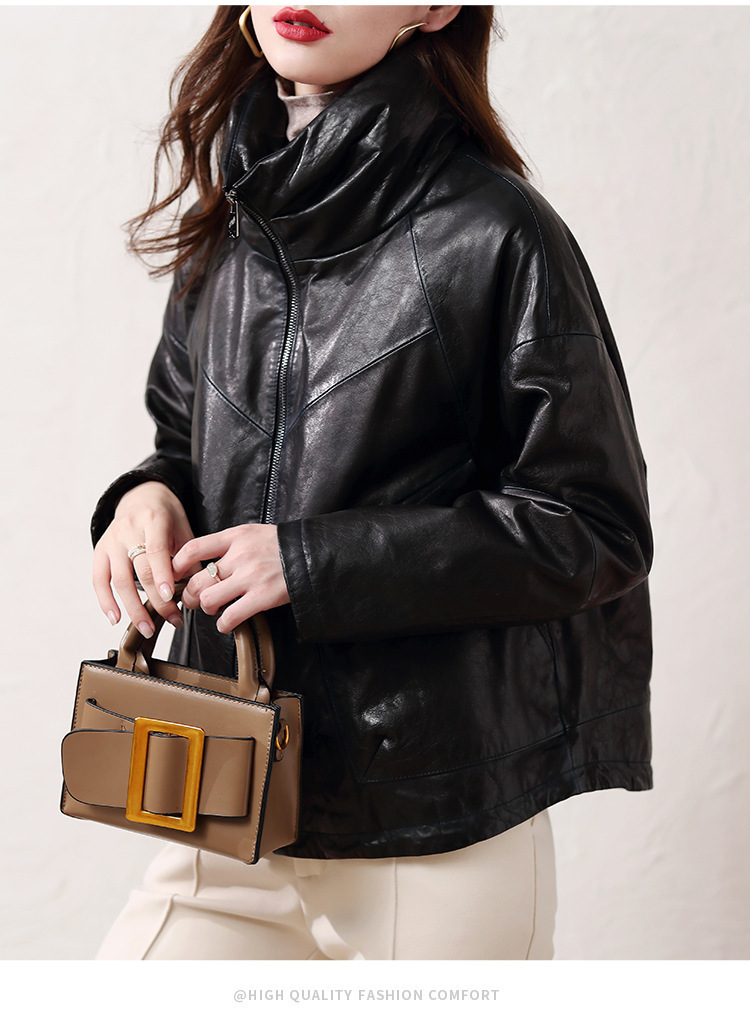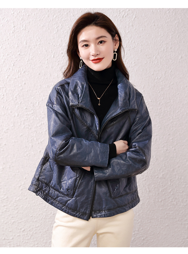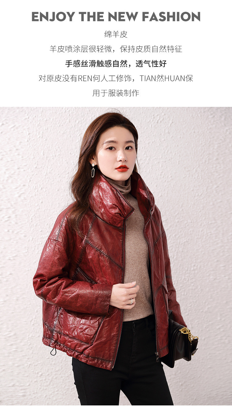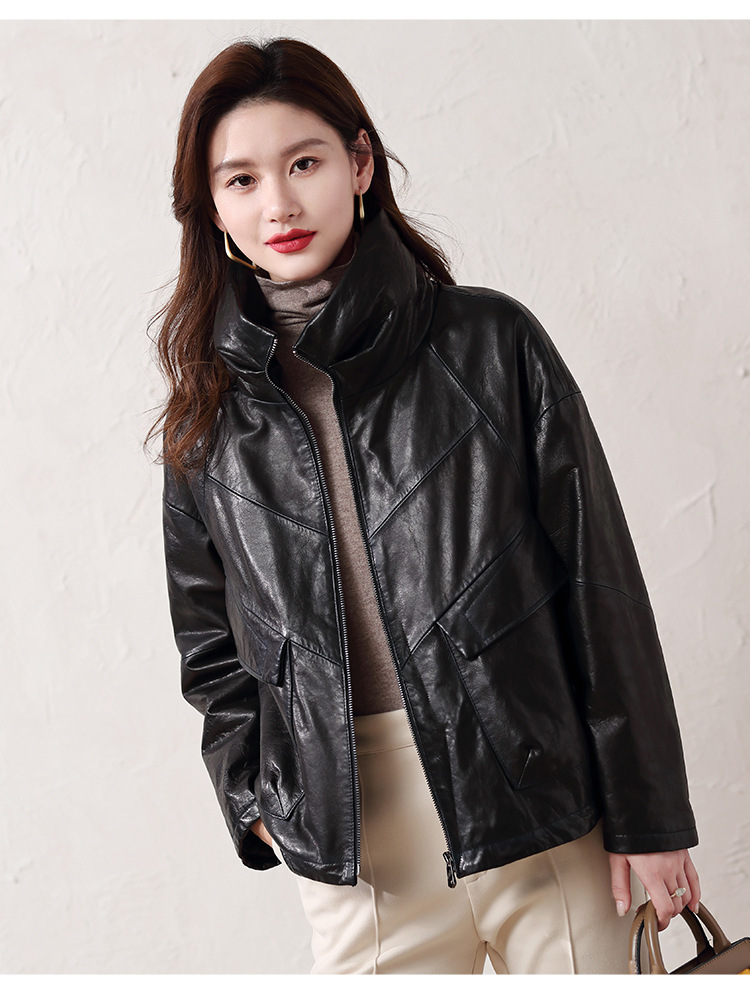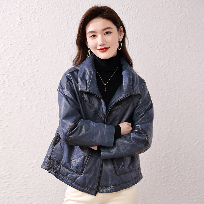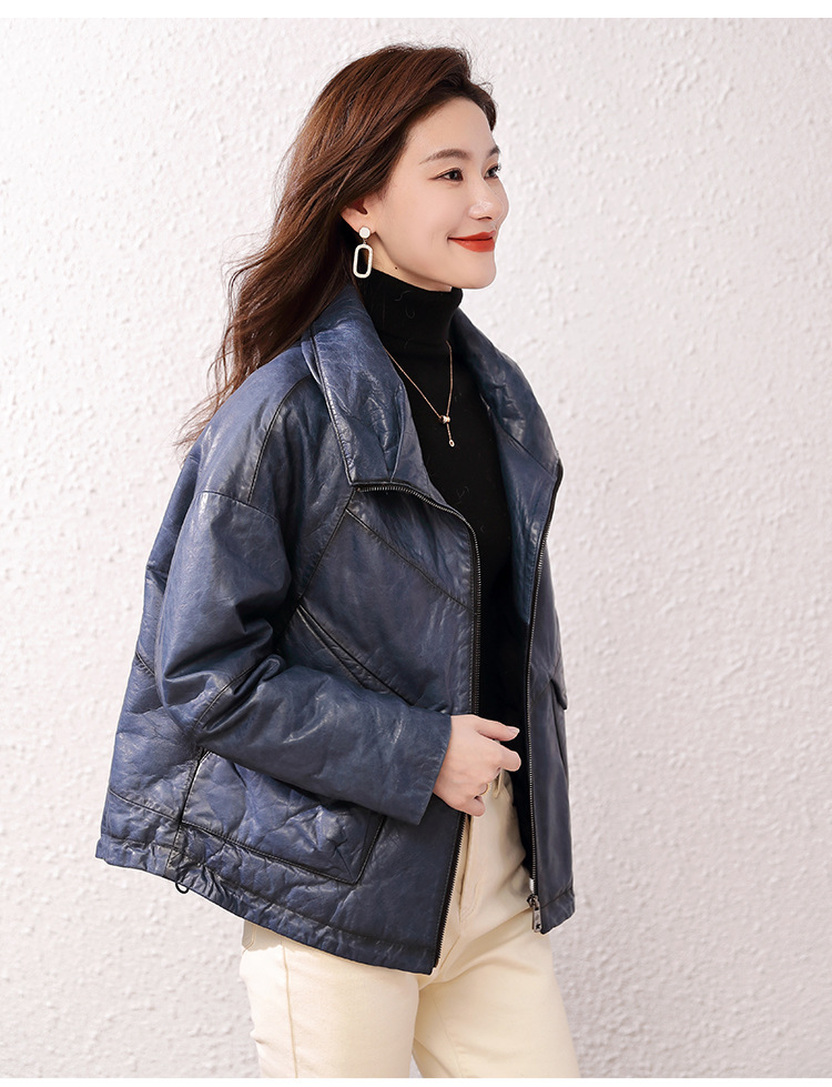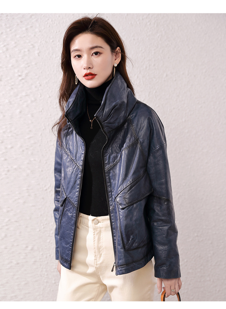 Áo khoác nữ dáng ngắn, rộng rãi, có lớp lông vũ giữ ấm bên trong, phù hợp cho mùa lạnh. Chất liệu da thật bền đẹp, cổ áo thiết kế dựng đứng giúp giữ ấm cổ và tạo phong cách trẻ trung. Sản phẩm dễ dàng phối với nhiều loại trang phục như quần jeans hay váy. Khi sử dụng, lau nhẹ bằng khăn mềm nếu bám bụi và bảo quản nơi khô ráo, thoáng mát. | Tên sản phẩm: Áo Da Nữ Chất Liệu Da Bò Dày Ấm Hàng Mùa Xuân Thu Đông - Thời Trang Nữ | Mã sản phẩm: B5829 - Giá: 7.030.000đ | Mã nhà sản xuất: HADG-G06Hình ảnh sản phẩm