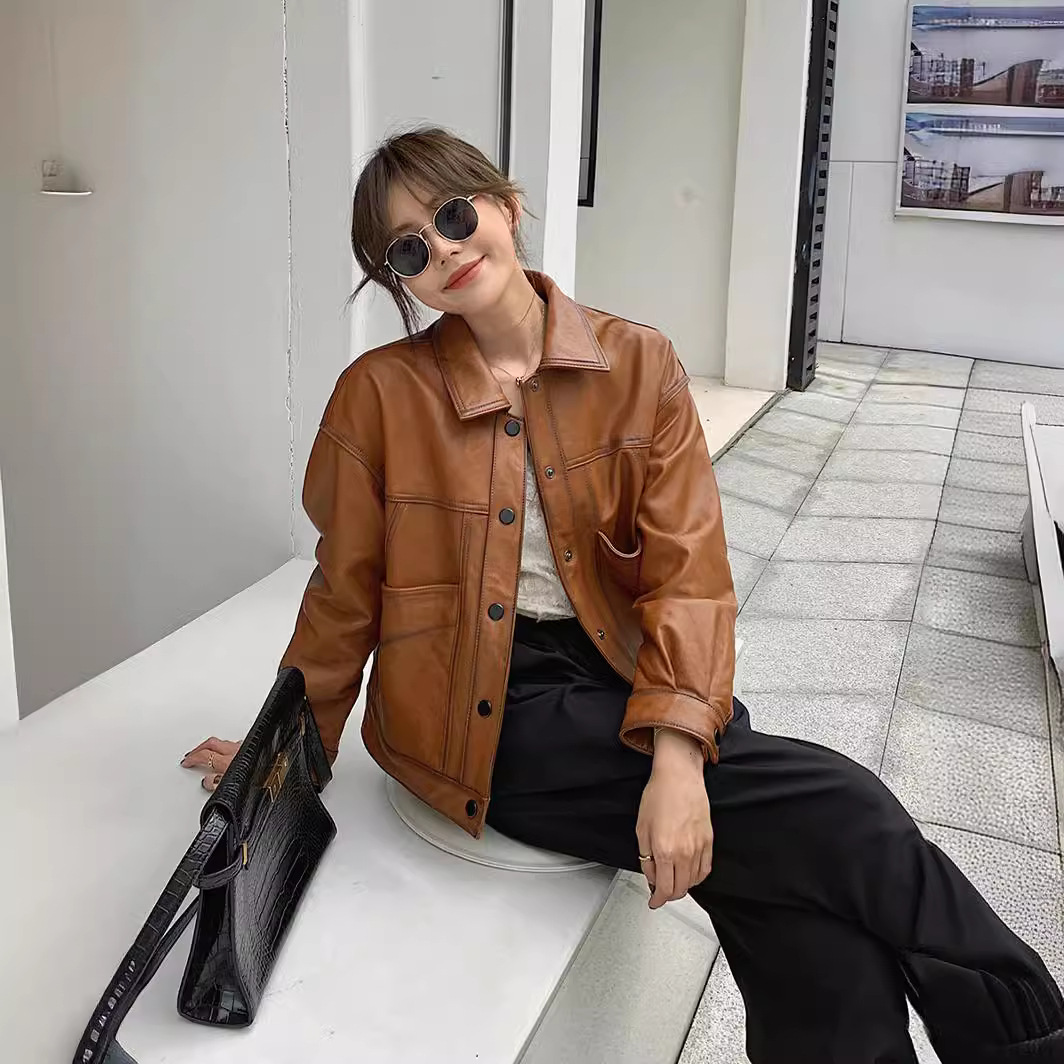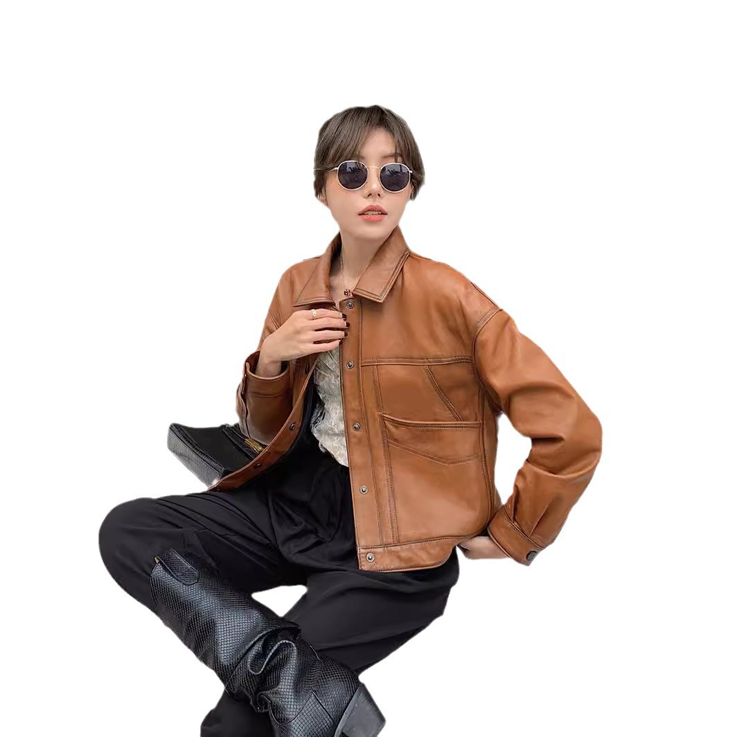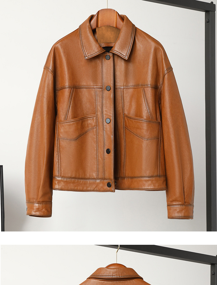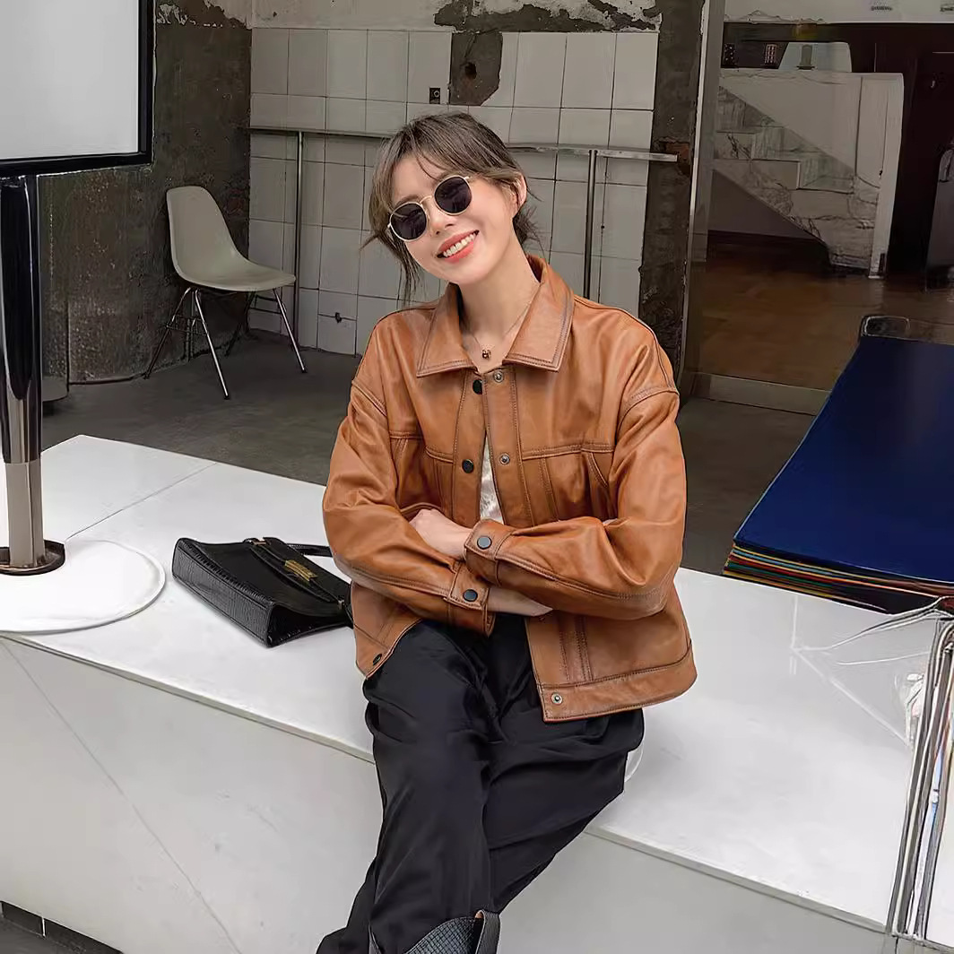 Áo khoác da kiểu dáng ngắn, rộng rãi dành cho nữ, được làm từ chất liệu da cừu mềm mại và bền chắc. Thiết kế phong cách thể thao phóng khoáng, phù hợp mặc trong tiết trời thu đông. Sản phẩm dễ dàng phối cùng nhiều loại trang phục như quần jean hay váy liền. Khi sử dụng, lau nhẹ bằng khăn mềm ẩm để giữ bề mặt sạch sẽ và bảo quản nơi khô ráo. | Tên sản phẩm: Áo Da Nữ Chất Liệu Da Bò Hàng Mùa Xuân Thu Đông - Thời Trang Nữ | Mã sản phẩm: B5835 - Giá: 4.160.000đ | Mã nhà sản xuất: HADG-G06Hình ảnh sản phẩm