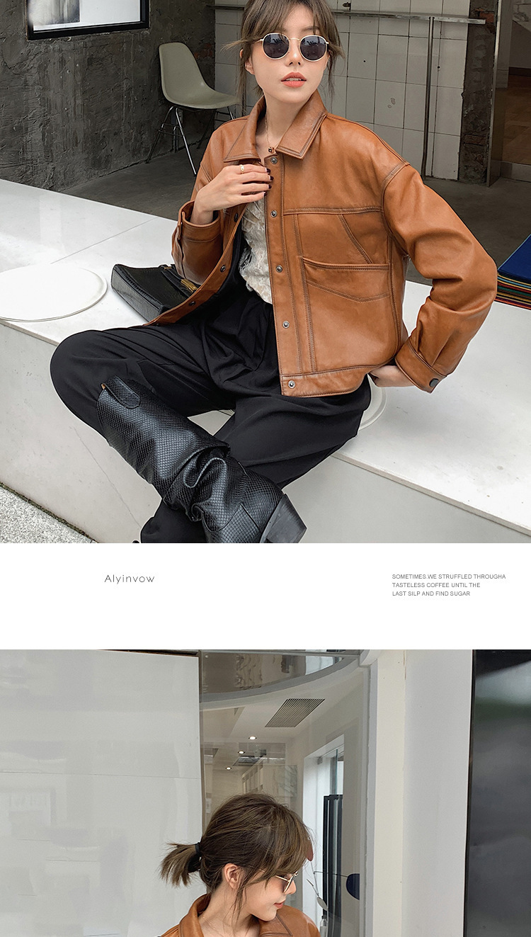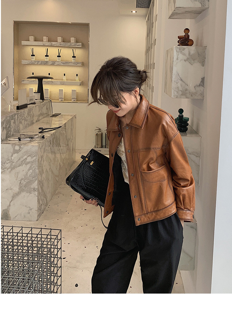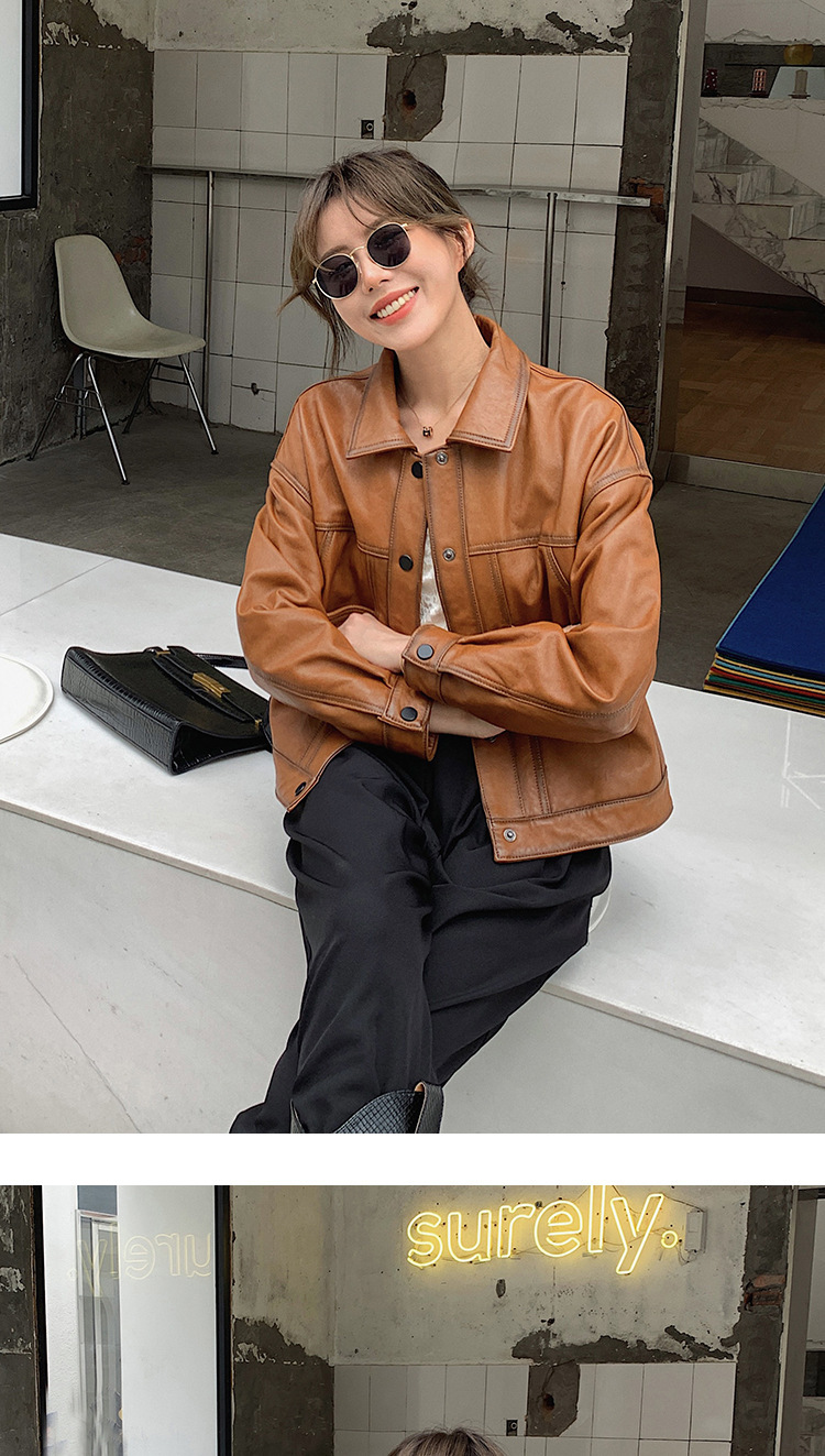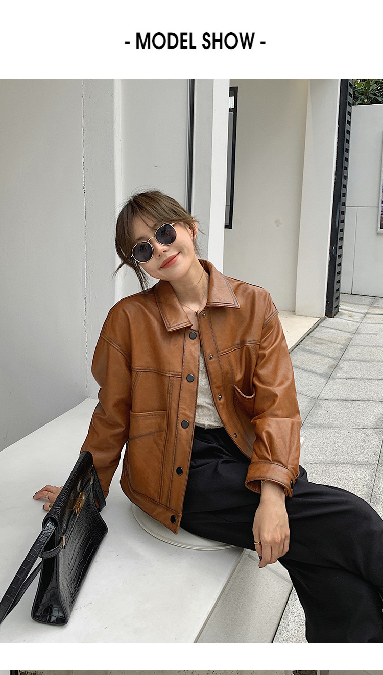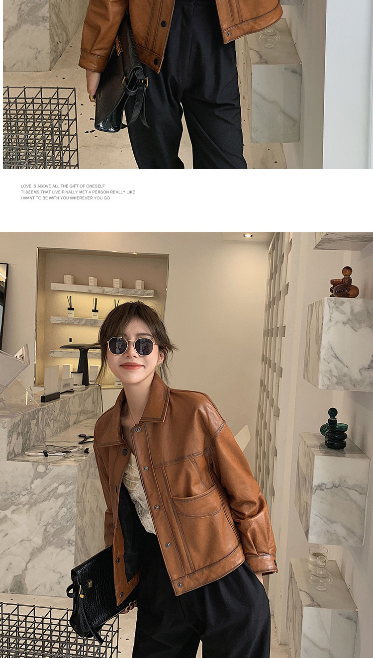 Áo khoác da kiểu dáng ngắn, rộng rãi dành cho nữ, được làm từ chất liệu da cừu mềm mại và bền chắc. Thiết kế phong cách thể thao phóng khoáng, phù hợp mặc trong tiết trời thu đông. Sản phẩm dễ dàng phối cùng nhiều loại trang phục như quần jean hay váy liền. Khi sử dụng, lau nhẹ bằng khăn mềm ẩm để giữ bề mặt sạch sẽ và bảo quản nơi khô ráo. | Tên sản phẩm: Áo Da Nữ Chất Liệu Da Bò Hàng Mùa Xuân Thu Đông - Thời Trang Nữ | Mã sản phẩm: B5835 - Giá: 4.160.000đ | Mã nhà sản xuất: HADG-G06Hình ảnh sản phẩm