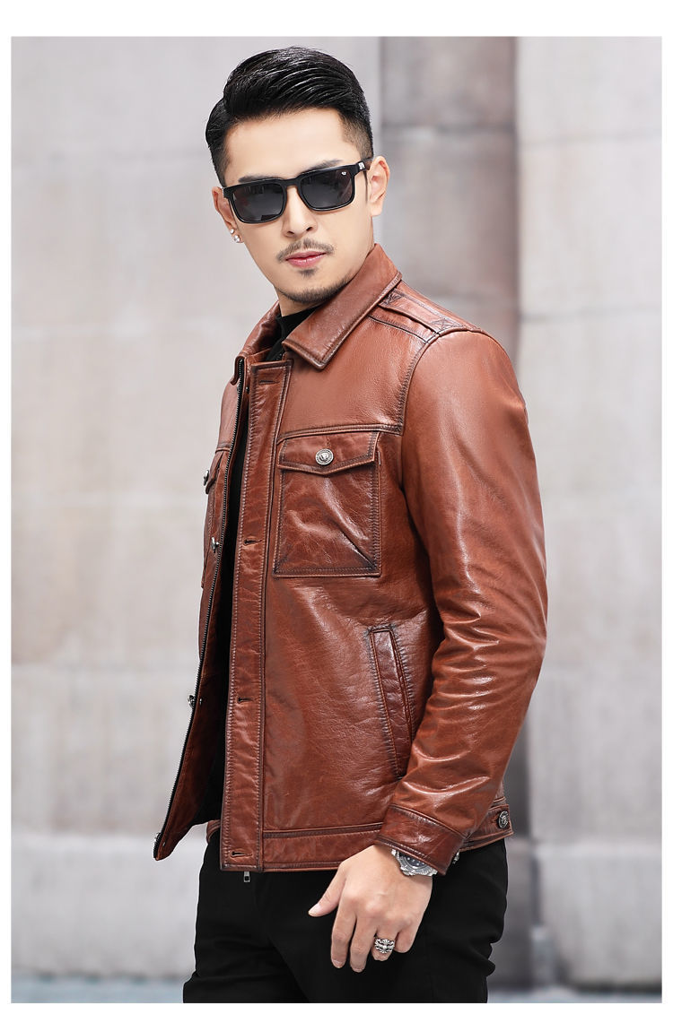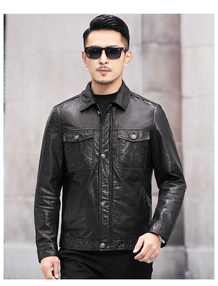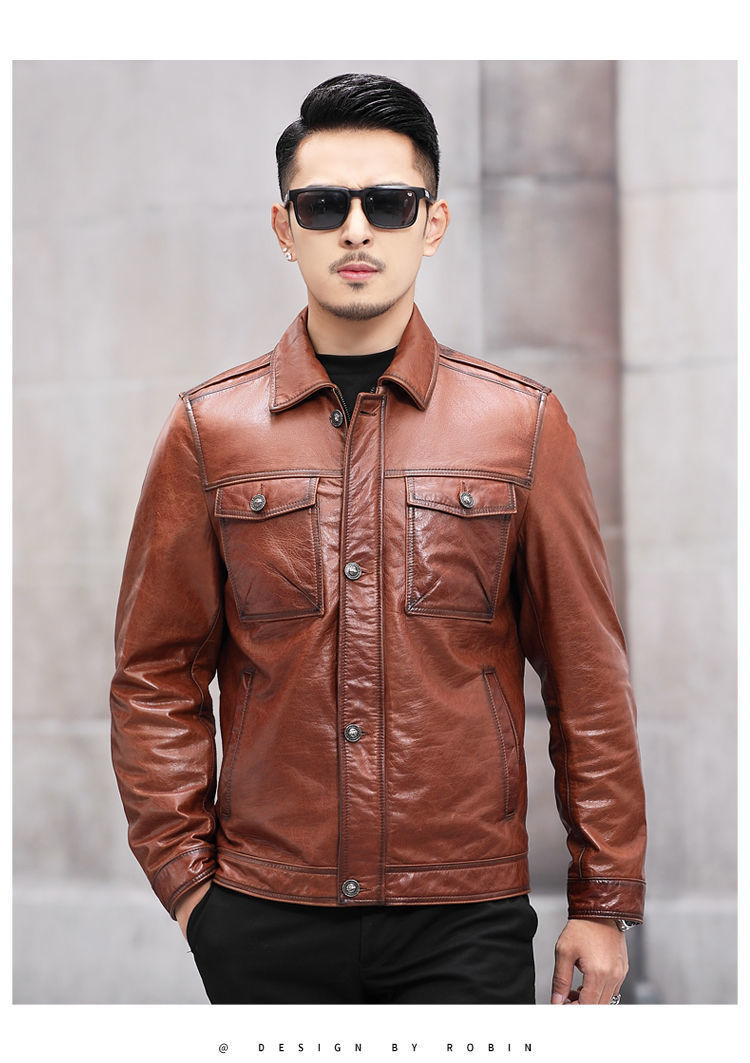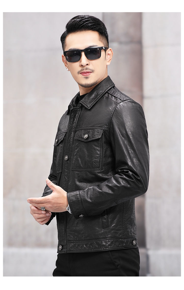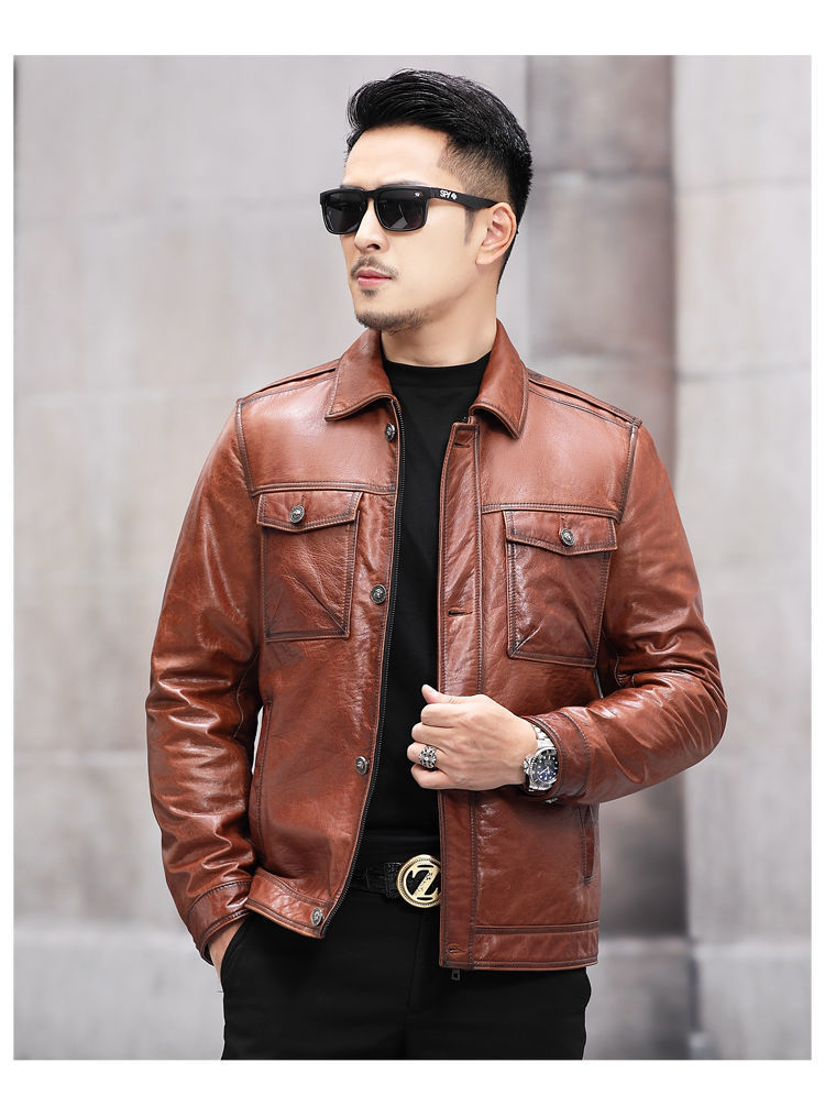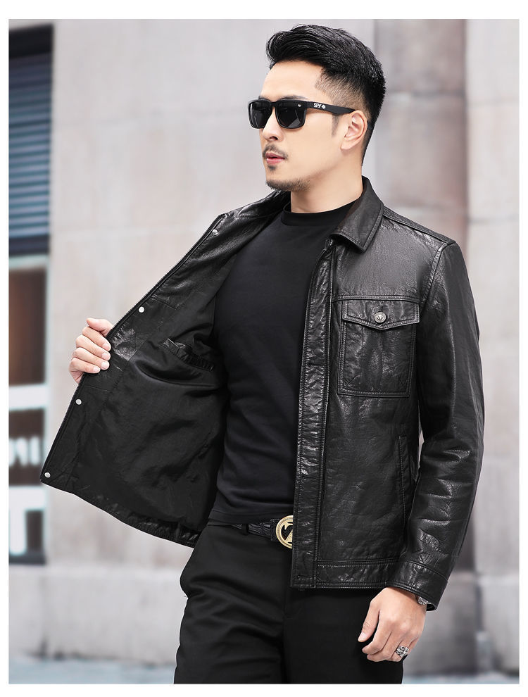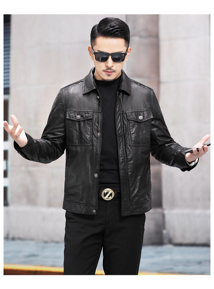 Áo khoác da nam kiểu dáng ngắn, ôm vừa vặn, phù hợp cho mùa thu đông. Sản phẩm được làm từ chất liệu da thật tự nhiên, bền đẹp theo thời gian. Thiết kế trẻ trung với cổ bẻ, kiểu dáng cơ bản dễ dàng phối cùng nhiều trang phục như quần jean hay áo thun. Bạn có thể mặc hằng ngày để giữ ấm và tạo điểm nhấn cho phong cách của mình. | Tên sản phẩm: Áo Da Nam Chất Liệu Da Bò Kín Cổ Hàng Mùa Xuân Thu Đông Phong Cách Trẻ Trung - Thời Trang Nam | Mã sản phẩm: B5853 - Giá: 6.940.000đ | Mã nhà sản xuất: HADG-G06Hình ảnh sản phẩm