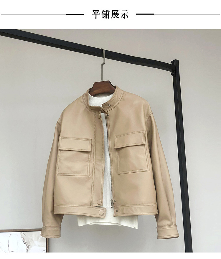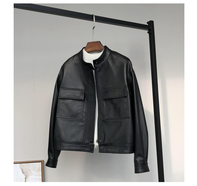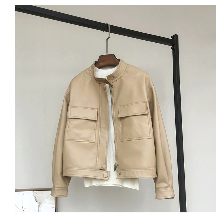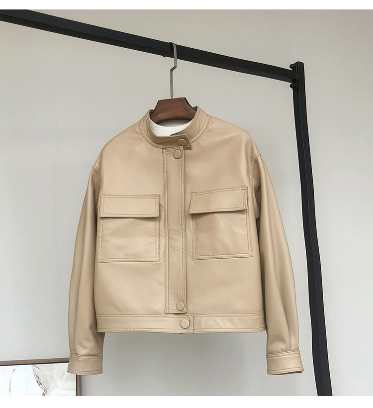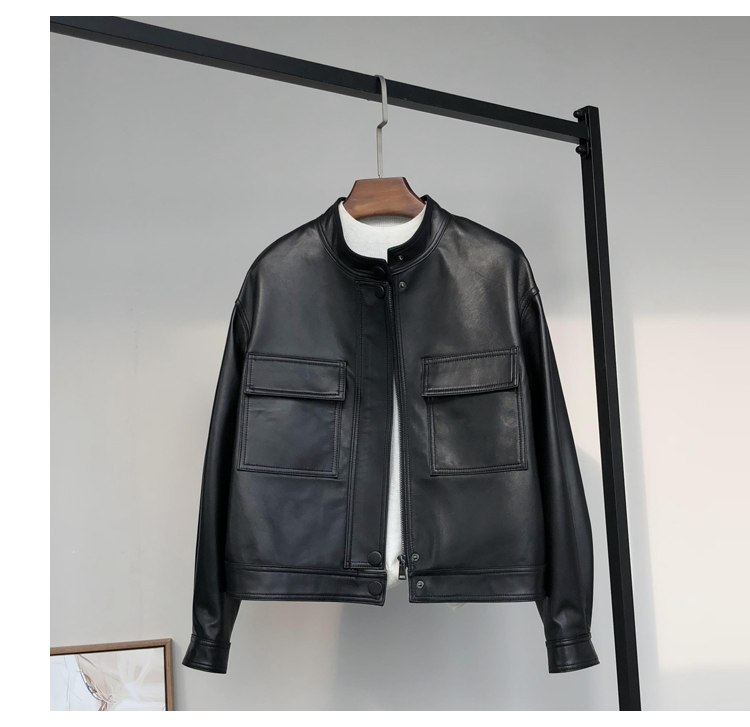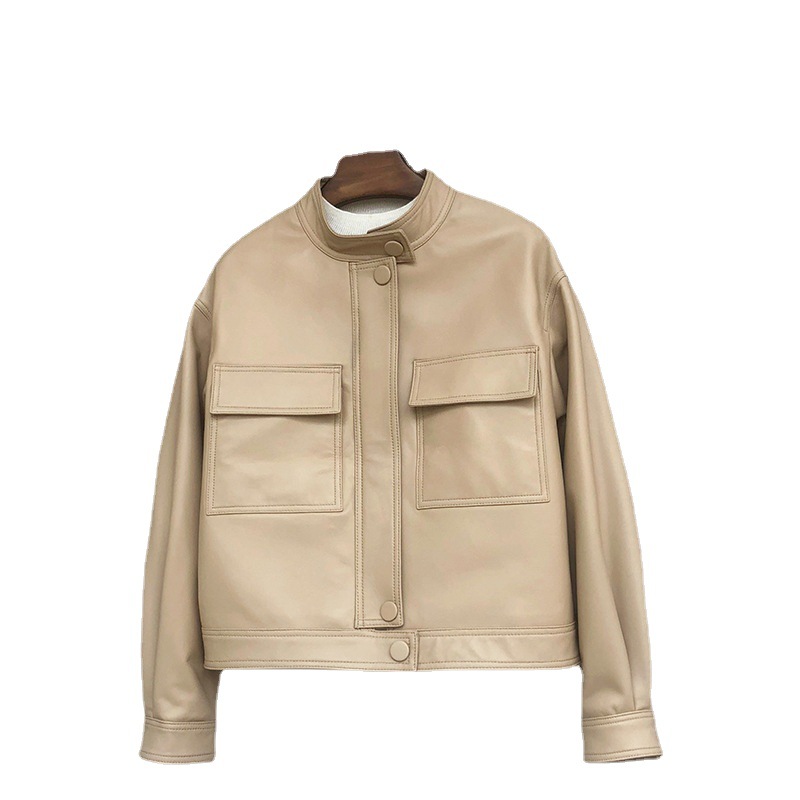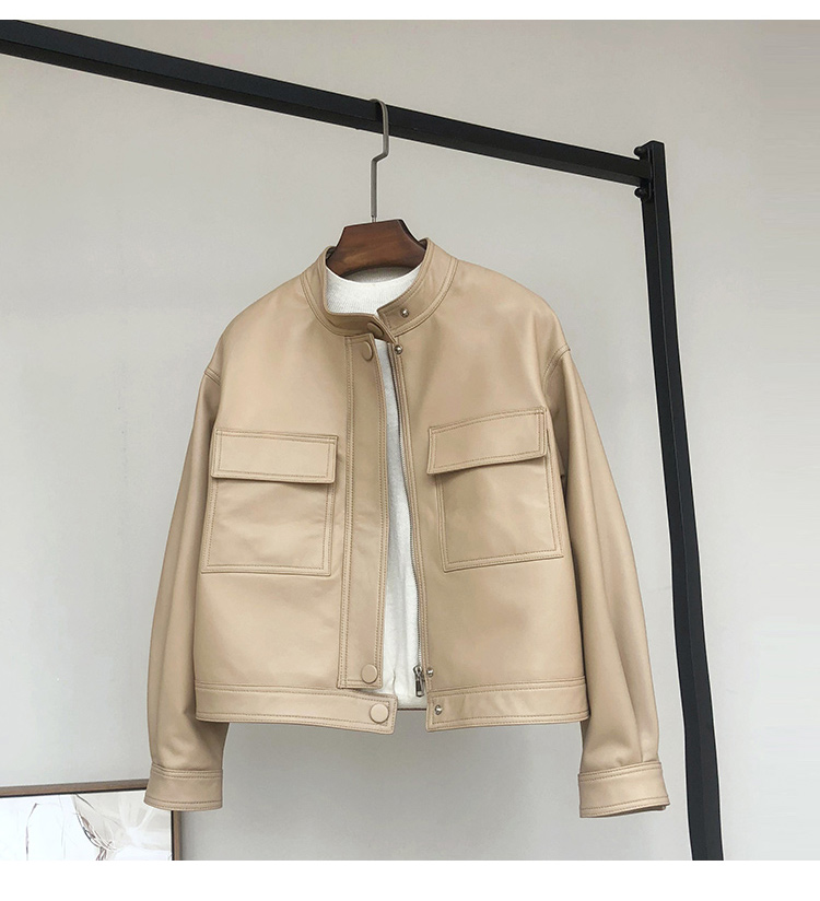 Áo khoác da cổ dựng kiểu dáng ngắn gọn, dành cho nữ. Sản phẩm được làm từ chất liệu da mềm mại, mang đến cảm giác dễ chịu khi mặc. Thiết kế có các túi tiện dụng, vừa tạo điểm nhấn vừa hữu ích. Kiểu áo này phù hợp cho thời tiết mát mẻ. Có thể phối cùng quần jeans và áo thun để tạo vẻ ngoài trẻ trung, năng động. | Tên sản phẩm: Áo Da Nữ Chất Liệu Da Bò Hàng Mùa Xuân Thu Đông - Thời Trang Nữ | Mã sản phẩm: B5856 - Giá: 3.330.000đ | Mã nhà sản xuất: HADG-G06Hình ảnh sản phẩm