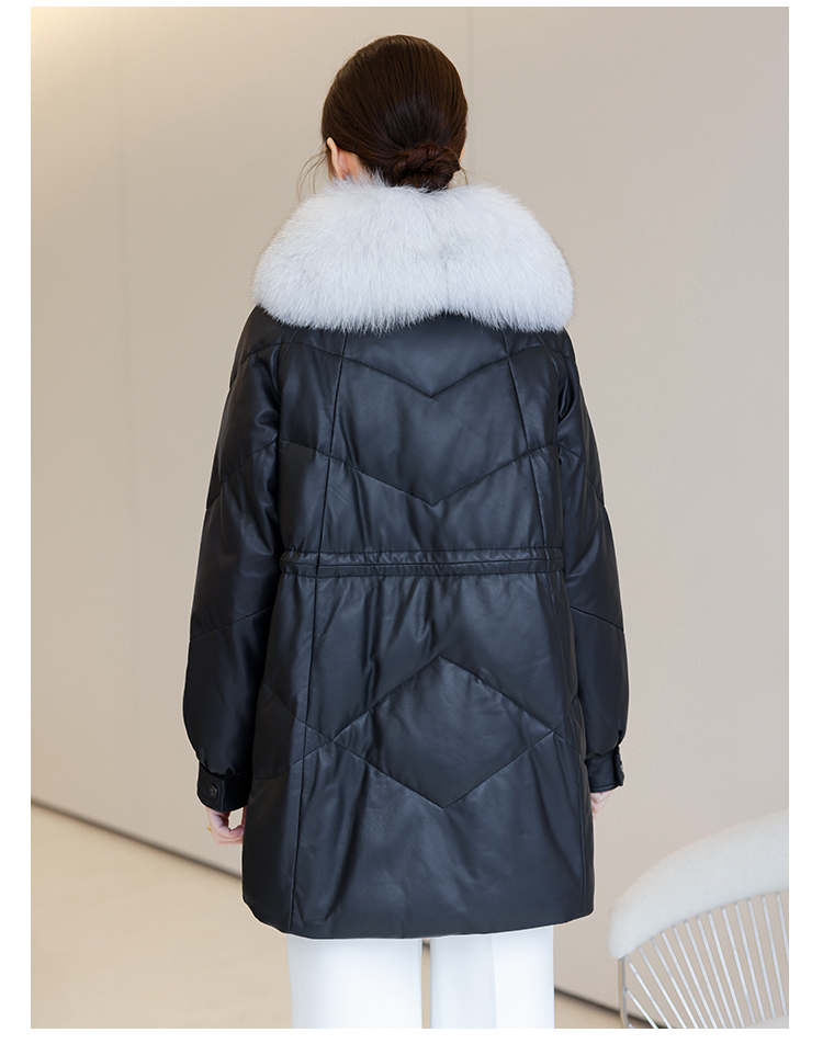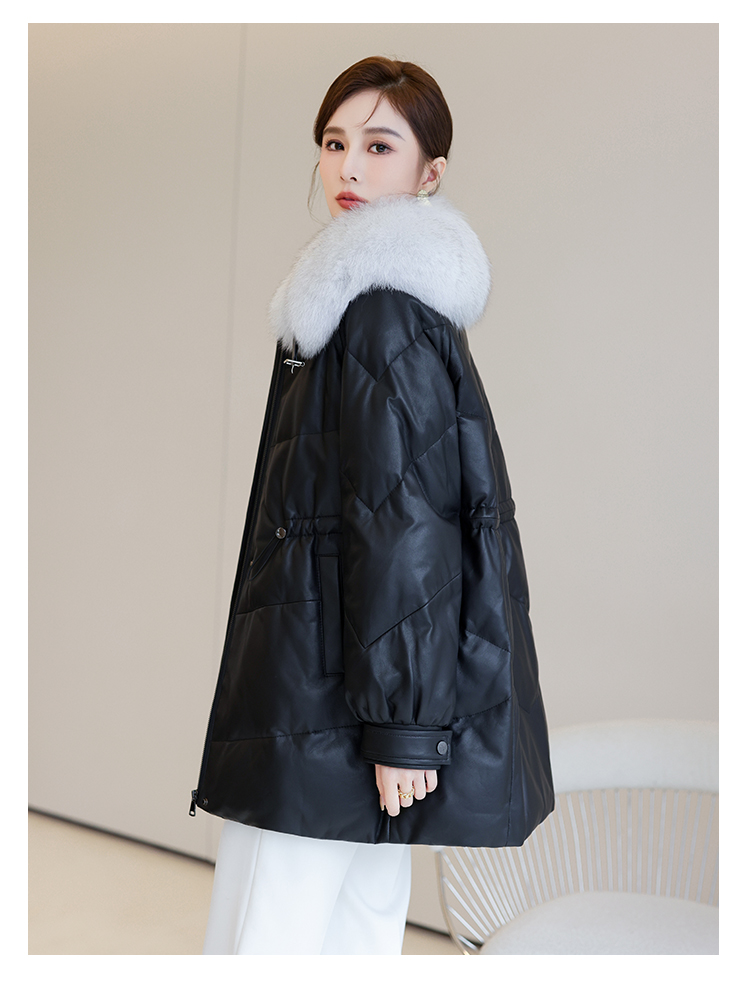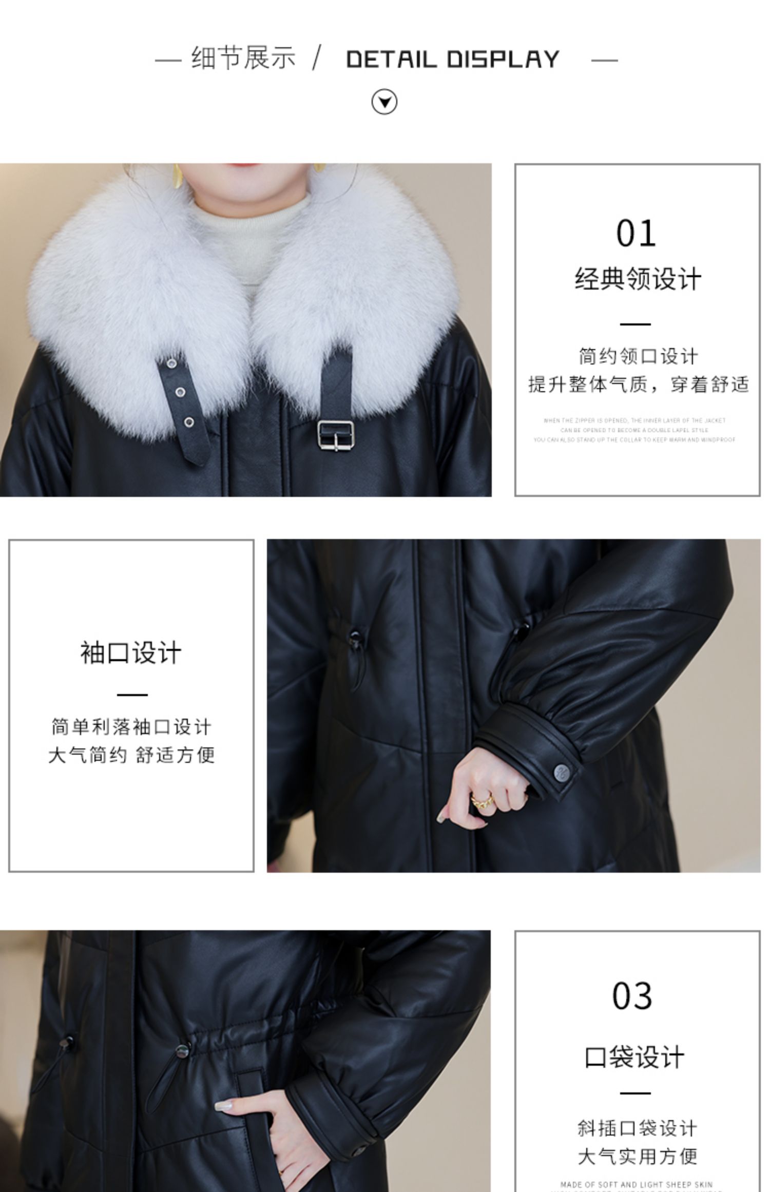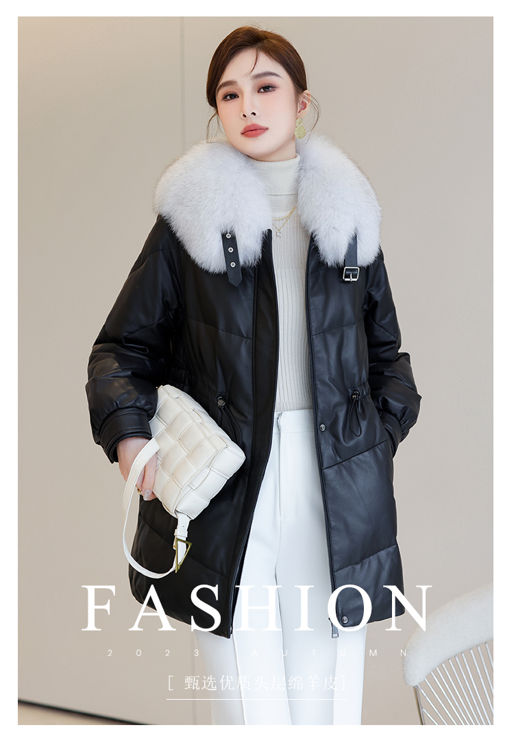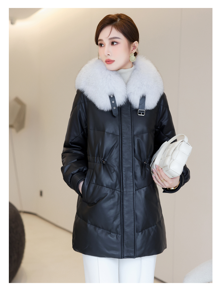 Áo khoác nữ dáng dài, thiết kế dành riêng cho thời tiết lạnh. Chất liệu da thật mềm mại bên ngoài, kết hợp cùng lớp lông vũ giữ ấm bên trong. Phần cổ áo được điểm xuyến bằng lớp lông mềm mại, tăng thêm vẻ duyên dáng và khả năng chắn gió. Kiểu dáng thời trang, dễ dàng phối cùng nhiều trang phục khác nhau. Mặc áo và kéo khóa khi ra ngoài trời lạnh để giữ cơ thể luôn ấm áp. | Tên sản phẩm: Áo Lông Nữ Chất Liệu Da Bò Hàng Mùa Xuân Thu Đông - Thời Trang Nữ | Mã sản phẩm: B5870 - Giá: 7.960.000đ | Mã nhà sản xuất: HADG-G06Hình ảnh sản phẩm