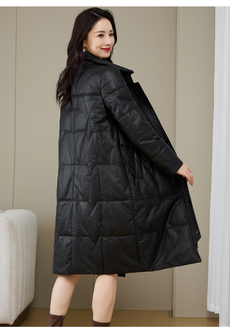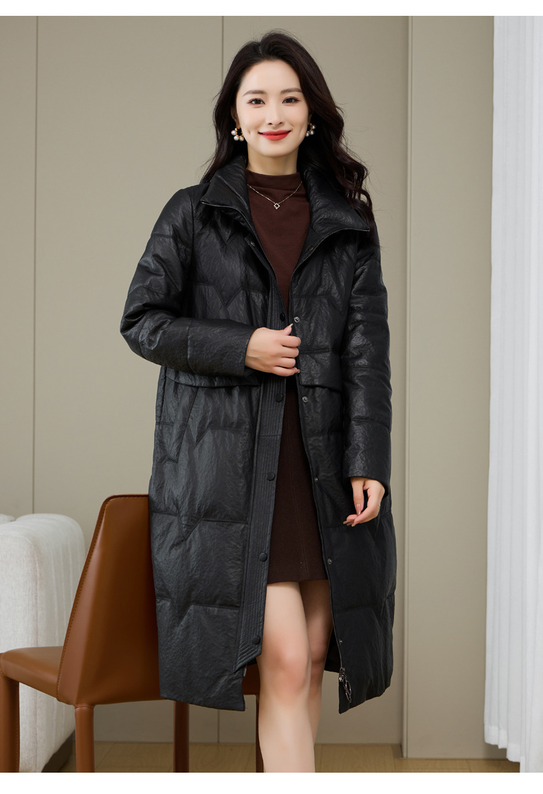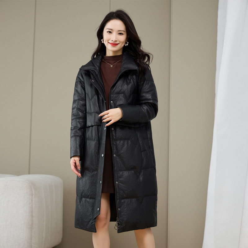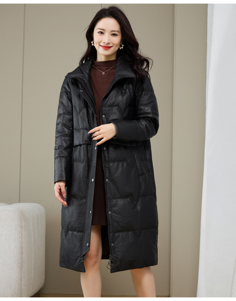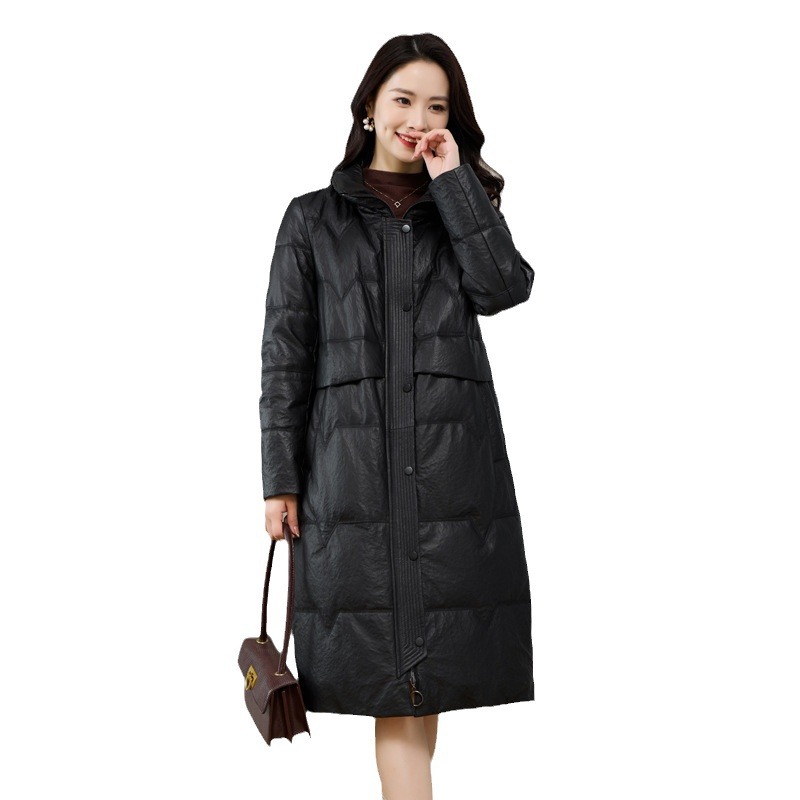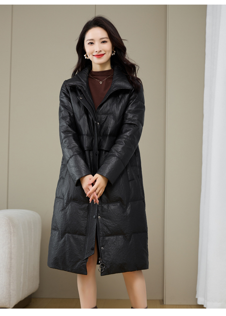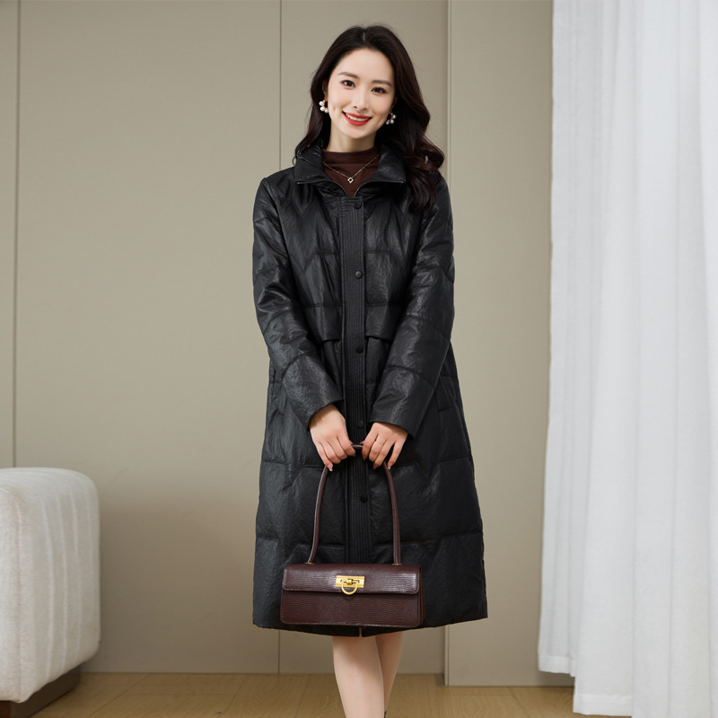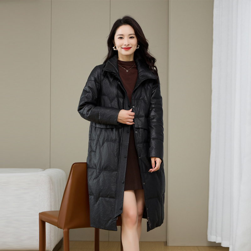 Áo khoác nữ dáng dài, thiết kế dành riêng cho mùa đông. Chất liệu da cừu thật kết hợp cùng lớp lông vũ giữ ấm bên trong, tạo nên chiếc áo vừa bền vừa ấm áp. Bề mặt áo có họa tiết giả đá độc đáo, tăng thêm nét cá tính. Mặc kèm áo thun hoặc áo len bên trong, phù hợp cho những ngày trời lạnh. Dễ dàng phối cùng quần jeans hoặc váy để tạo phong cách đa dạng. | Tên sản phẩm: Áo Da Nữ Chất Liệu Da Bò Hàng Mùa Xuân Thu Đông - Thời Trang Nữ | Mã sản phẩm: B5878 - Giá: 6.940.000đ | Mã nhà sản xuất: HADG-G06Hình ảnh sản phẩm