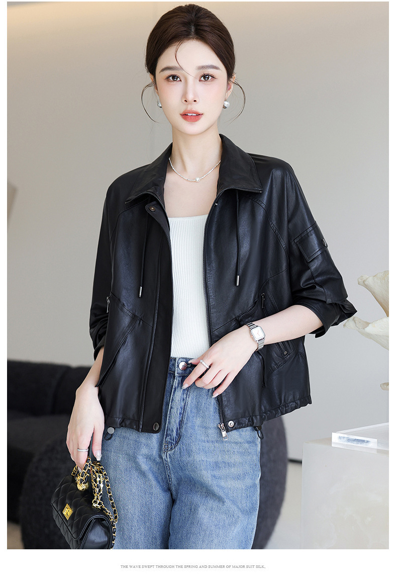 Áo khoác da thật cho nữ, kiểu dáng ngắn gọn gàng. Tay áo thiết kế rộng theo phong cách thoải mái, cổ áo bẻ nhỏ tạo điểm nhấn. Chất liệu da cừu mềm mại, được xử lý kỹ lưỡng cho độ bền tốt. Sản phẩm phù hợp mặc trong nhiều dịp, tạo cảm giác dễ chịu khi mặc. Kết hợp cùng quần jeans hoặc váy đều hợp. Giữ sản phẩm nơi khô ráo, tránh tiếp xúc hóa chất. | Tên sản phẩm: Áo Da Nữ Chất Liệu Da Bò Kín Cổ - Thời Trang Nữ | Mã sản phẩm: B5882 - Giá: 6.290.000đ | Mã nhà sản xuất: HADG-G06Hình ảnh sản phẩm
