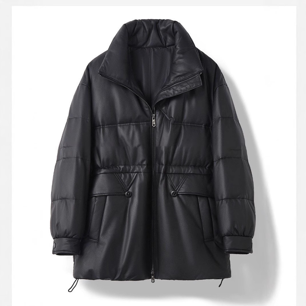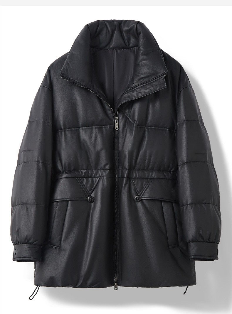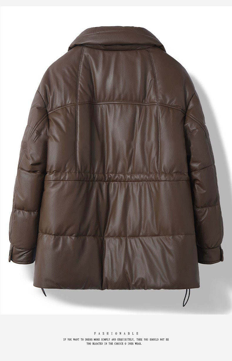 Áo khoác nữ được làm từ chất liệu da thật kết hợp lớp lông vũ giữ ấm bên trong, phù hợp cho mùa đông. Thiết kế có cổ bẻ, dây rút điều chỉnh ở eo giúp tạo dáng ôn cơ thể. Sản phẩm có nhiều kích thước dành cho các bạn nữ có chiều cao khiêm tốn. Mặc kèm áo thun hoặc áo len bên trong để giữ ấm tốt hơn trong tiết trời lạnh giá. | Tên sản phẩm: Áo Da Nữ Chất Liệu Da Bò Big Size Ngoại Cỡ Kín Cổ Hàng Mùa Xuân Thu Đông - Thời Trang Nữ | Mã sản phẩm: B5887 - Giá: 7.030.000đ | Mã nhà sản xuất: HADG-G06Hình ảnh sản phẩm