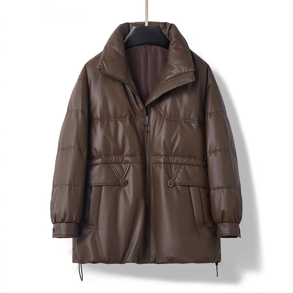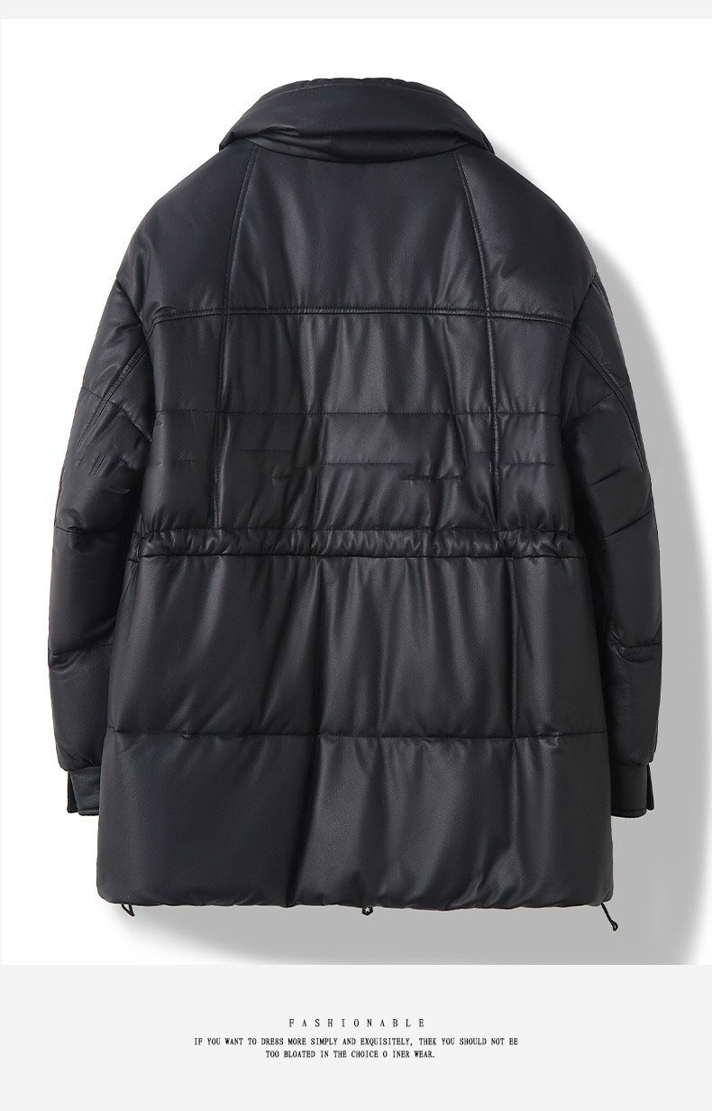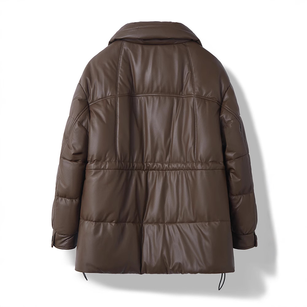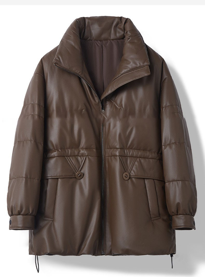 Áo khoác nữ được làm từ chất liệu da thật kết hợp lớp lông vũ giữ ấm bên trong, phù hợp cho mùa đông. Thiết kế có cổ bẻ, dây rút điều chỉnh ở eo giúp tạo dáng ôn cơ thể. Sản phẩm có nhiều kích thước dành cho các bạn nữ có chiều cao khiêm tốn. Mặc kèm áo thun hoặc áo len bên trong để giữ ấm tốt hơn trong tiết trời lạnh giá. | Tên sản phẩm: Áo Da Nữ Chất Liệu Da Bò Big Size Ngoại Cỡ Kín Cổ Hàng Mùa Xuân Thu Đông - Thời Trang Nữ | Mã sản phẩm: B5887 - Giá: 7.030.000đ | Mã nhà sản xuất: HADG-G06Hình ảnh sản phẩm