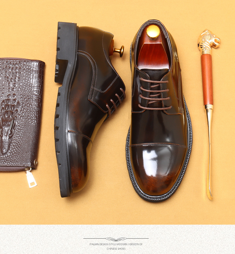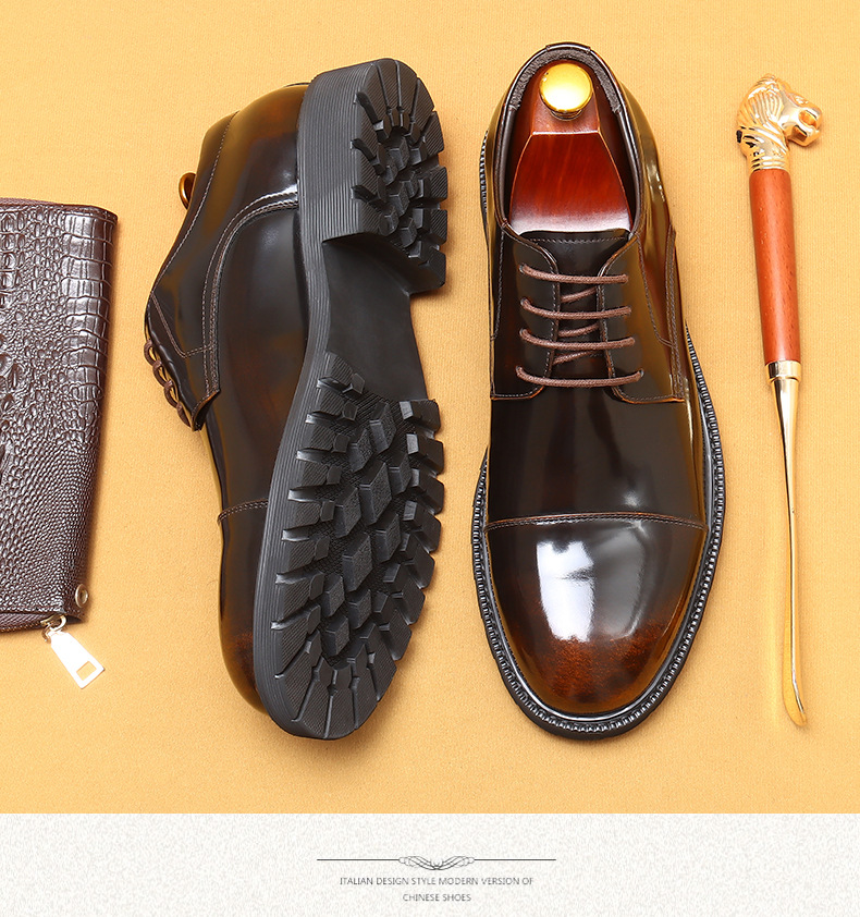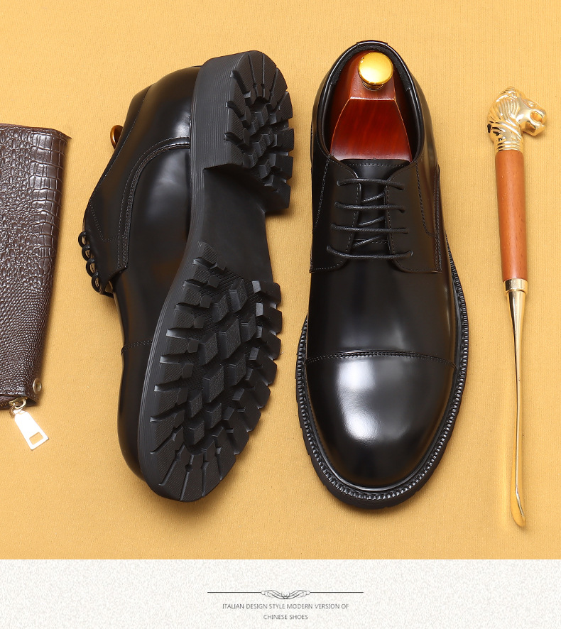 Giày da thật dành cho nam, phù hợp đi làm và dạo phố. Kiểu dáng cổ điển với phần mũi tròn và đế dày, tạo vẻ lịch sự và chắc chắn. Mặt giày bóng đẹp, bên trong lót da mềm mại mang lại cảm giác dễ chịu khi mang. Bạn có thể kết hợp cùng quần âu hoặc quần kaki để có phong cách chỉn chu. Sử dụng chất liệu vệ sinh giày chuyên dụng để giữ mặt giày luôn sáng bóng. | Tên sản phẩm: Giày Da Nam Chất Liệu Da Bò Mũi Tròn Đế Cao - Giày Dép Nam | Mã sản phẩm: B5892 - Giá: 2.780.000đ | Mã nhà sản xuất: SHERAW-G06Hình ảnh sản phẩm