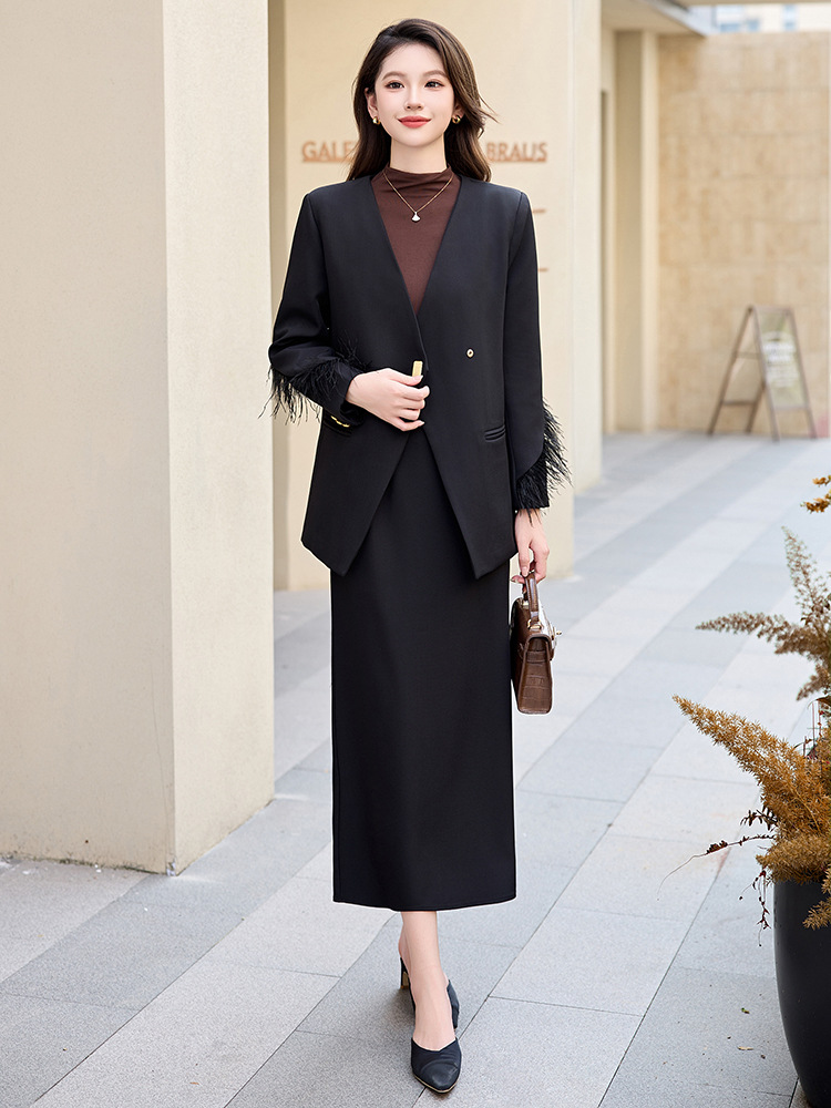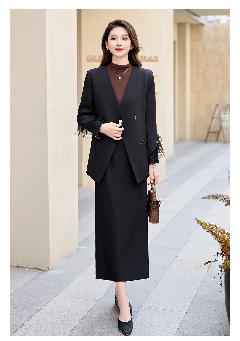 Bộ trang phục này gồm áo khoác kiểu và chân váy ngắn, mang đến vẻ ngoại hình thanh lịch và nhẹ nhàng. Tay áo được thiết kế điểm nhấn với những đường viền tua rua tinh tế, tạo nên sự mềm mại và uyển chuyển. Kiểu dáng phù hợp cho những dịp gặp mặt thân mật hoặc làm việc tại văn phòng. Có thể mặc nguyên bộ để đồng bộ hoặc phối cùng các loại áo, quần khác nhau. Giúp người mặc tự tin và thoải mái trong suốt ngày dài. | Tên sản phẩm: Áo Vest Nữ Vest Cả Bộ 2 Món Hàng Mùa Xuân Thu Đông - Thời Trang Nữ | Mã sản phẩm: B5915 - Giá: 2.370.000đ | Mã nhà sản xuất: HADG-G05Hình ảnh sản phẩm
