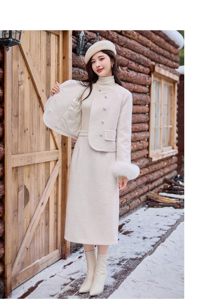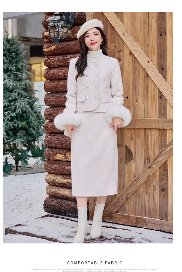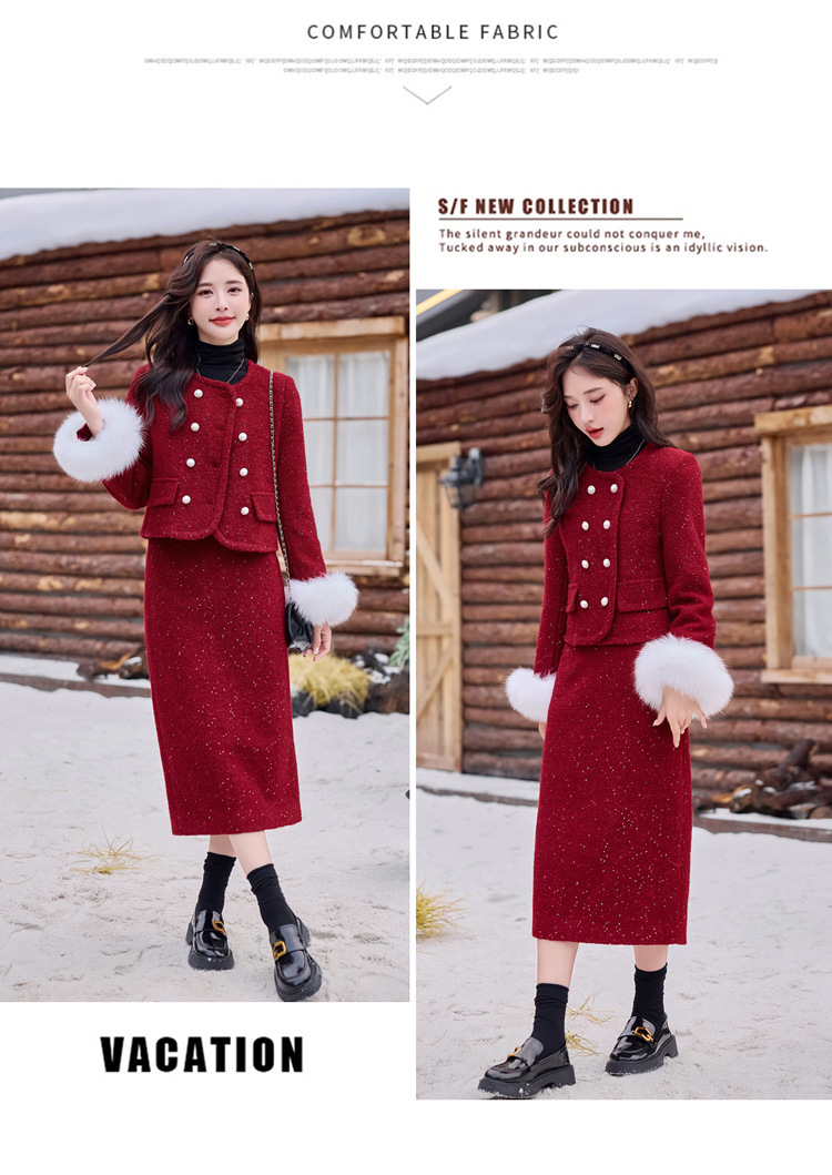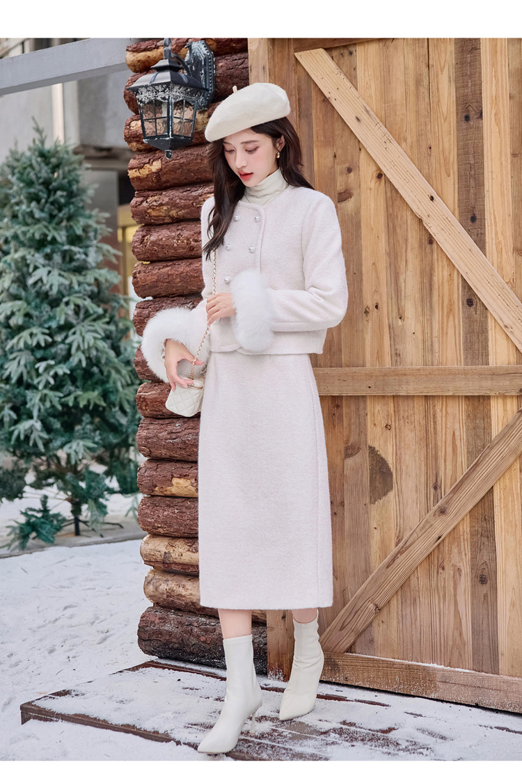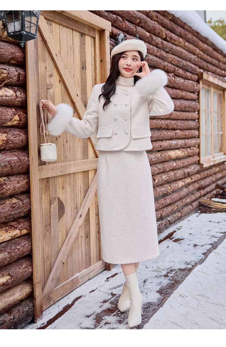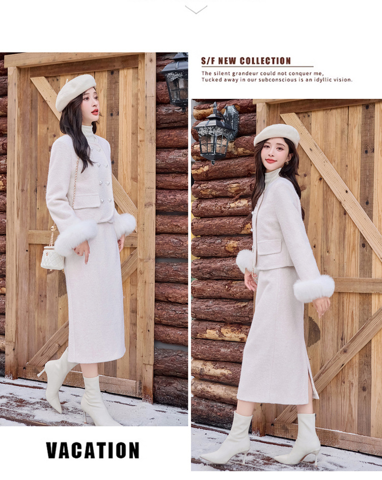 Bộ trang phục hai mảnh này là lựa chọn ấm áp cho mùa đông. Áo khoác được lót lớp bông vũ bên trong, giữ nhiệt tốt, phần cổ tay có điểm nhấn bằng lông cáo mềm mại. Chiếc váy xếp ly đi kèm tạo nên set đồ hài hòa, thanh lịch. Bạn có thể mặc bộ này để đi làm, dự tiệc hay gặp mặt bạn bè. Phối cùng giày cao gót và túi xách nhỏ để trông chỉn chu hơn. | Tên sản phẩm: Áo Khoác Nữ Cả Bộ 2 Món Hàng Mùa Xuân Thu Đông - Thời Trang Nữ | Mã sản phẩm: B5920 - Giá: 3.750.000đ | Mã nhà sản xuất: HADG-G06Hình ảnh sản phẩm