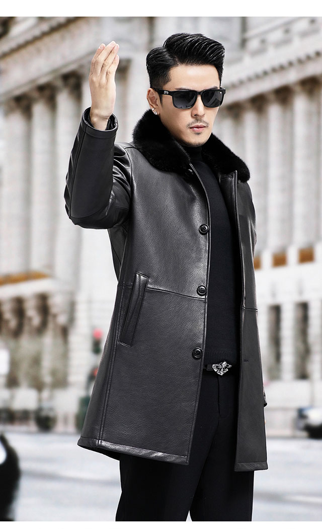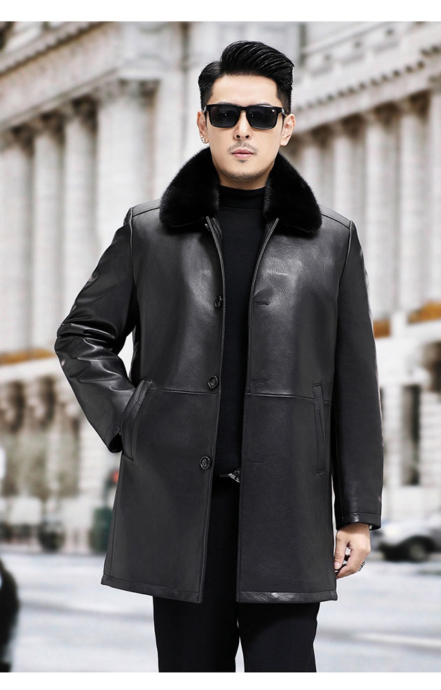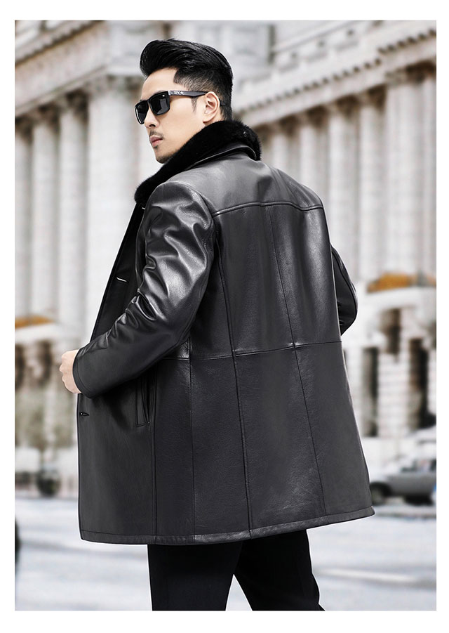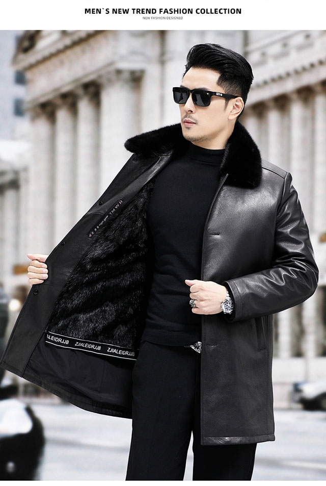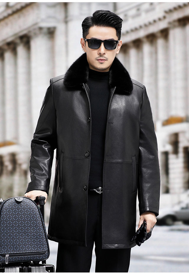 Áo khoác dành cho nam, thiết kế dáng dài vừa phải. Chất liệu chính từ da dê thật, bền chắc. Bên trong là lớp lót tách rời được làm từ bộ lông của loài chồn hươu, giữ ấm rất tốt. Cổ áo kiểu bẻ, phong cách nam tính. Có thể tháo rời phần lót trong để mua thích hợp cho nhiều thời tiết. Mặc kèm áo thun hoặc áo len bên trong để giữ ấm tốt hơn trong ngày lạnh. | Tên sản phẩm: Áo Da Nam Chất Liệu Da Bò Kín Cổ - Thời Trang Nam | Mã sản phẩm: B5927 - Giá: 21.090.000đ | Mã nhà sản xuất: HADG-G06Hình ảnh sản phẩm