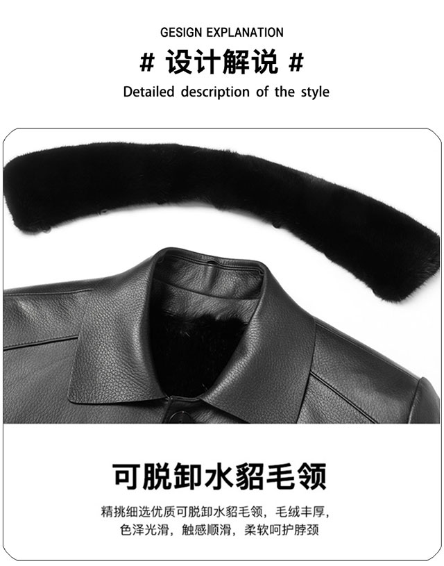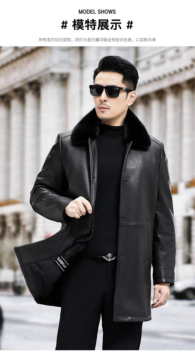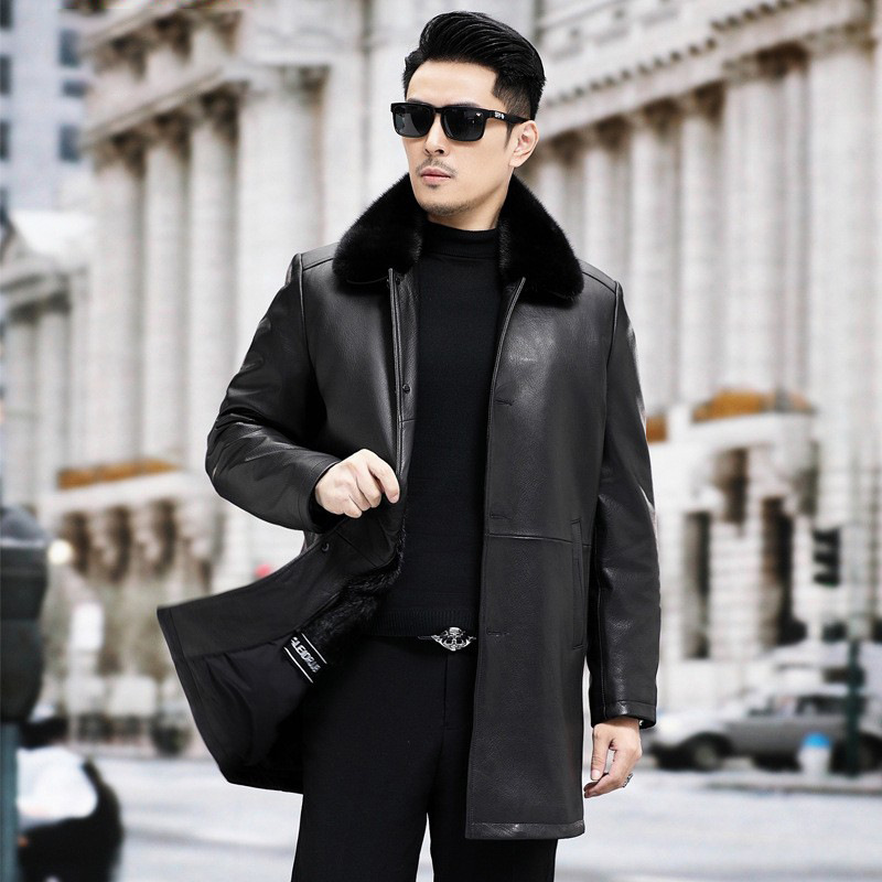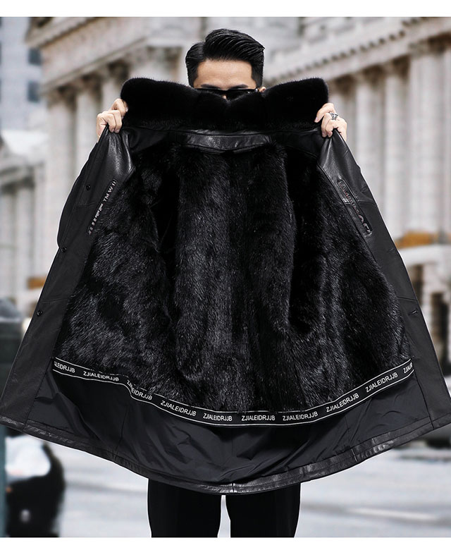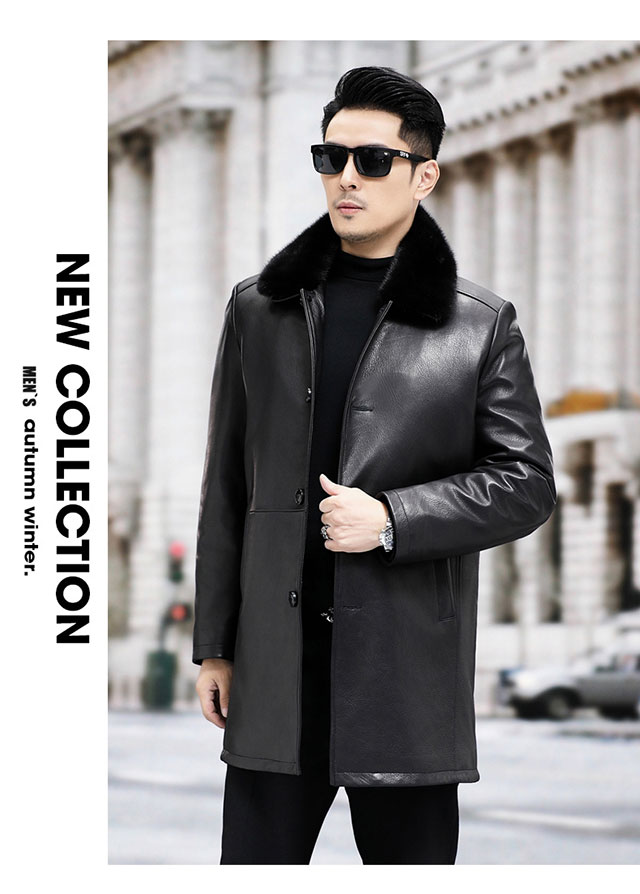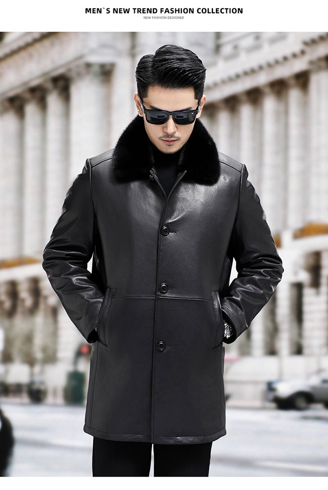 Áo khoác dành cho nam, thiết kế dáng dài vừa phải. Chất liệu chính từ da dê thật, bền chắc. Bên trong là lớp lót tách rời được làm từ bộ lông của loài chồn hươu, giữ ấm rất tốt. Cổ áo kiểu bẻ, phong cách nam tính. Có thể tháo rời phần lót trong để mua thích hợp cho nhiều thời tiết. Mặc kèm áo thun hoặc áo len bên trong để giữ ấm tốt hơn trong ngày lạnh. | Tên sản phẩm: Áo Da Nam Chất Liệu Da Bò Kín Cổ - Thời Trang Nam | Mã sản phẩm: B5927 - Giá: 21.090.000đ | Mã nhà sản xuất: HADG-G06Hình ảnh sản phẩm