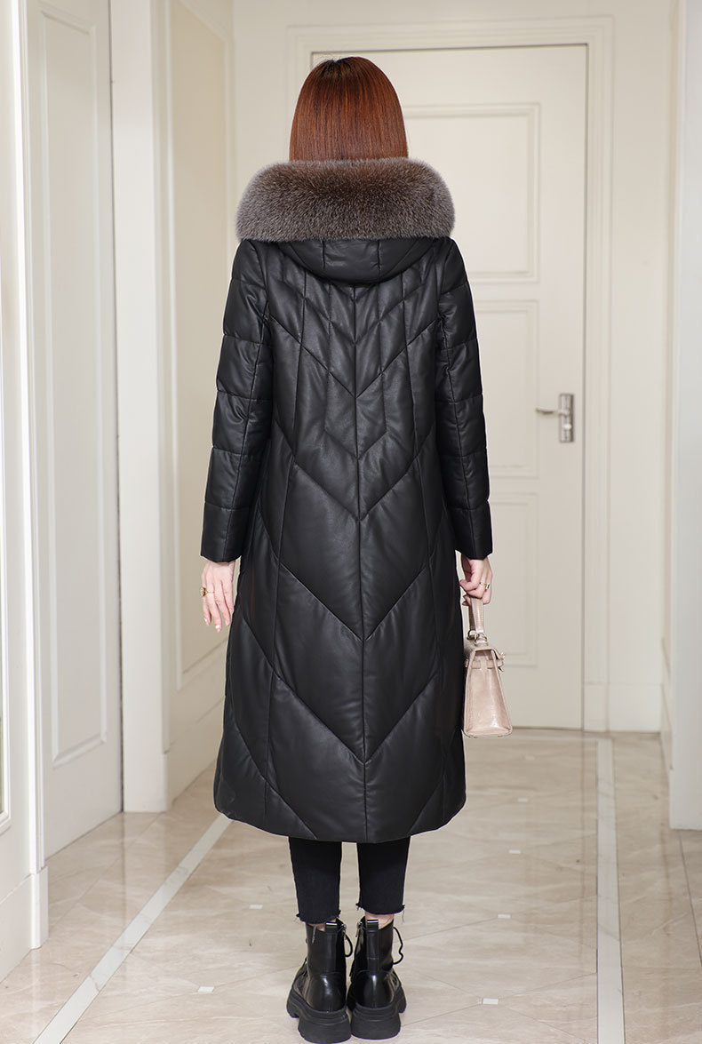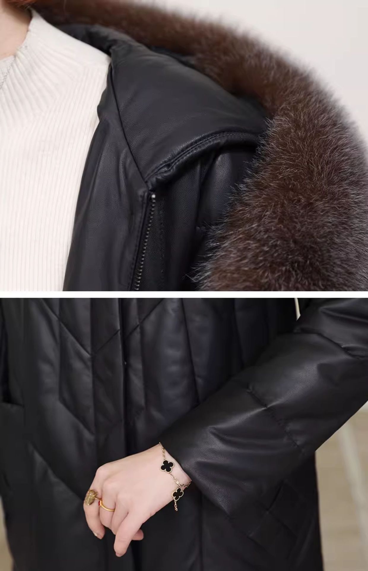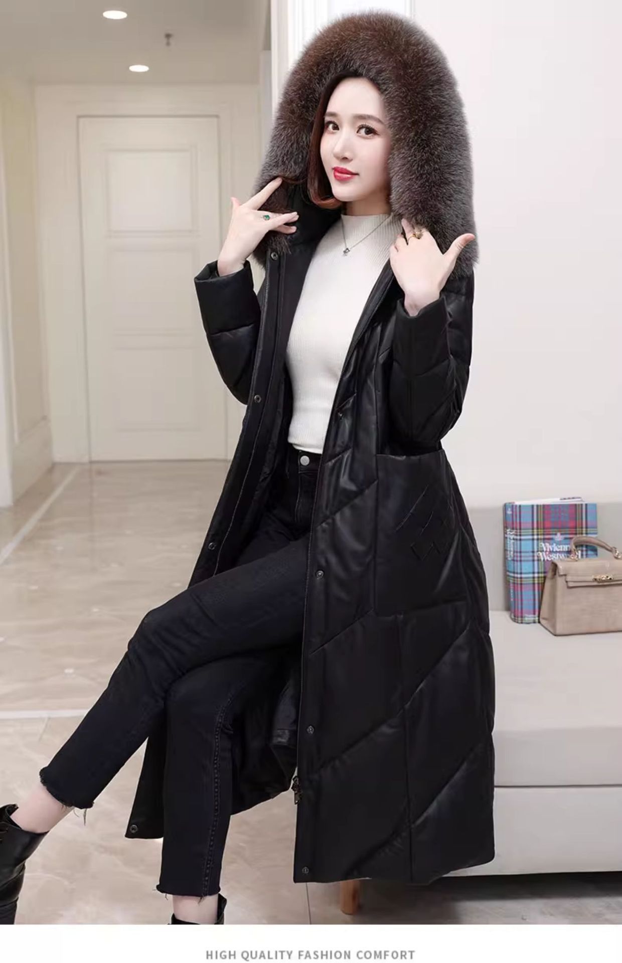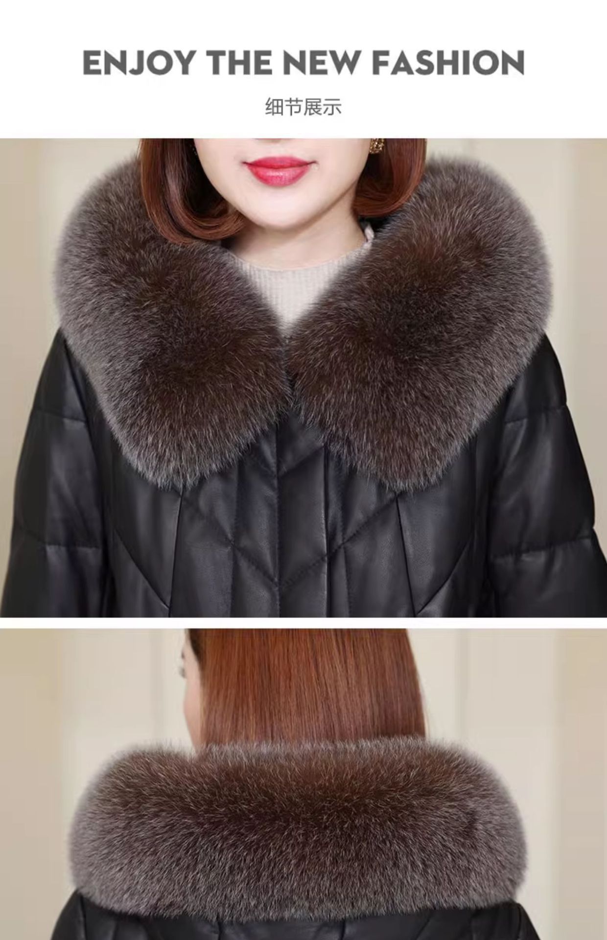 Áo khoác dành cho nữ, dáng dài rộng rãi, có size lớn. Chất liệu da thật mềm mại kết hợp với lớp lông vũ bên trong giữ ấm tốt. Phần cổ áo được viền lông cáo tự nhiên, tăng thêm vẻ đẹp . Sản phẩm mặc ấm vào mùa đông, phù hợp khi đi làm hoặc dạo phố. Mặc kèm áo thun hoặc áo len bên trong để tạo sự thoải mái. | Tên sản phẩm: Áo Da Nữ Chất Liệu Da Bò Big Size Ngoại Cỡ - Thời Trang Nữ | Mã sản phẩm: B5940 - Giá: 8.790.000đ | Mã nhà sản xuất: HADG-G06Hình ảnh sản phẩm