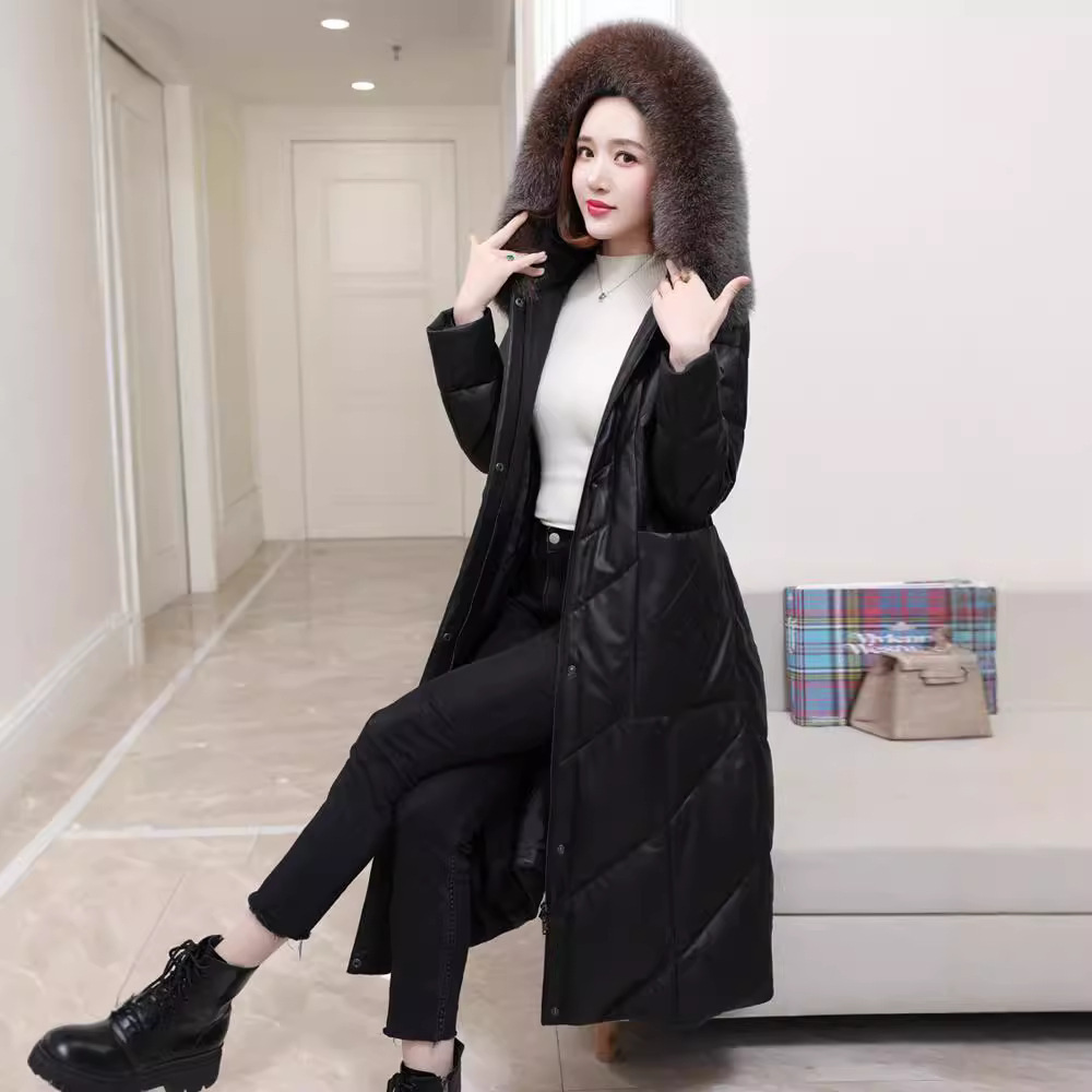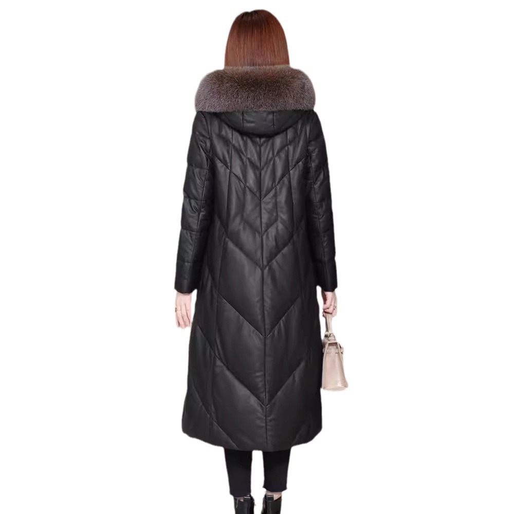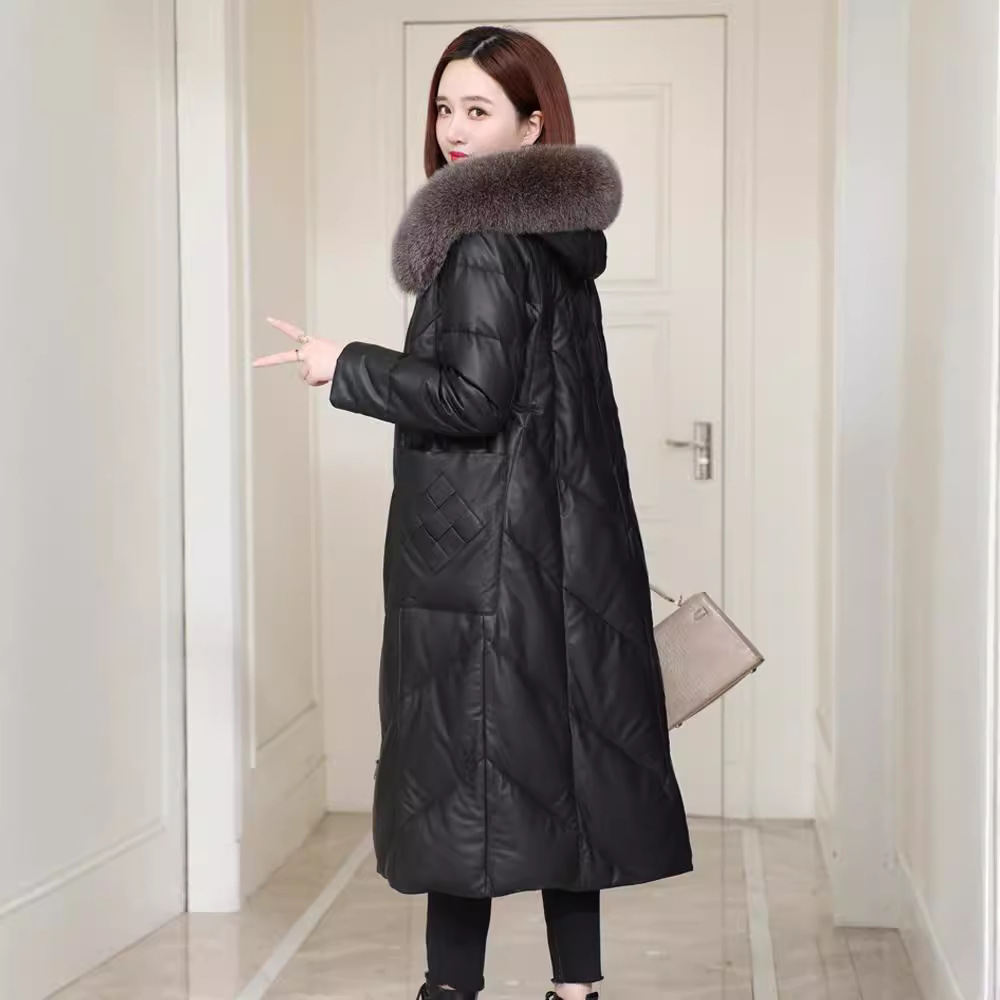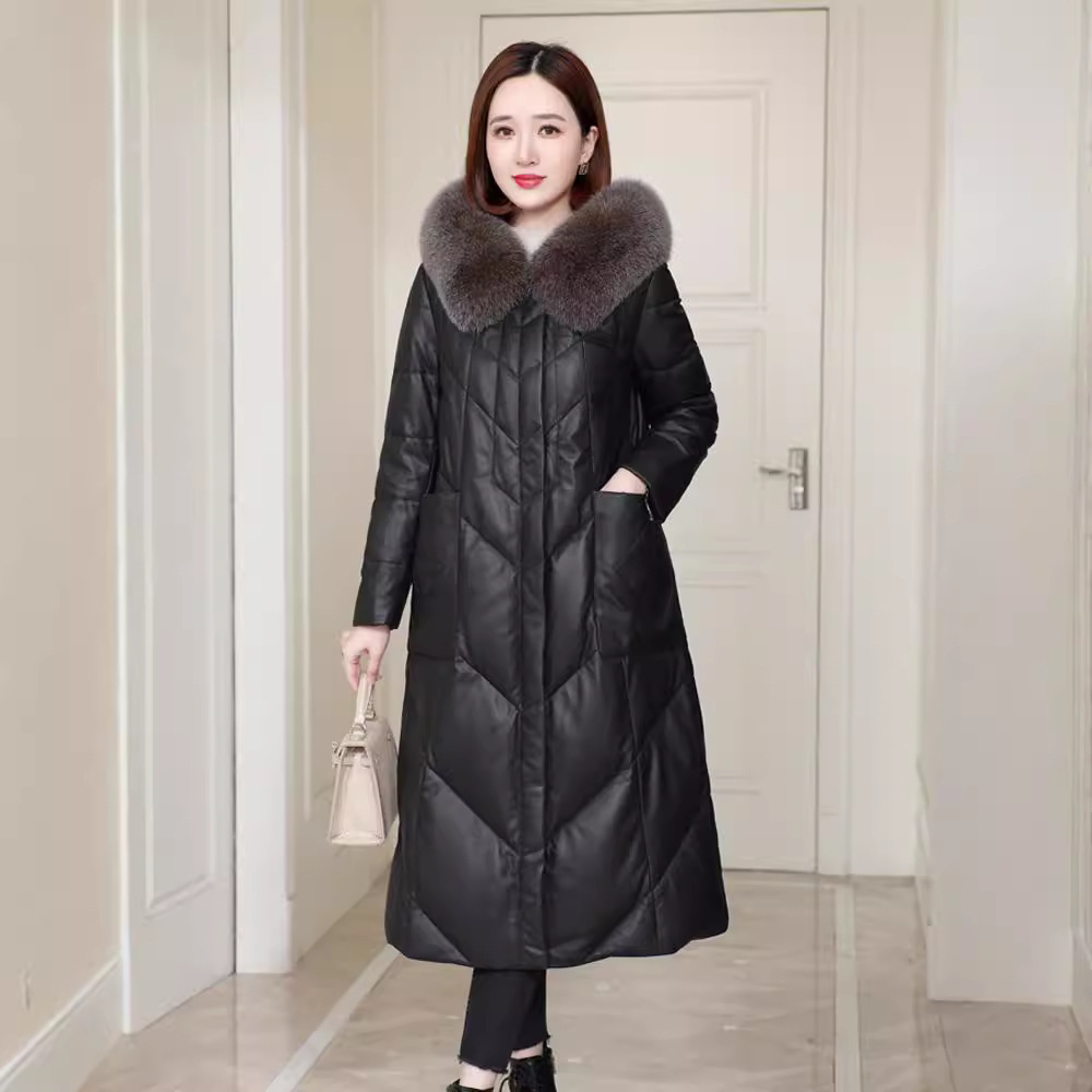 Áo khoác dành cho nữ, dáng dài rộng rãi, có size lớn. Chất liệu da thật mềm mại kết hợp với lớp lông vũ bên trong giữ ấm tốt. Phần cổ áo được viền lông cáo tự nhiên, tăng thêm vẻ đẹp . Sản phẩm mặc ấm vào mùa đông, phù hợp khi đi làm hoặc dạo phố. Mặc kèm áo thun hoặc áo len bên trong để tạo sự thoải mái. | Tên sản phẩm: Áo Da Nữ Chất Liệu Da Bò Big Size Ngoại Cỡ - Thời Trang Nữ | Mã sản phẩm: B5940 - Giá: 8.790.000đ | Mã nhà sản xuất: HADG-G06Hình ảnh sản phẩm