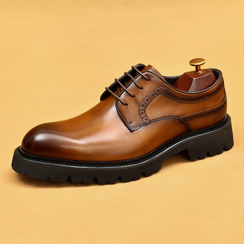 Giày da thật dành cho nam, kiểu dáng mang phong cách công sở lịch sự. Sản phẩm có phần mũi nhọn và đế được thiết kế dày hơn một cách vừa phải, giúp tôn dáng người mang. Chất liệu da mềm mại ôm chân, mang lại sự dễ chịu khi sử dụng cả ngày dài. Bạn có thể phối cùng quần âu hoặc quần jeans để tạo nên vẻ ngoài vừa chỉn chu vừa thoải mái. | Tên sản phẩm: Giày Da Nam Chất Liệu Da Bò Mũi Nhọn Tăng Chiều Cao Đế Cao - Giày Dép Nam | Mã sản phẩm: B5952 - Giá: 2.680.000đ | Mã nhà sản xuất: SHERAW-G06Hình ảnh sản phẩm