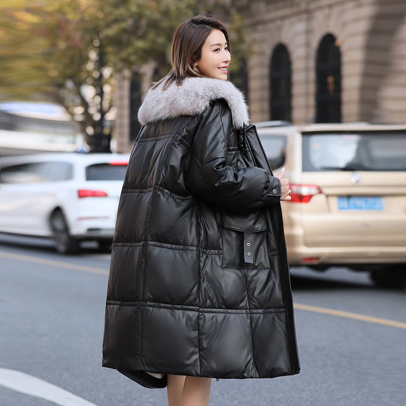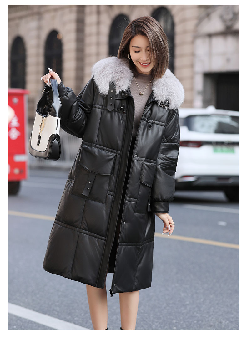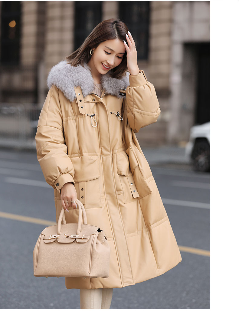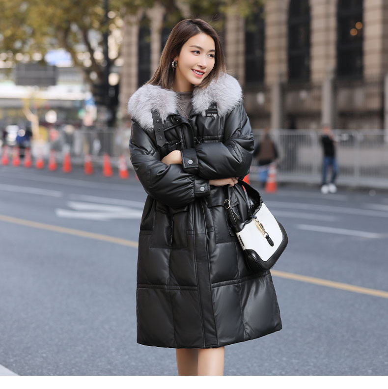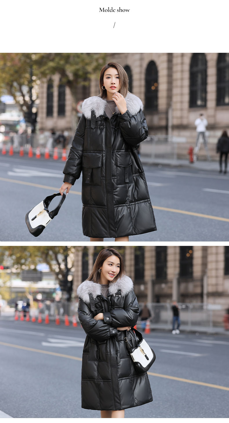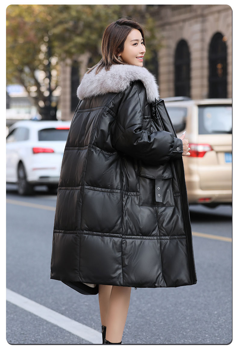 Áo khoác dáng dài rộng rãi, có lớp lông vũ giữ ấm bên trong, phần cổ được điểm xuyến bằng lớp lông mềm mại. Chất liệu da mềm mịn như lông cừu giúp bảo vệ cơ thể khỏi gió lạnh. Kiểu dáng cổ rộng tạo điểm nhấn thanh lịch, phù hợp mặc trong tiết trời se lạnh. Có thể kết hợp cùng quần jeans và bốt để tạo vẻ ngoài trẻ trung, ấm áp. | Tên sản phẩm: Áo Da Nữ Chất Liệu Da Bò Big Size Ngoại Cỡ Hàng Mùa Xuân Thu Đông - Thời Trang Nữ | Mã sản phẩm: B5957 - Giá: 7.310.000đ | Mã nhà sản xuất: HADG-G06Hình ảnh sản phẩm