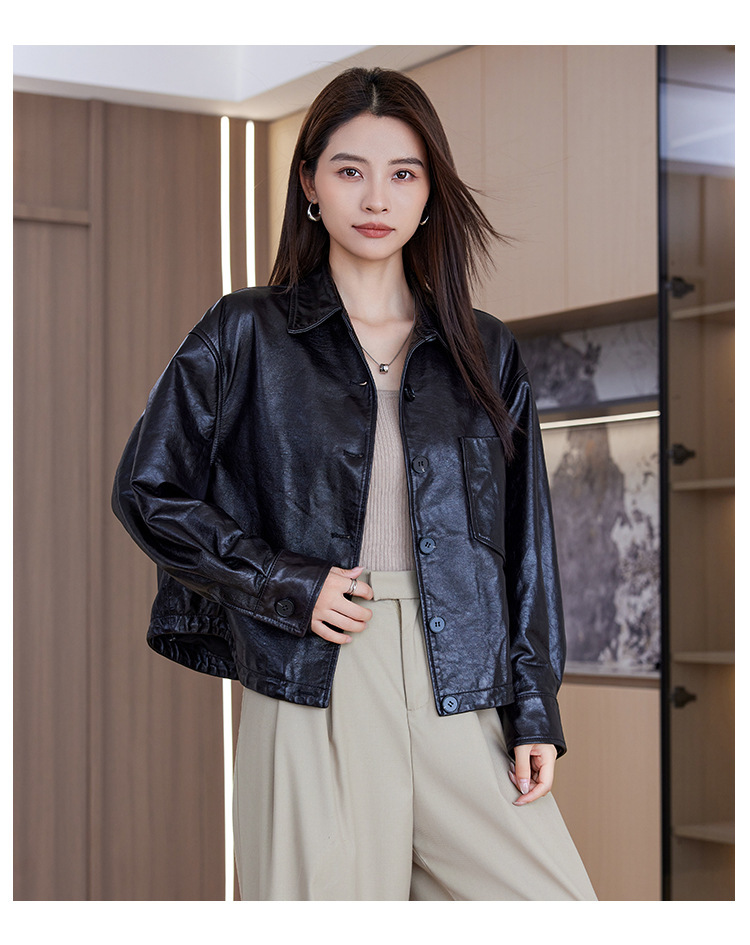 Áo khoác da dáng ngắn, kiểu dáng phong cách cổ điển phù hợp cho mùa thu. Chất liệu da mềm mại, ôm vừa vặn cơ thể, đặc biệt thích hợp cho những người có vóc dáng nhỏ nhắn. Thiết kế cổ bẻ và khóa kéo phía trước tiện lợi, tạo nên vẻ ngoài cá tính. Sản phẩm dễ dàng phối cùng nhiều loại trang phục như quần jean hay váy. Khi sử dụng, lau nhẹ bằng khăn mềm ẩm để giữ bề mặt sạch đẹp. | Tên sản phẩm: Áo Da Nữ Hàng Mùa Xuân Thu Đông - Thời Trang Nữ | Mã sản phẩm: B5968 - Giá: 6.000.000đ | Mã nhà sản xuất: HADG-G06Hình ảnh sản phẩm